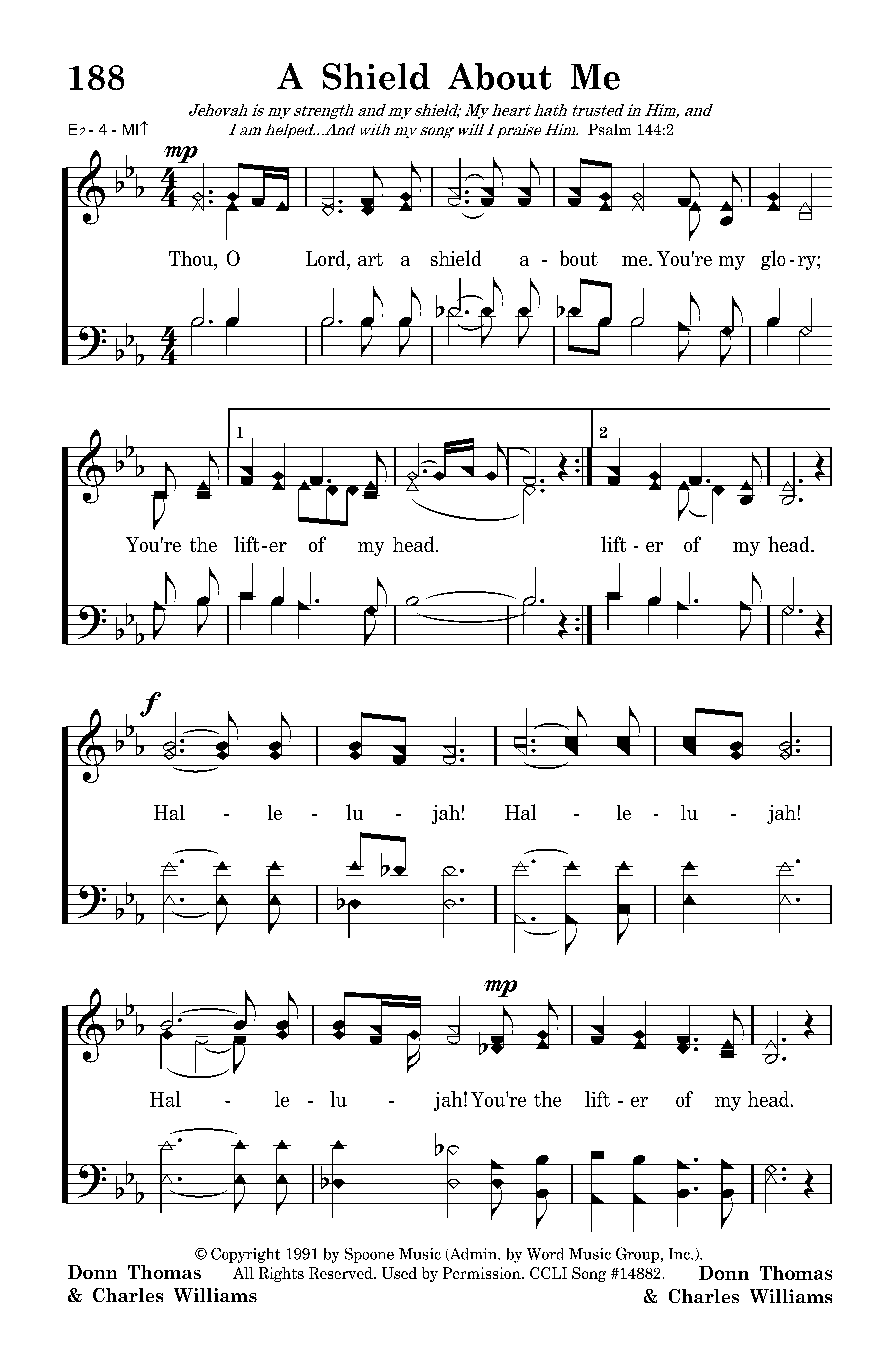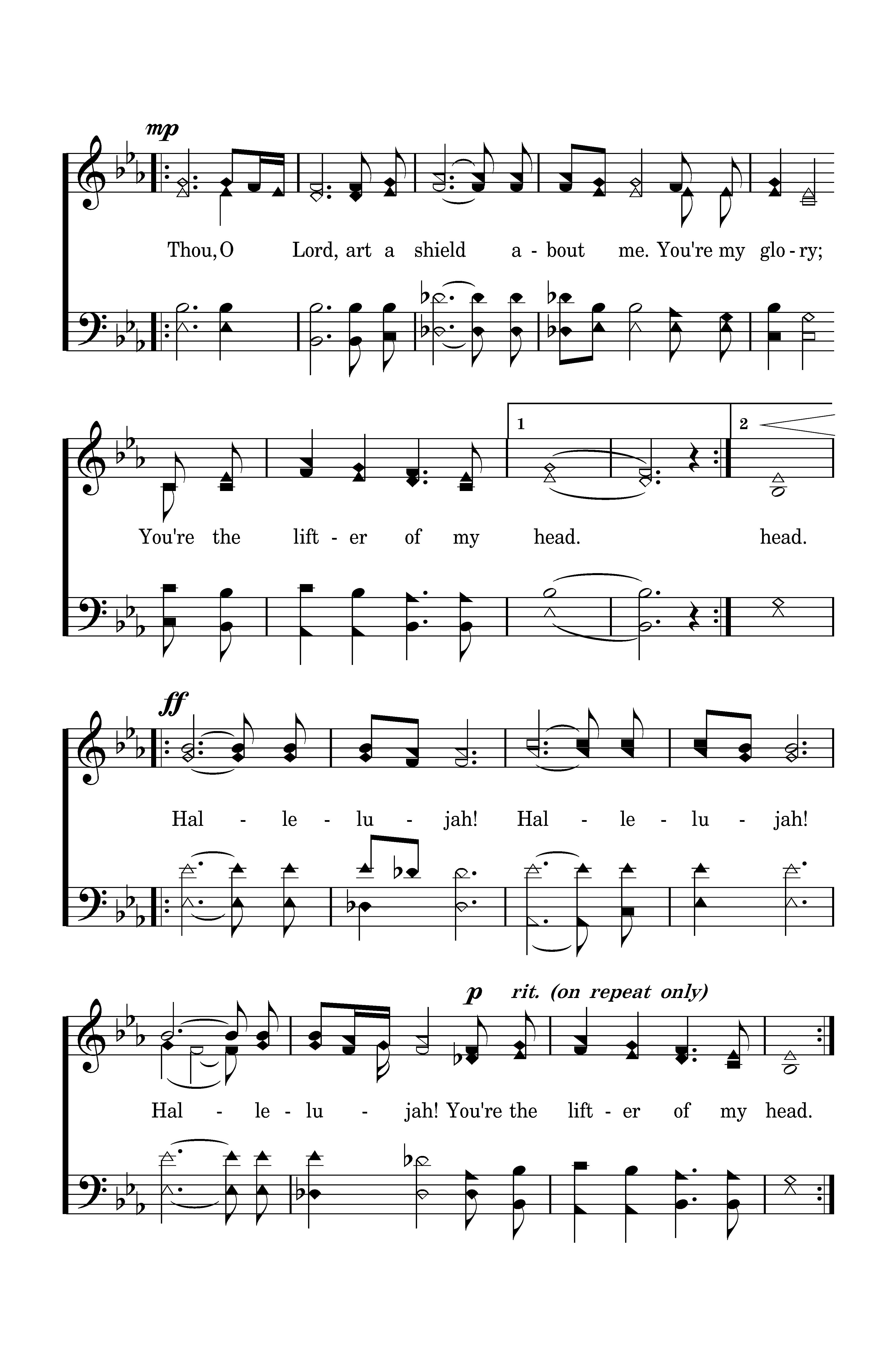 Thou, O Lord, art a shield about me. You're my glory; You're the lifter of my head. Thou, O Lord, art a shield about me. You're my glory; You're the lifter of my head. Hallelujah, Hallelujah, Hallelujah, You're the lifter of my head. Thou, O Lord, art a shield about me. You're my glory; You're the lifter of my head. Thou, O Lord, art a shield about me. You're my glory; You're the lifter of my head. Hallelujah, Hallelujah, Hallelujah, You're the lifter of my head. Hallelujah, Hallelujah, Hallelujah, You're the lifter of my head.
