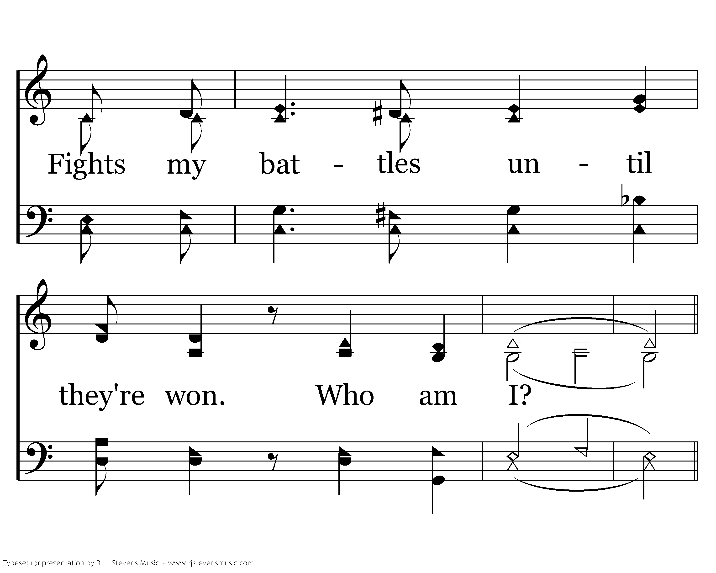 When I'm reminded of His words, "I'll leave you never, If you're true, I'll give you life forever." And O, I wonder what I've have done To deserve God's only Son Fights fight my battles until til they're won. Who who am I?
