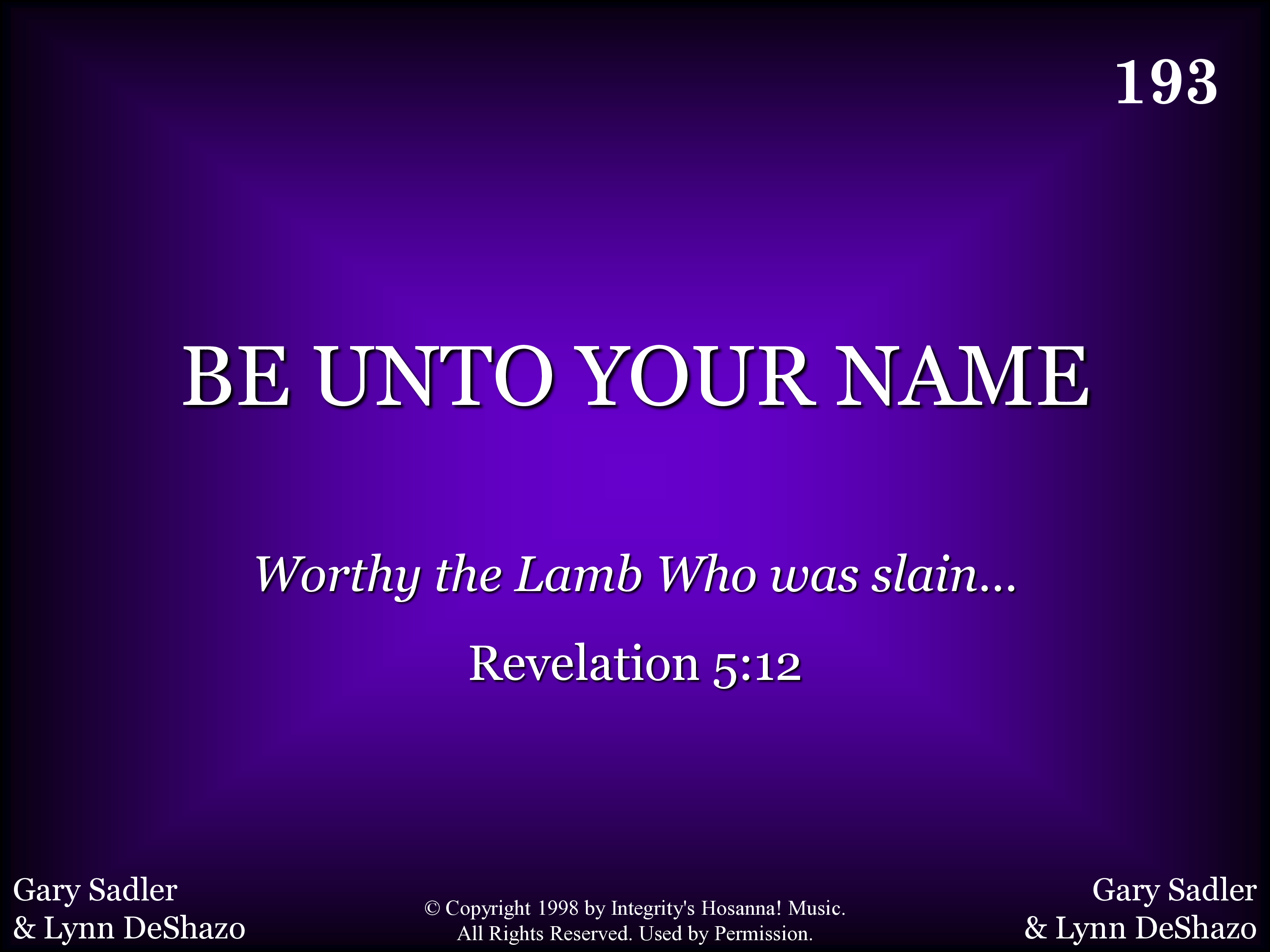| Title | BE UNTO YOUR NAME |