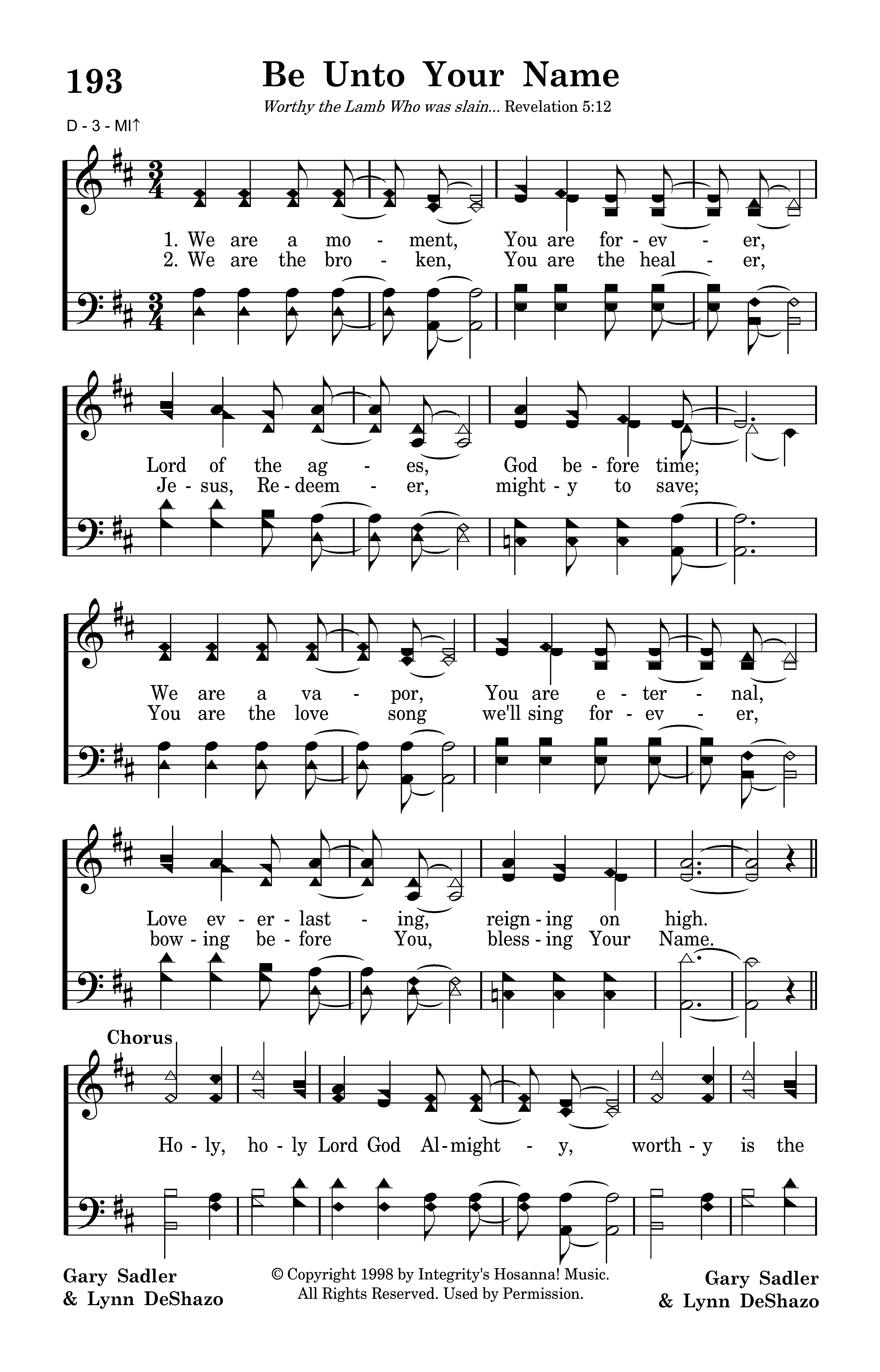 - Copyright © 1998 by Integrity's Hosanna! Music. (Admin. by Integrity Music.) All Rights Reserved. Used by Permission.