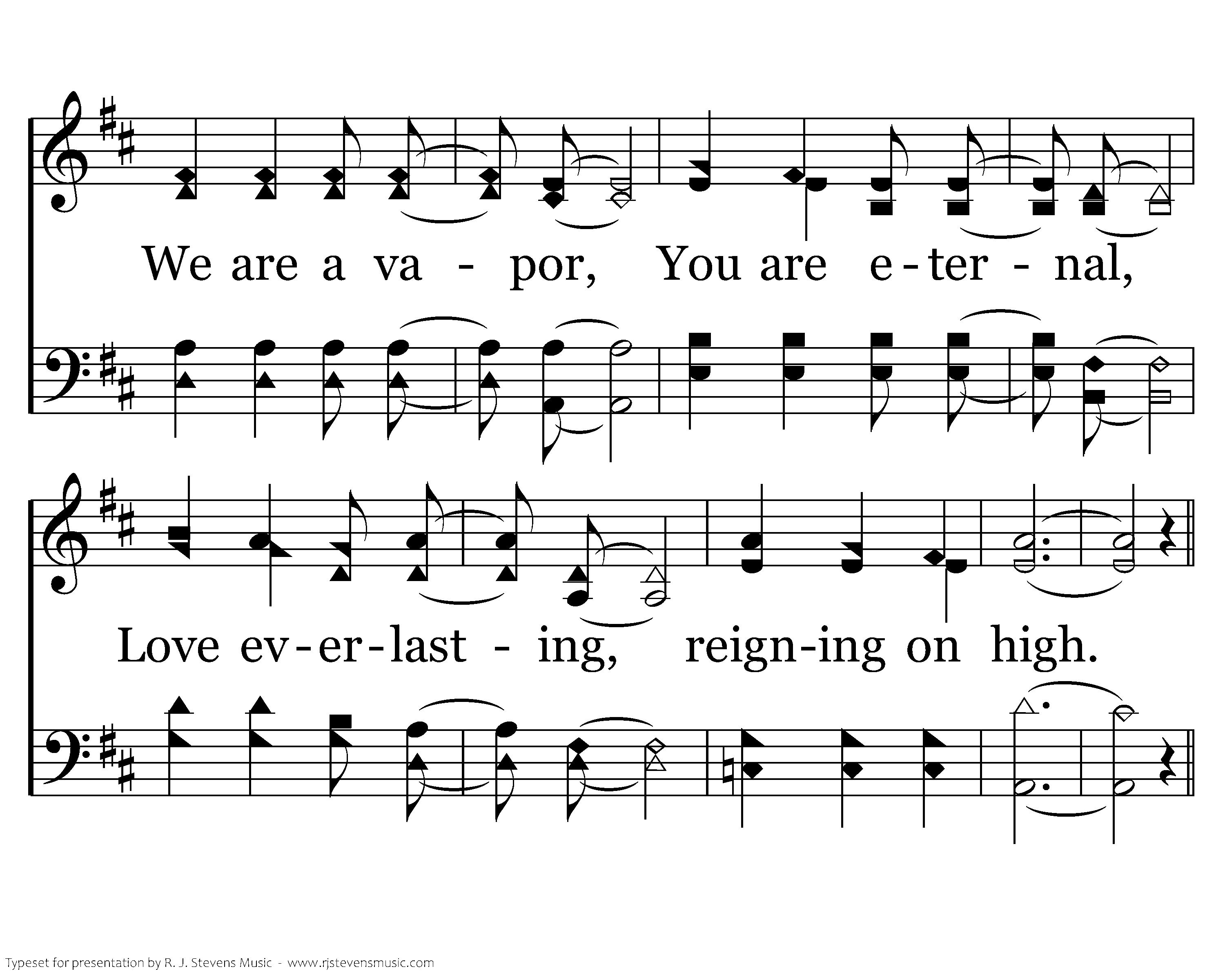 We are a moment, You are forever, Lord of the ages, God before time; We are a vapor, You are eternal, Love everlasting, reigning on high.