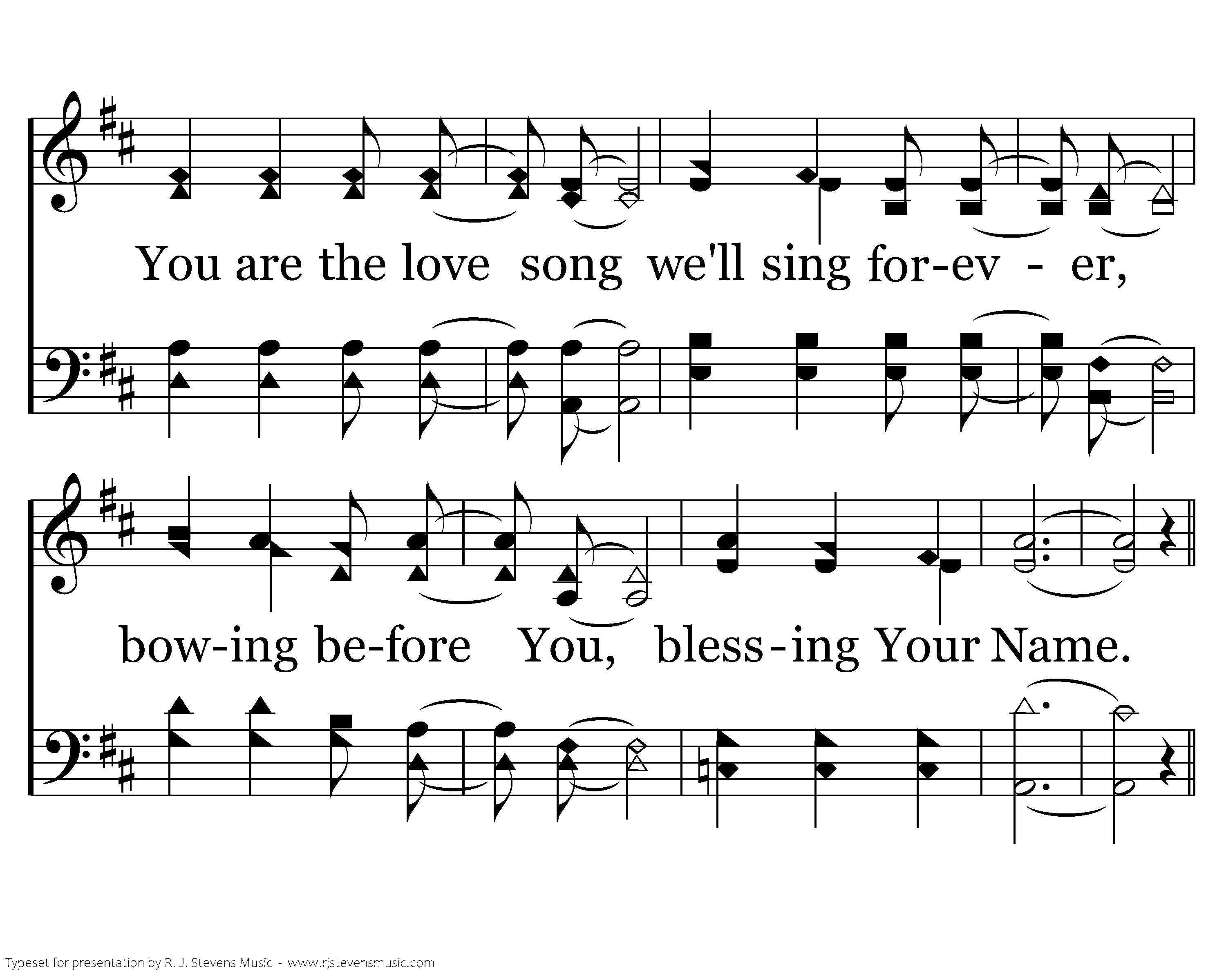 We are the broken, You are the healer, Jesus, Redeemer, mighty to save; You are the love song we'll sing forever, bowing before You, blessing Your Name.
