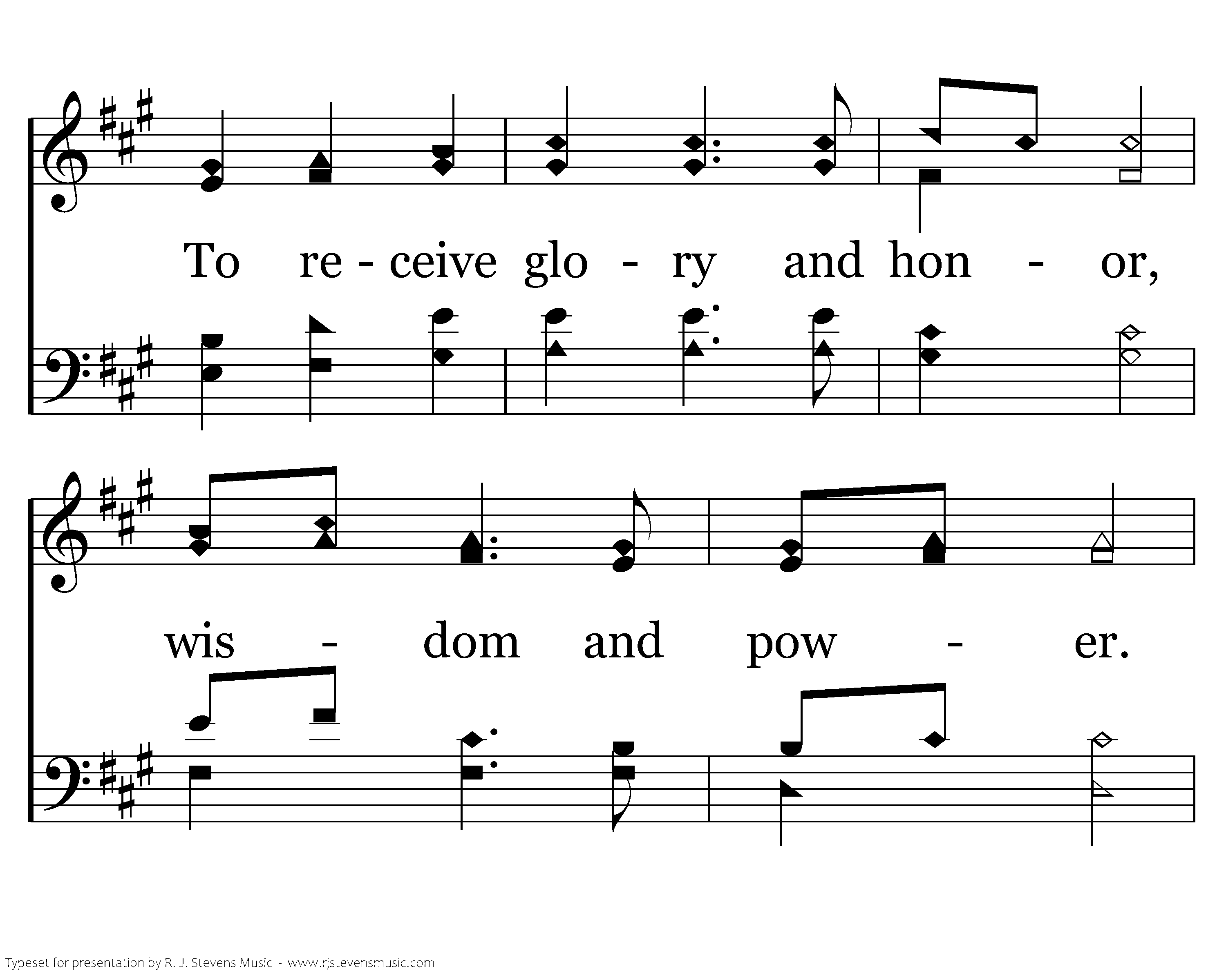Worthy, the Lamb that was slain. Worthy, the Lamb that was slain To receive glory and honor, wisdom and power. Worthy, the Lamb that was slain.