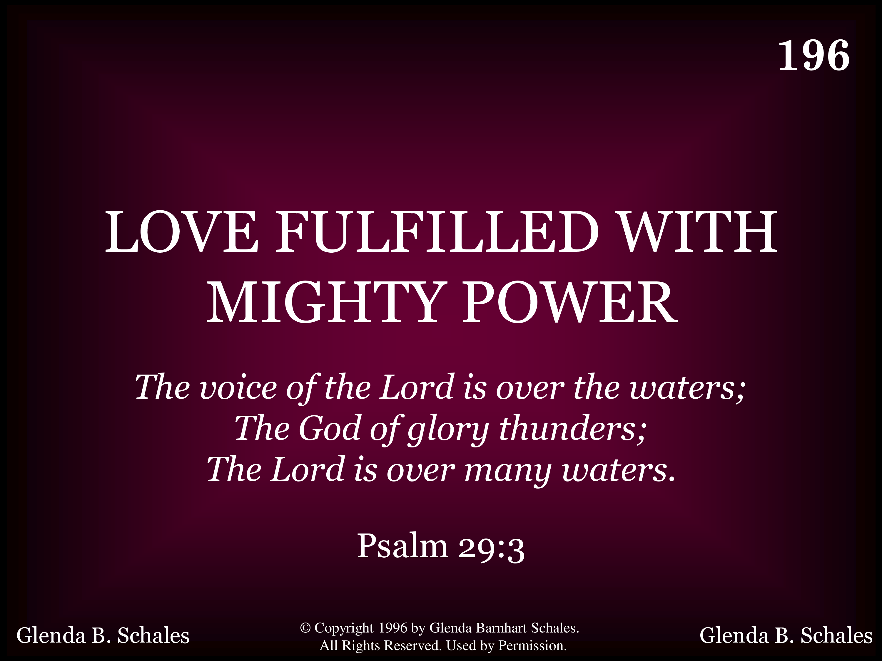 - Copyright © 1996 by Glenda Barnhart Schales. All Rights Reserved. Used by Permission.