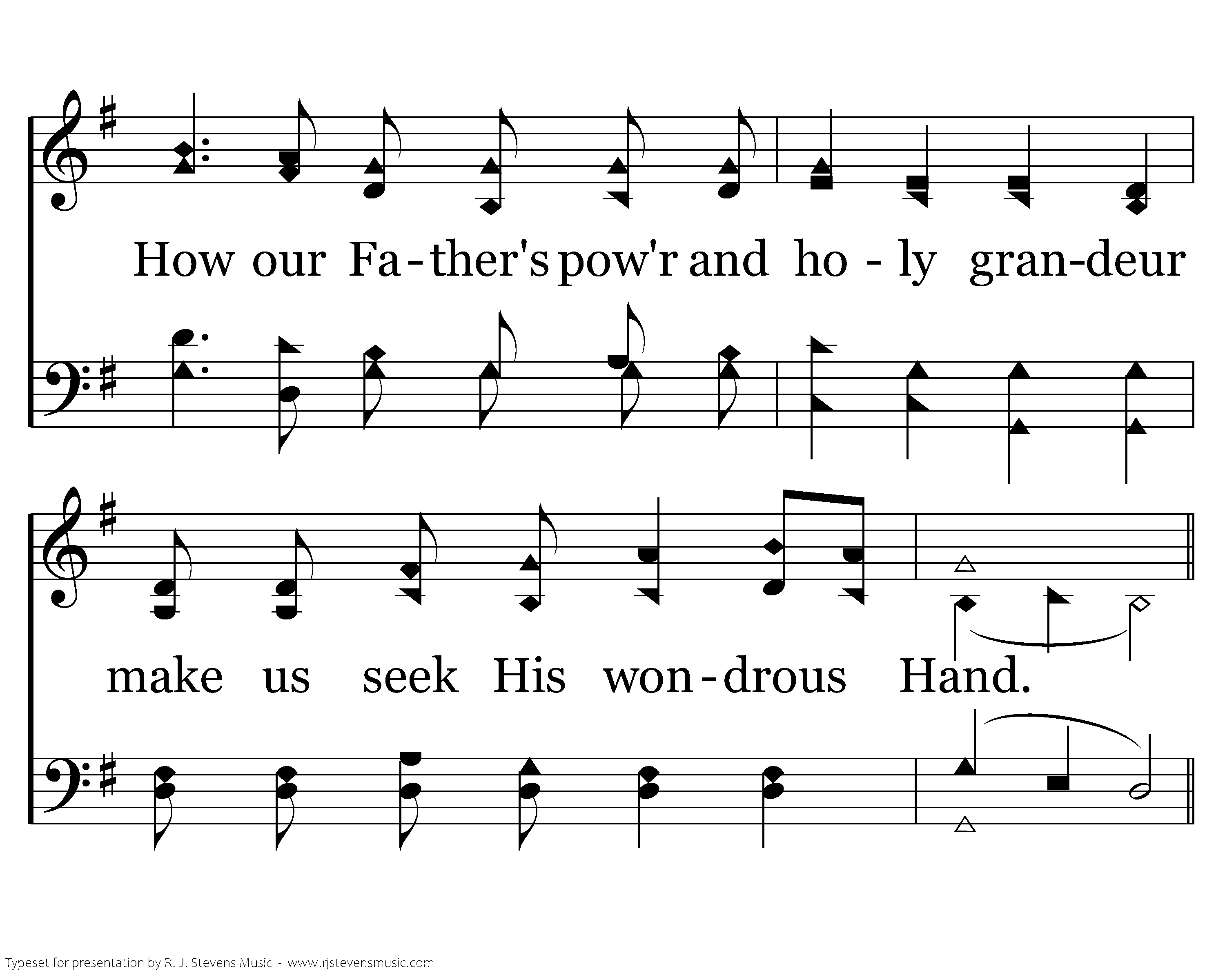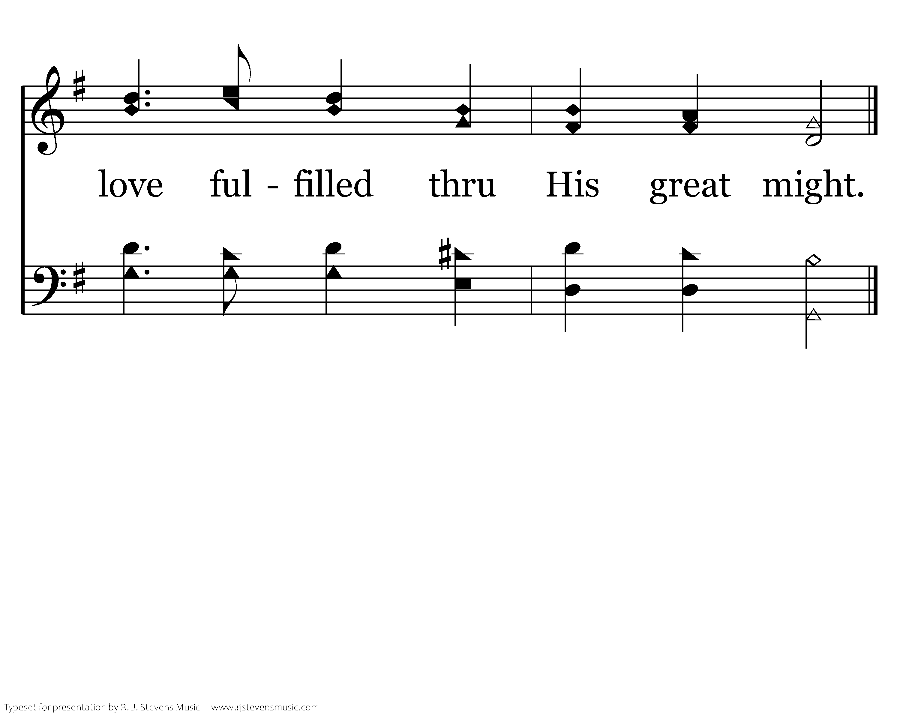 Stength and pow'r strong, Brilliant glory rad'ant light shows love fulfilled thru His great might.