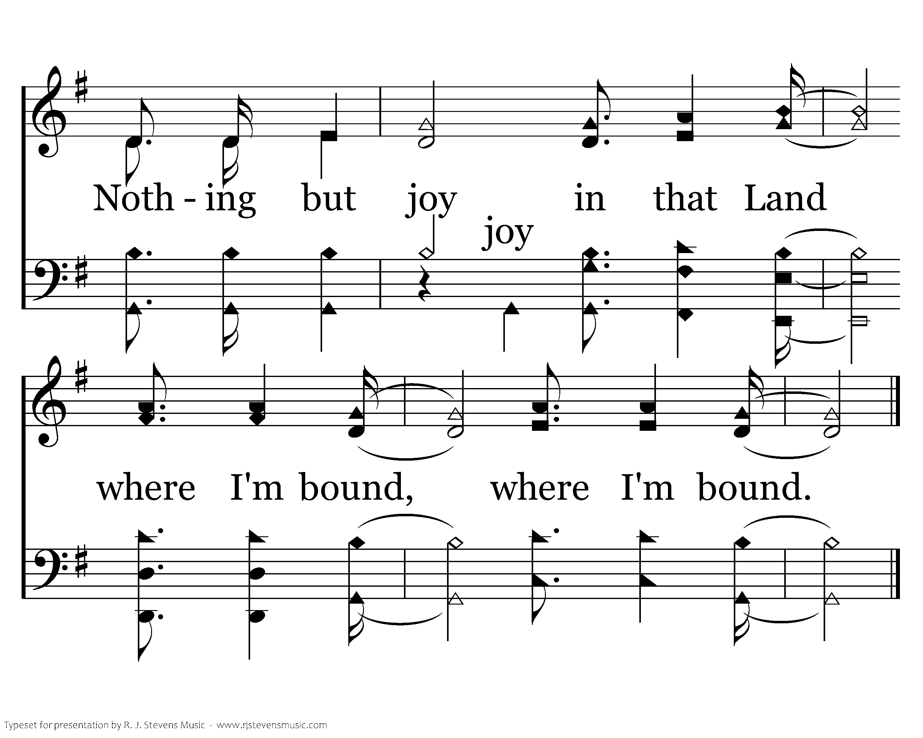 Nothing but joy in that Land. Nothing but joy in that Land. Nothing but joy in that Land where I'm bound, where I'm bound. in that Land where I'm bound, where I'm bound.