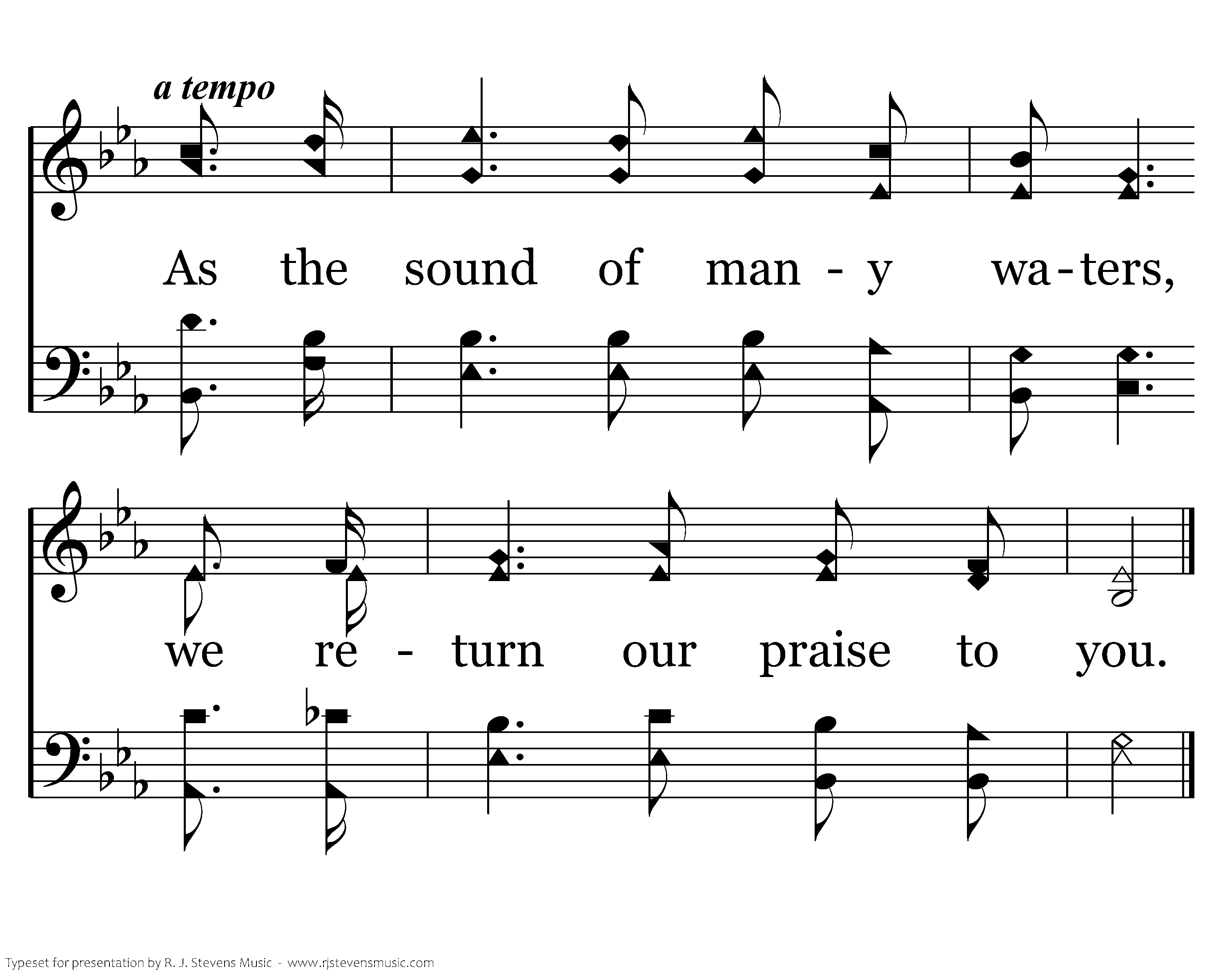 As the sound of many waters, You make known your love so true. As the sound of many waters, we return our praise to you.