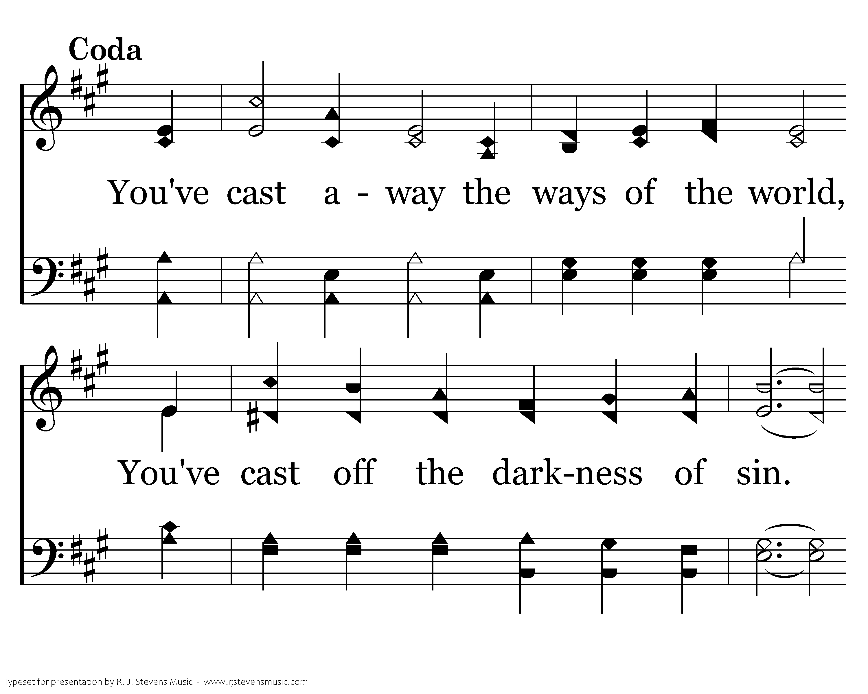 You've cast away the ways of the world, You've cast off the darkness of sin. Adorn now the Spirit of truth. Serve none but our Lord to the end.