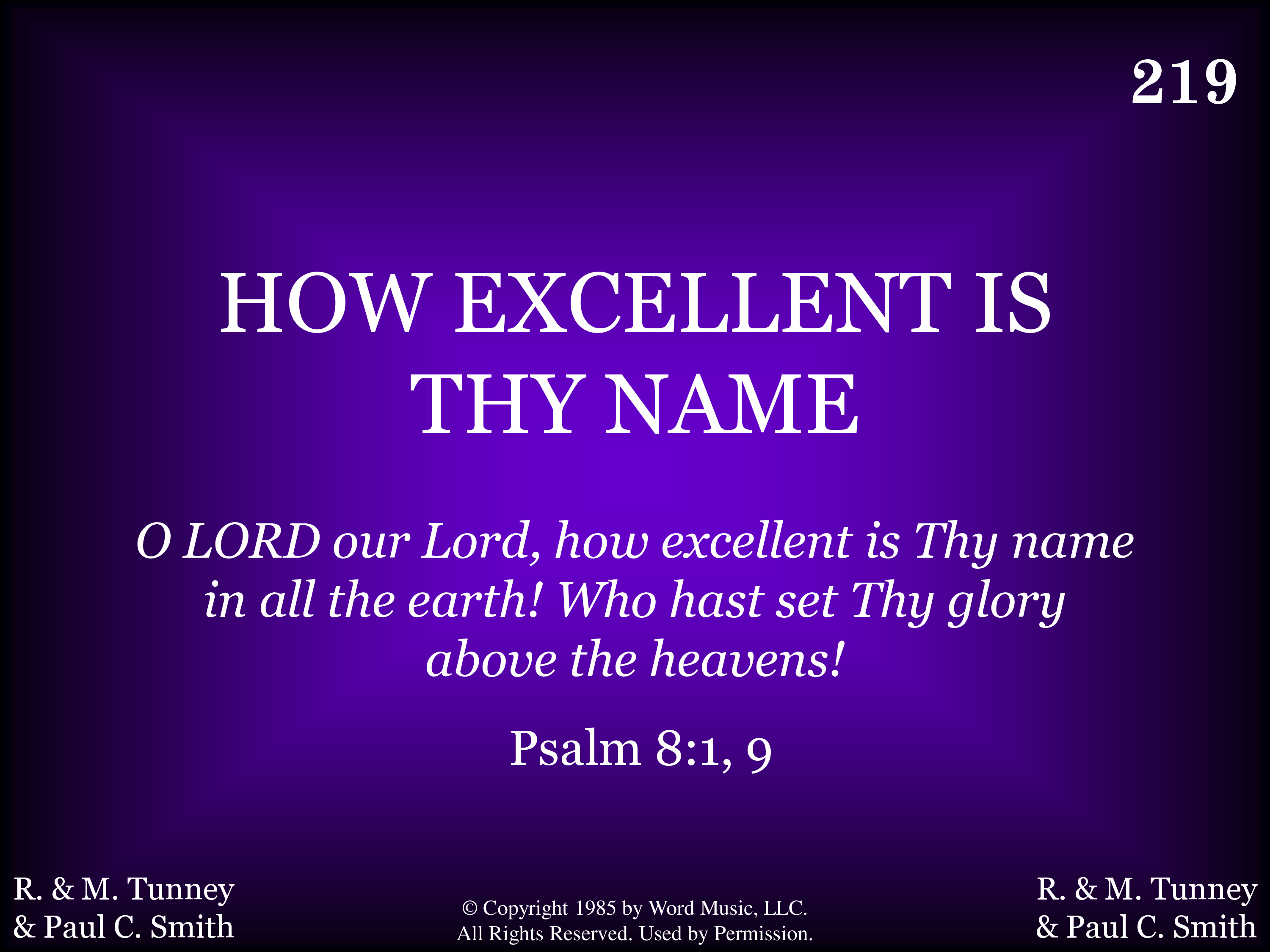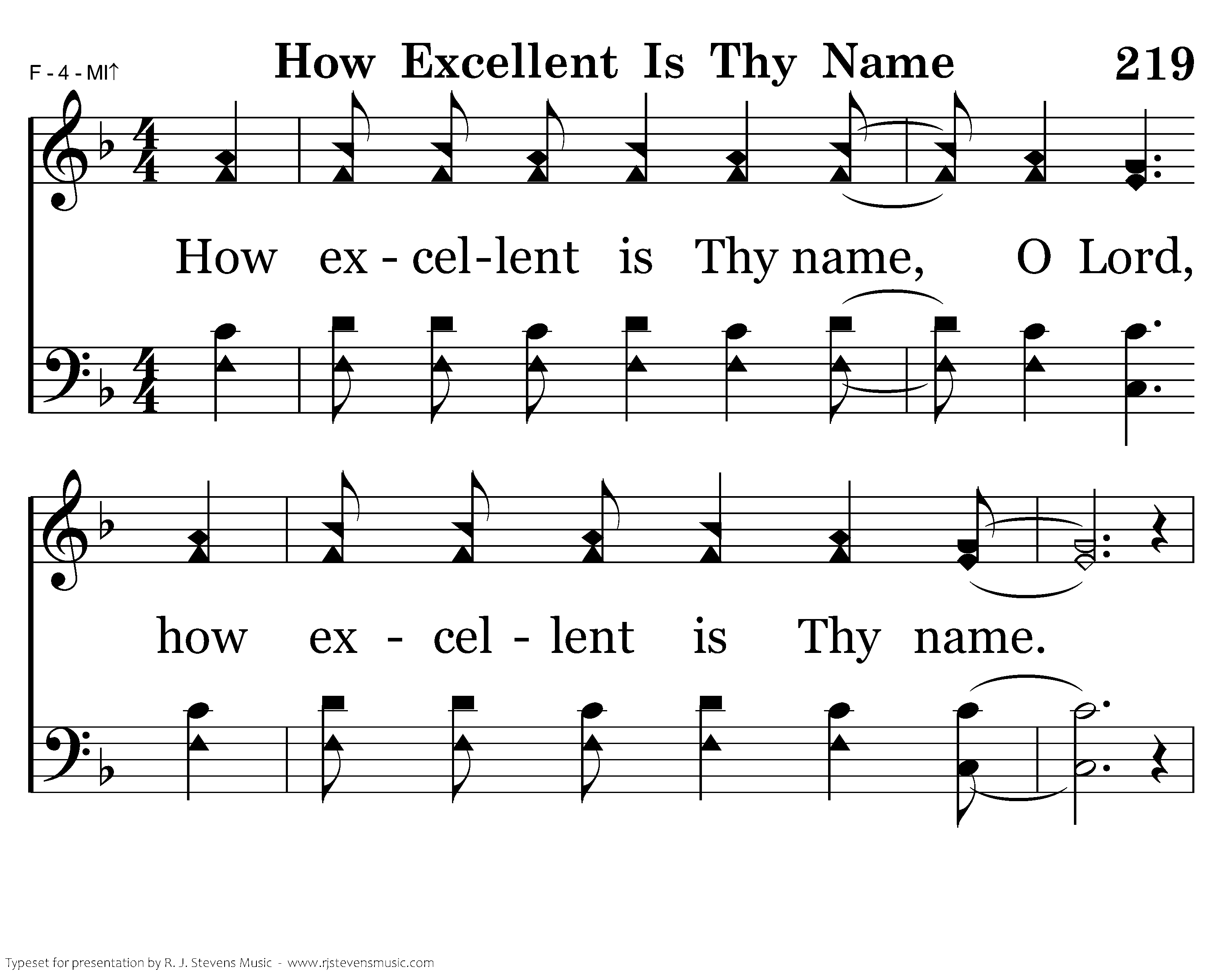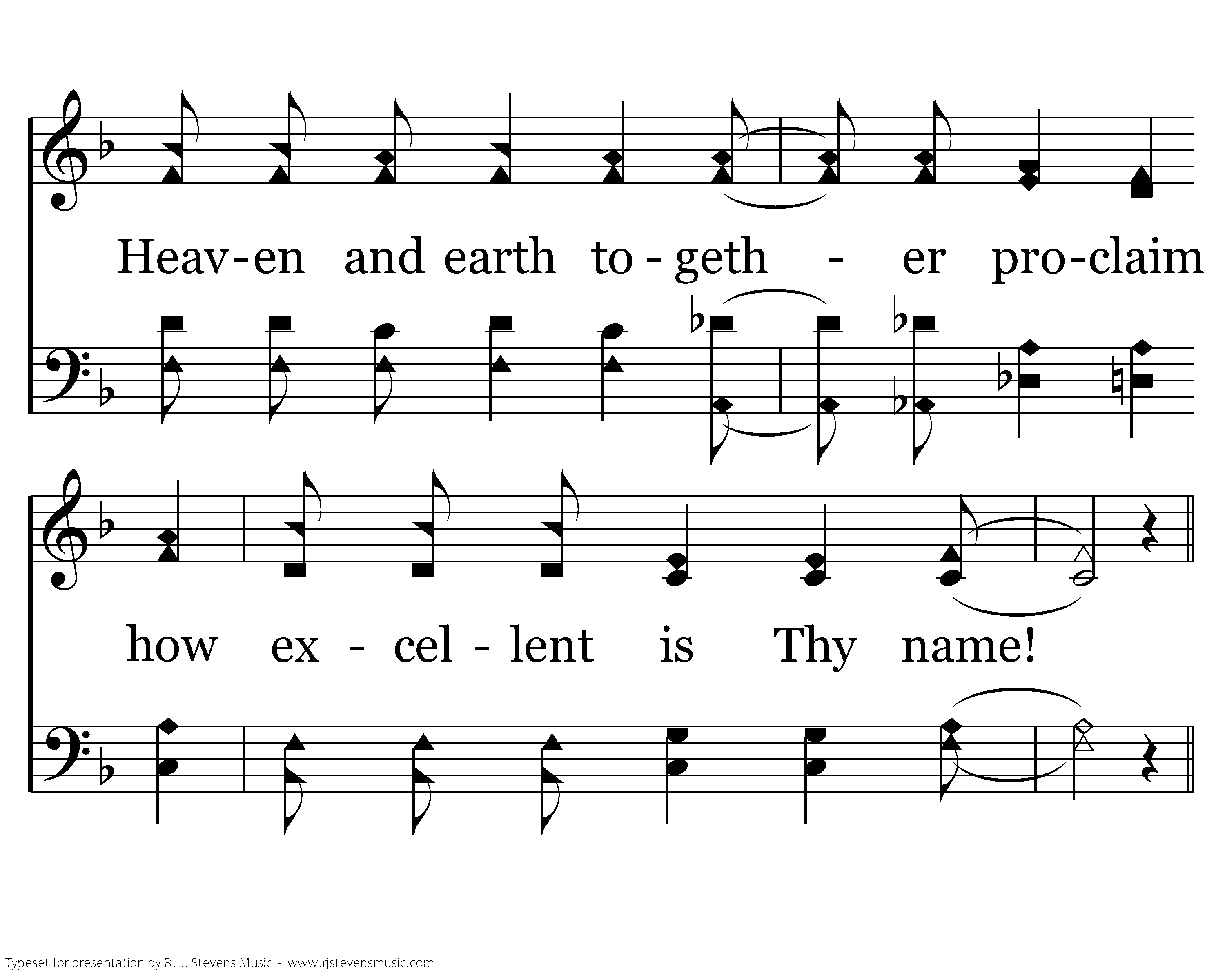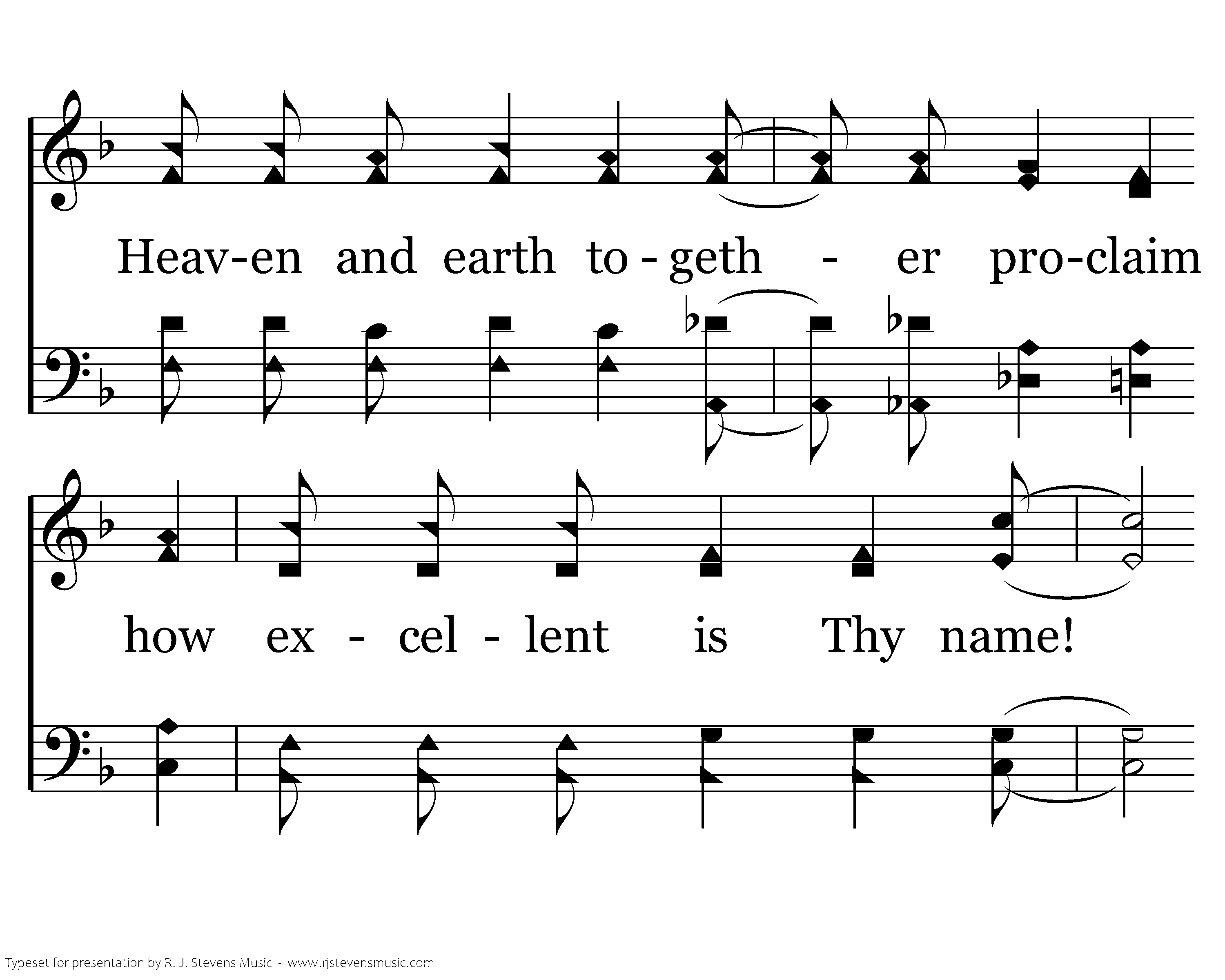 How excellent is Thy name, O Lord, how excellent is Thy name. Heaven and earth together proclaim