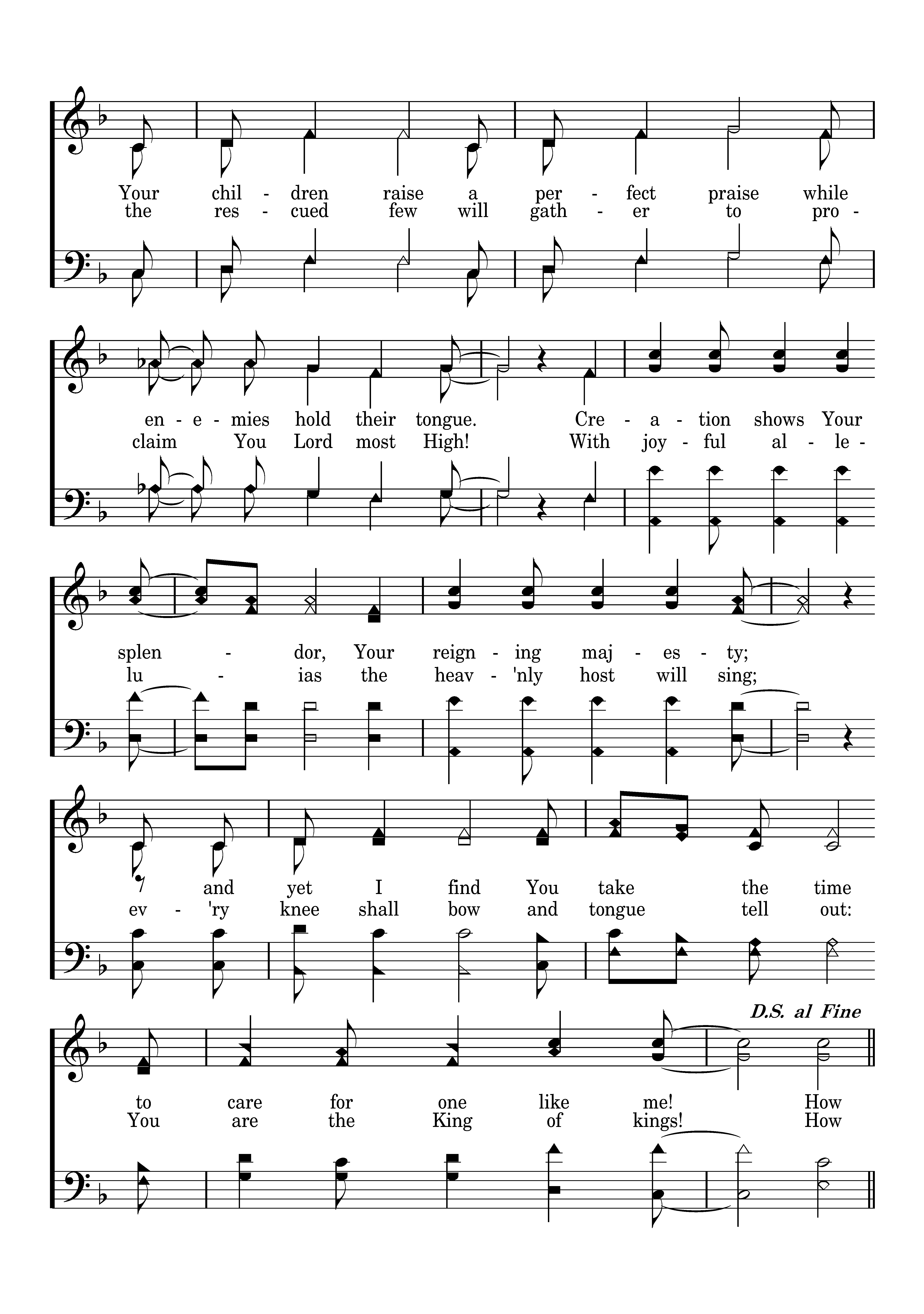 How excellent is Thy name, O Lord, how excellent is Thy name. Heaven and earth together proclaim how excellent is Thy name! How excellent is Thy name! I look into the midnight blue and see the work You've done. Your children raise a perfect praise while enemies hold their tongue. Creation shows Your splendor, Your reigning majesty; and yet I find You take the time to care for one like me!