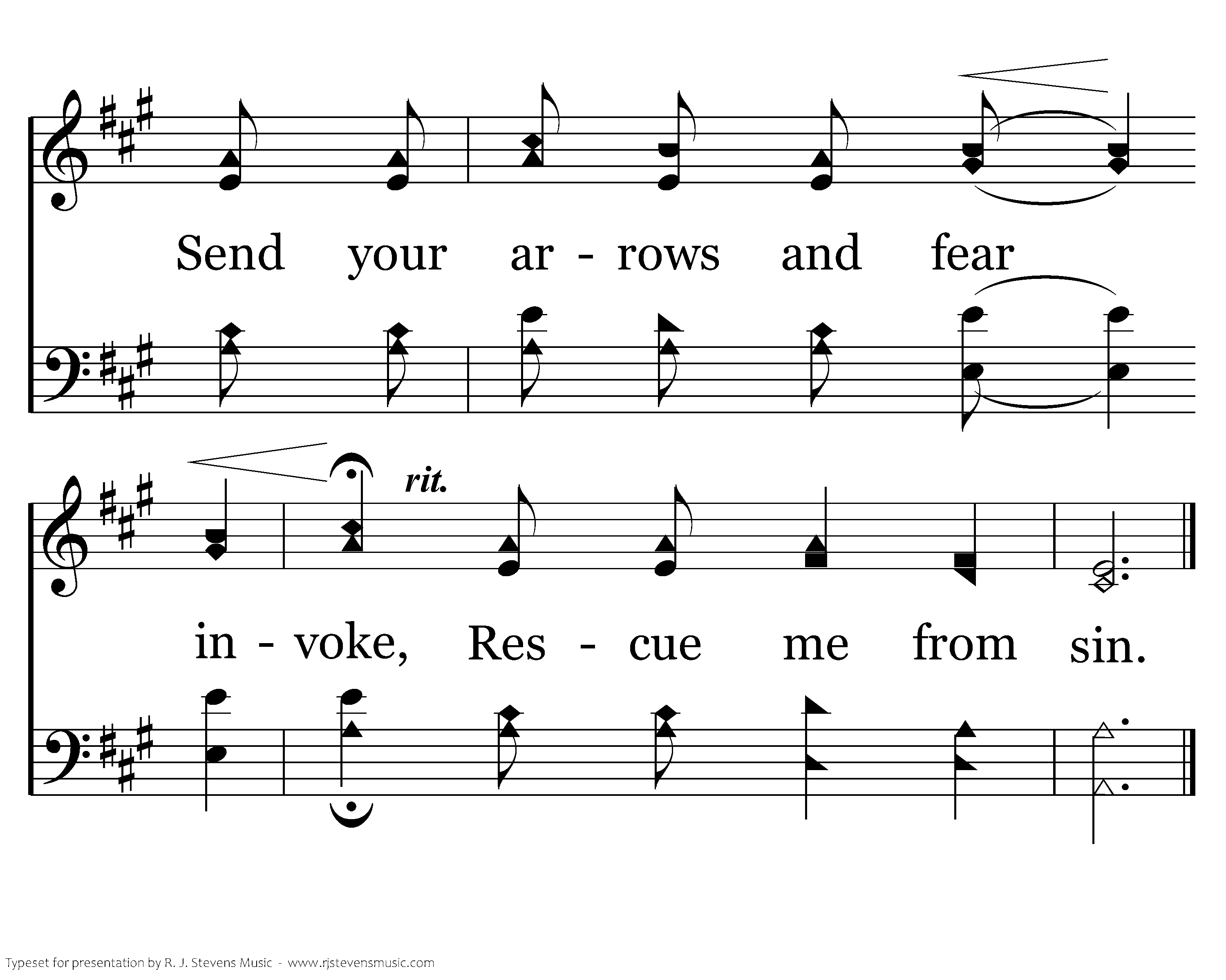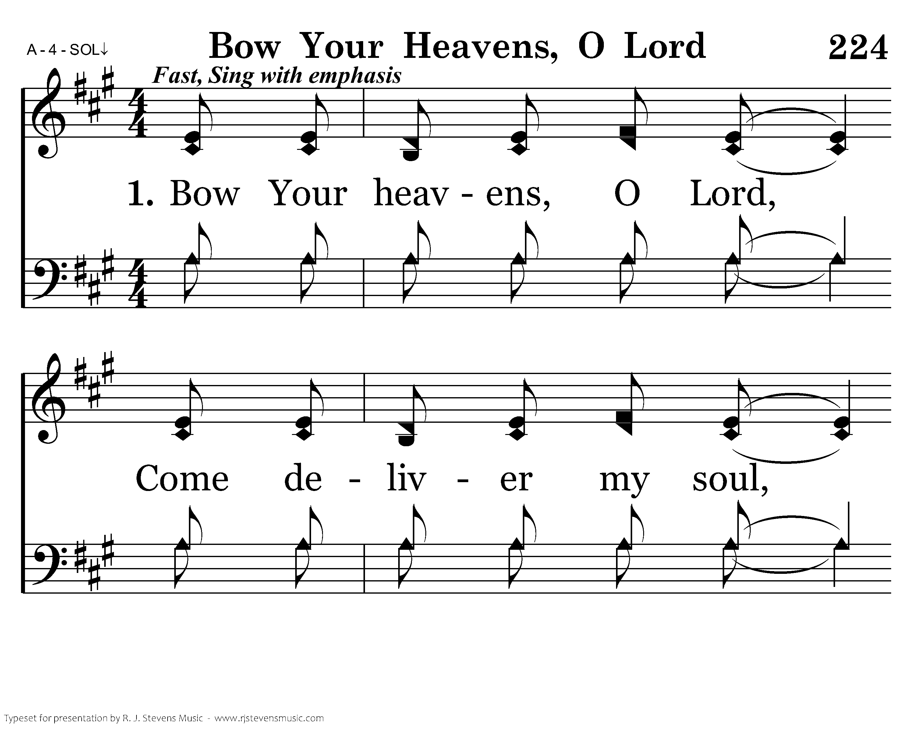 Bow Your heavens, O Lord, Come deliver my soul, Touch the mountains that they may smoke, Flash Your light'ning with truth You spoke, Send your arrows and fear invoke,