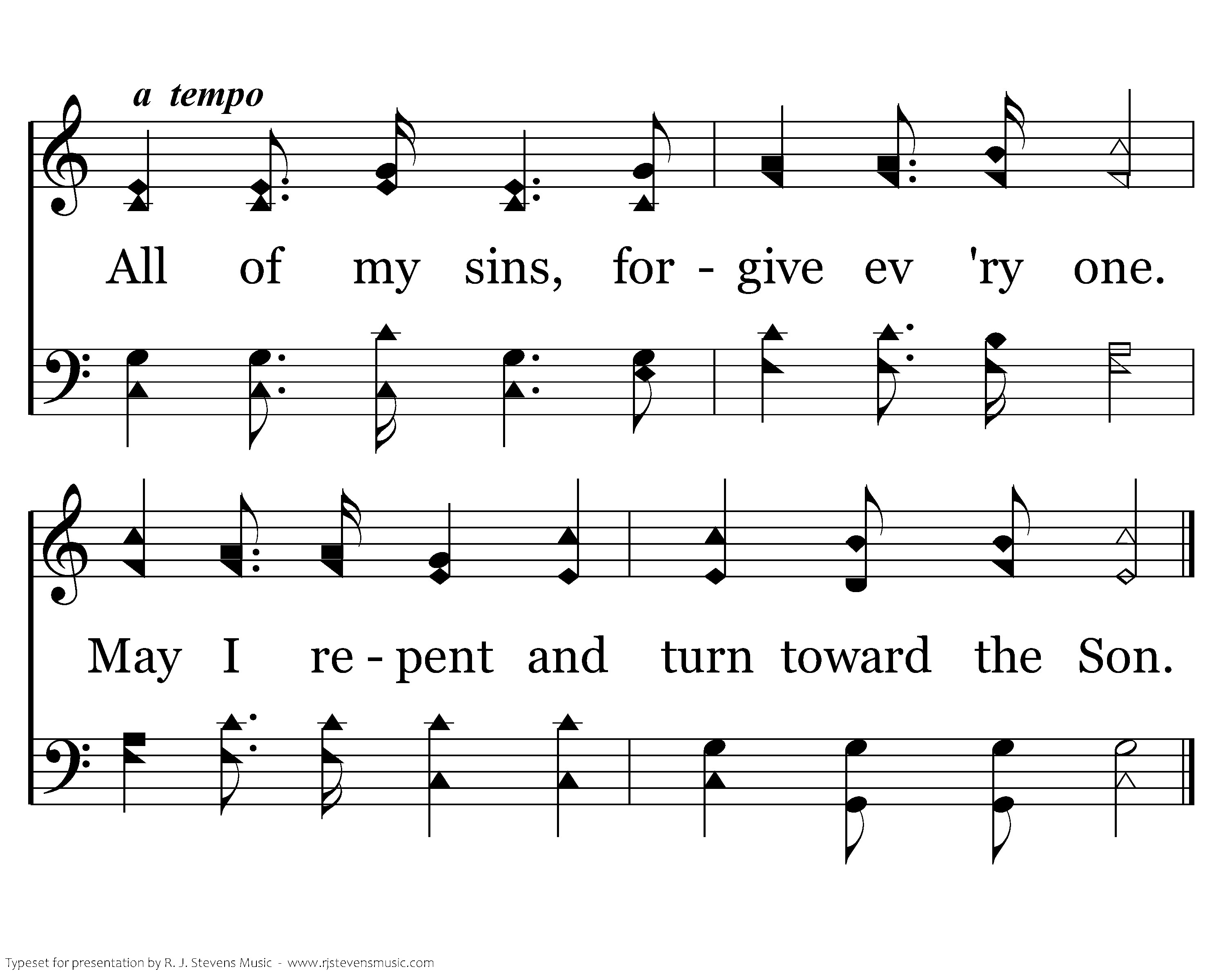May I this day have that which I need. Never so much Your word I will not heed. All of my sins, forgive ev 'ry one. May I repent and turn toward the Son.