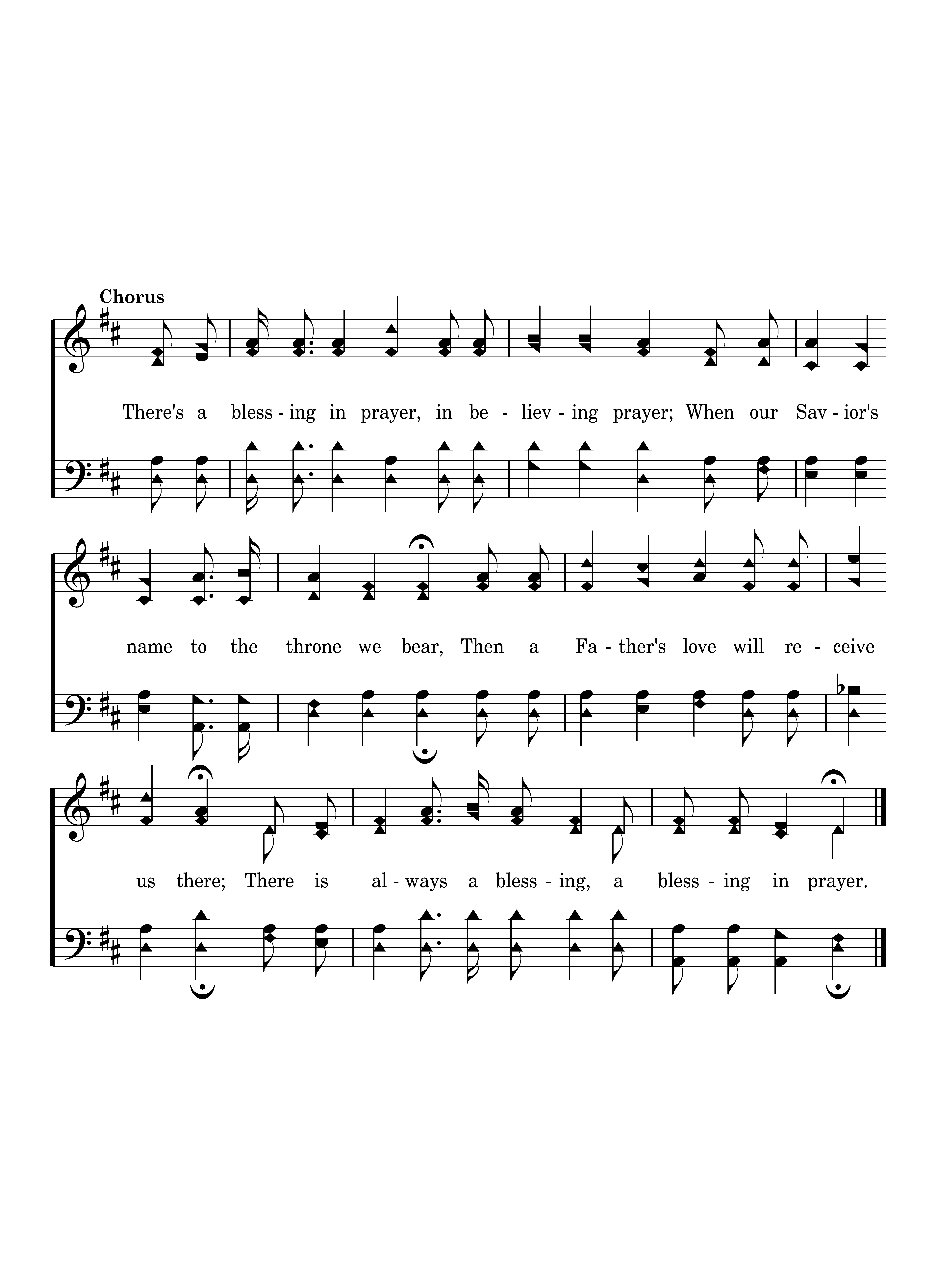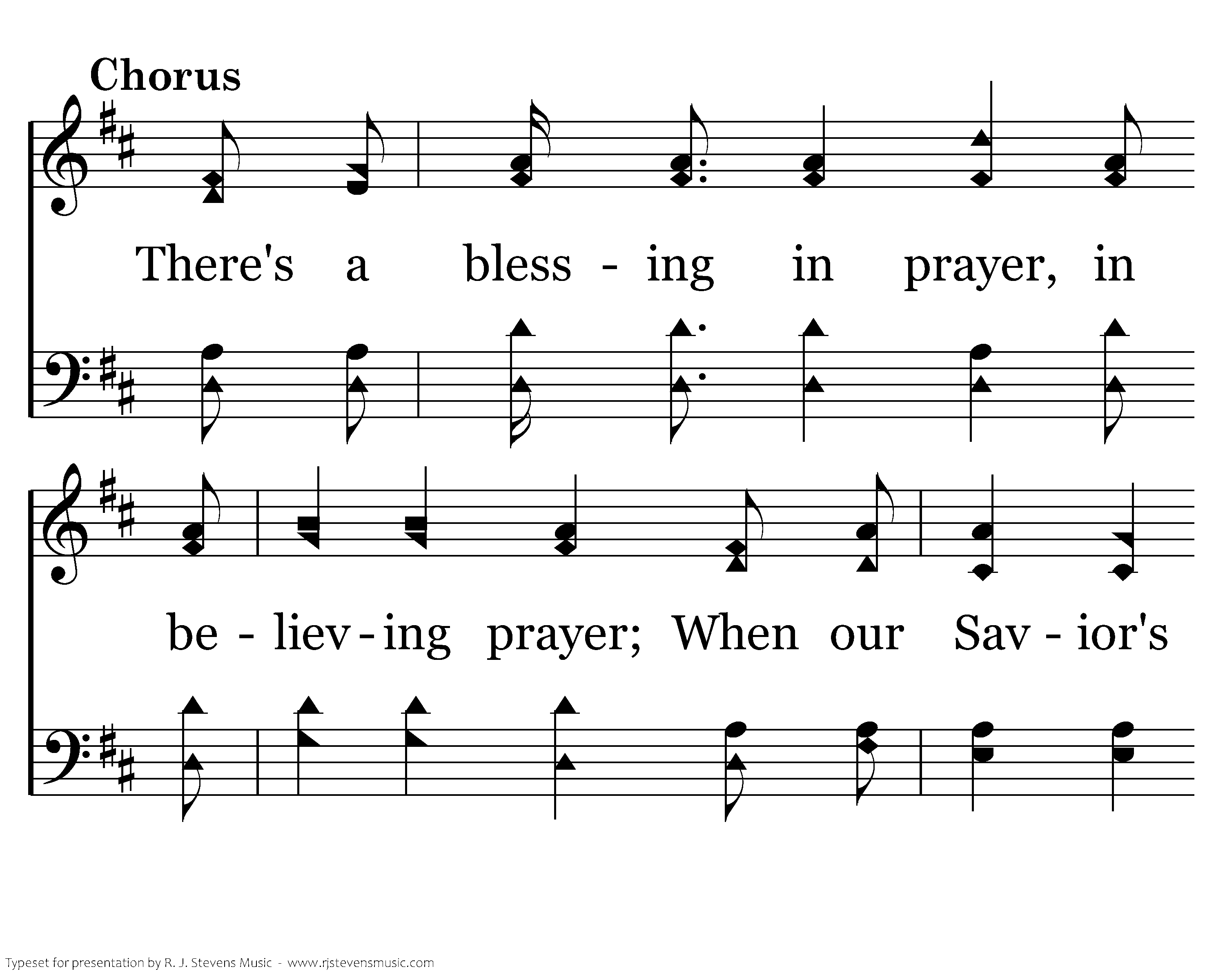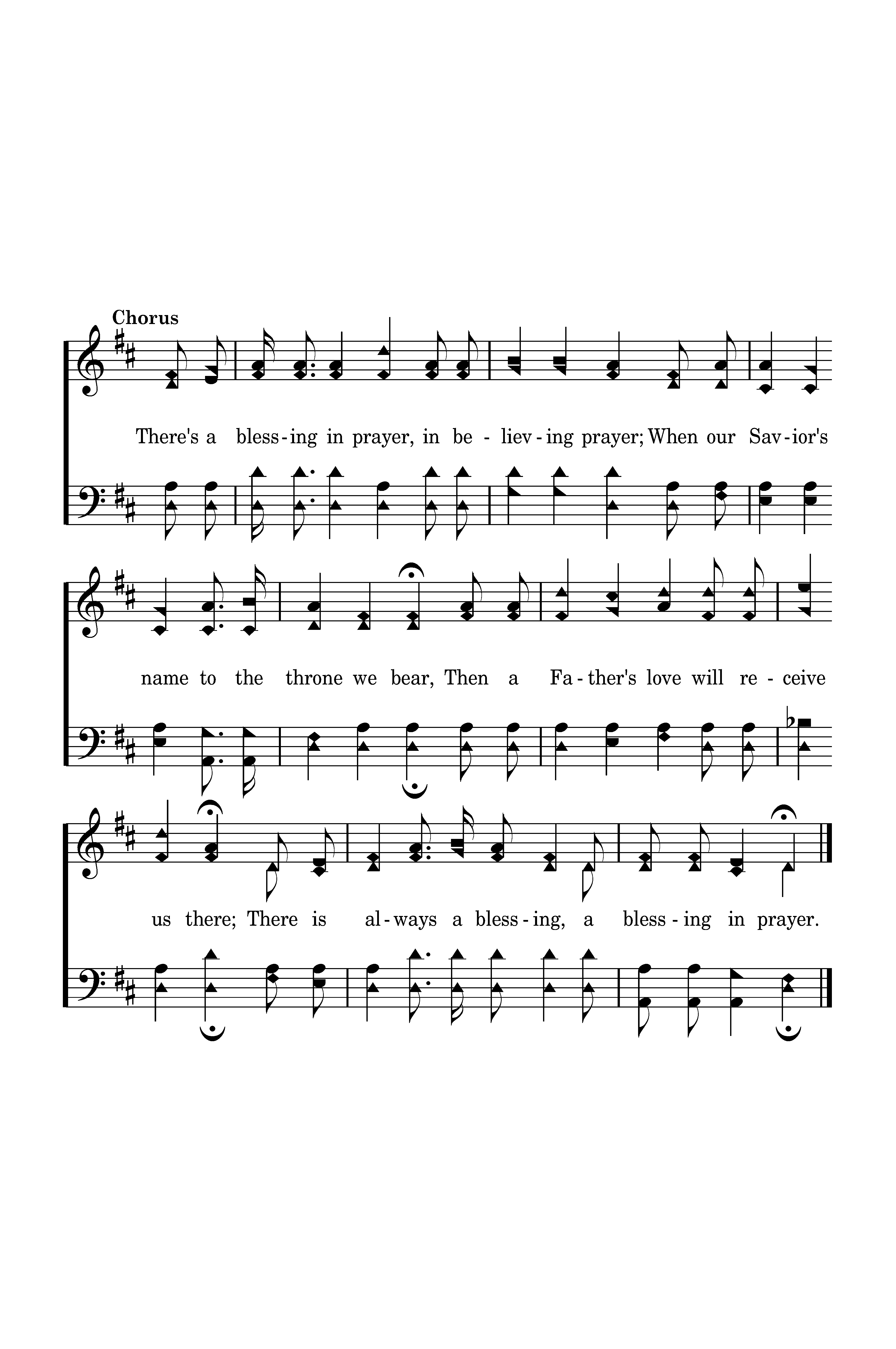 There's a blessing in prayer, in believing prayer; When our Savior's name to the throne we bear, Then a Father's love will receive us there; There is always a blessing, a blessing in prayer.