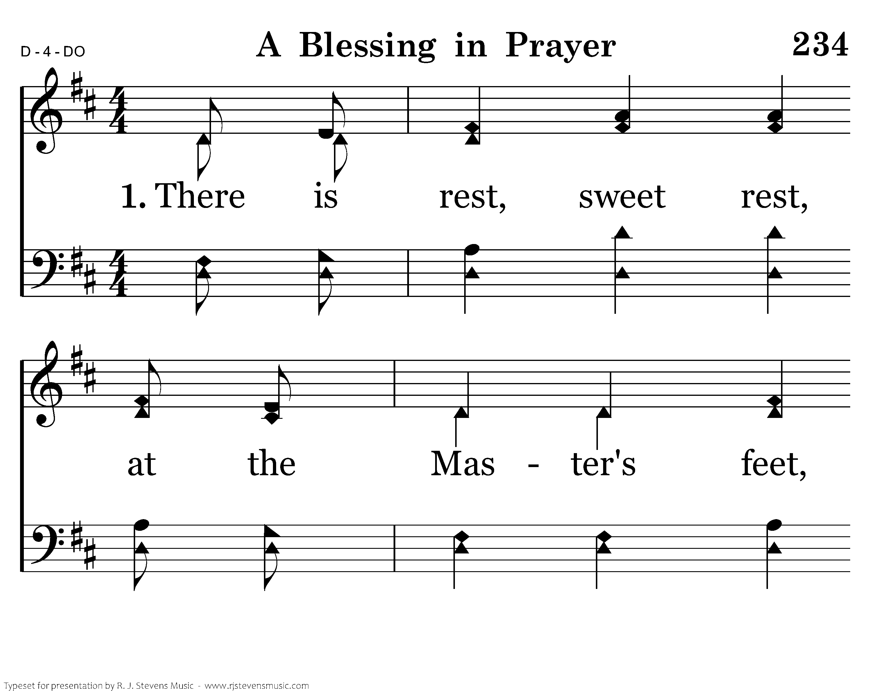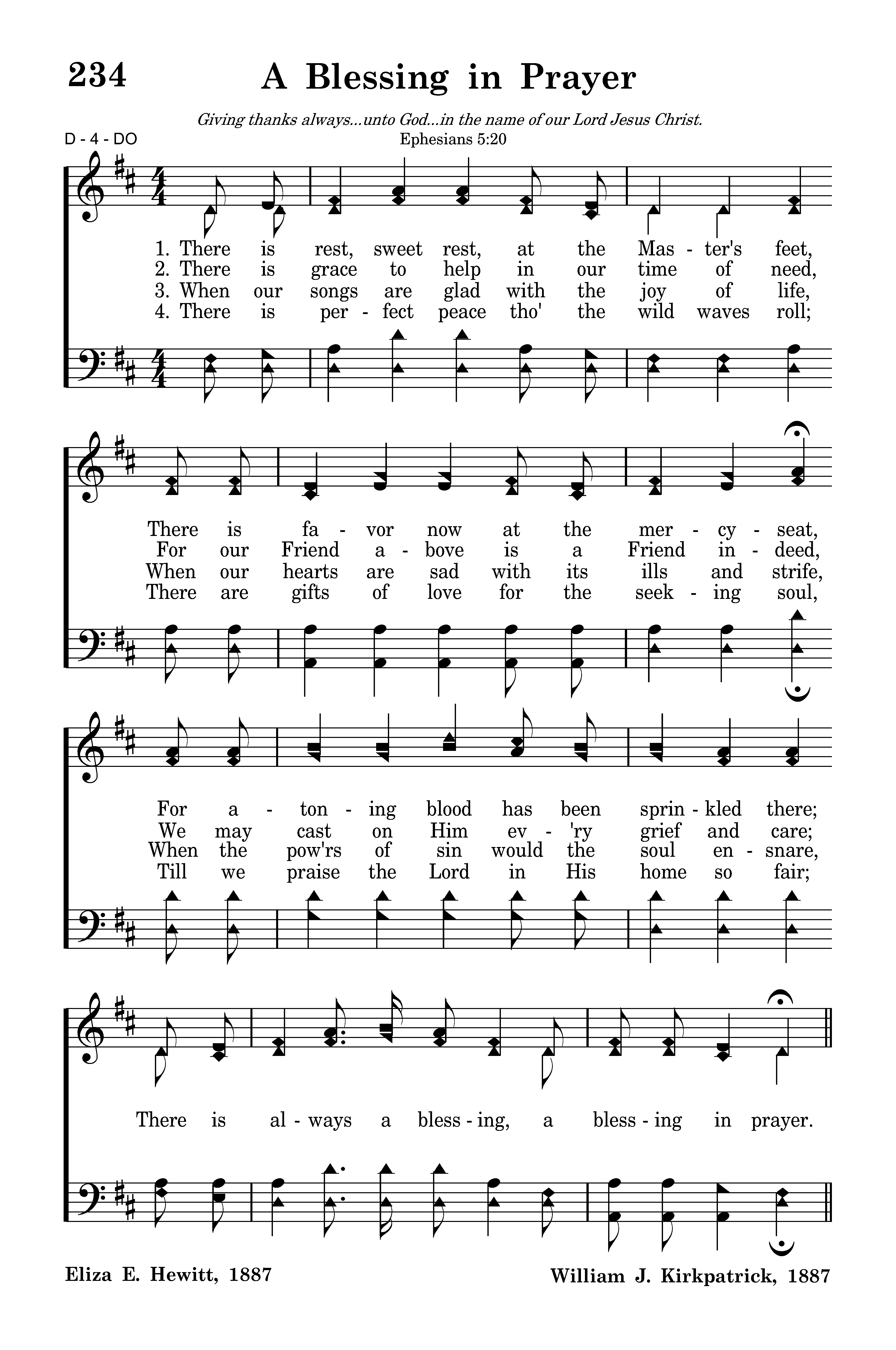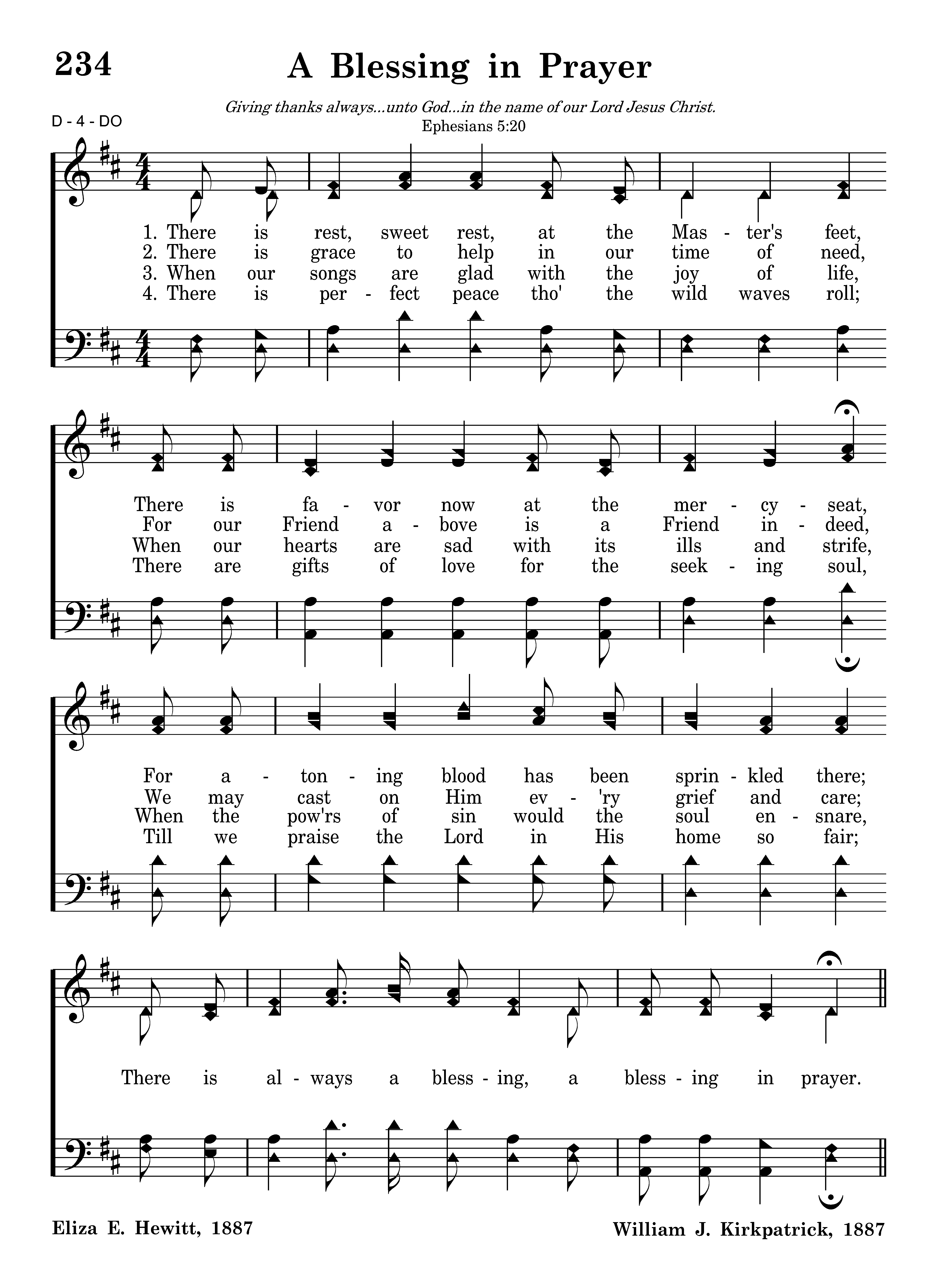 There is rest, sweet rest, at the Master's feet, There is favor now at the mercyseat, For atoning blood has been sprinkled there; There is always a blessing, a blessing in prayer.