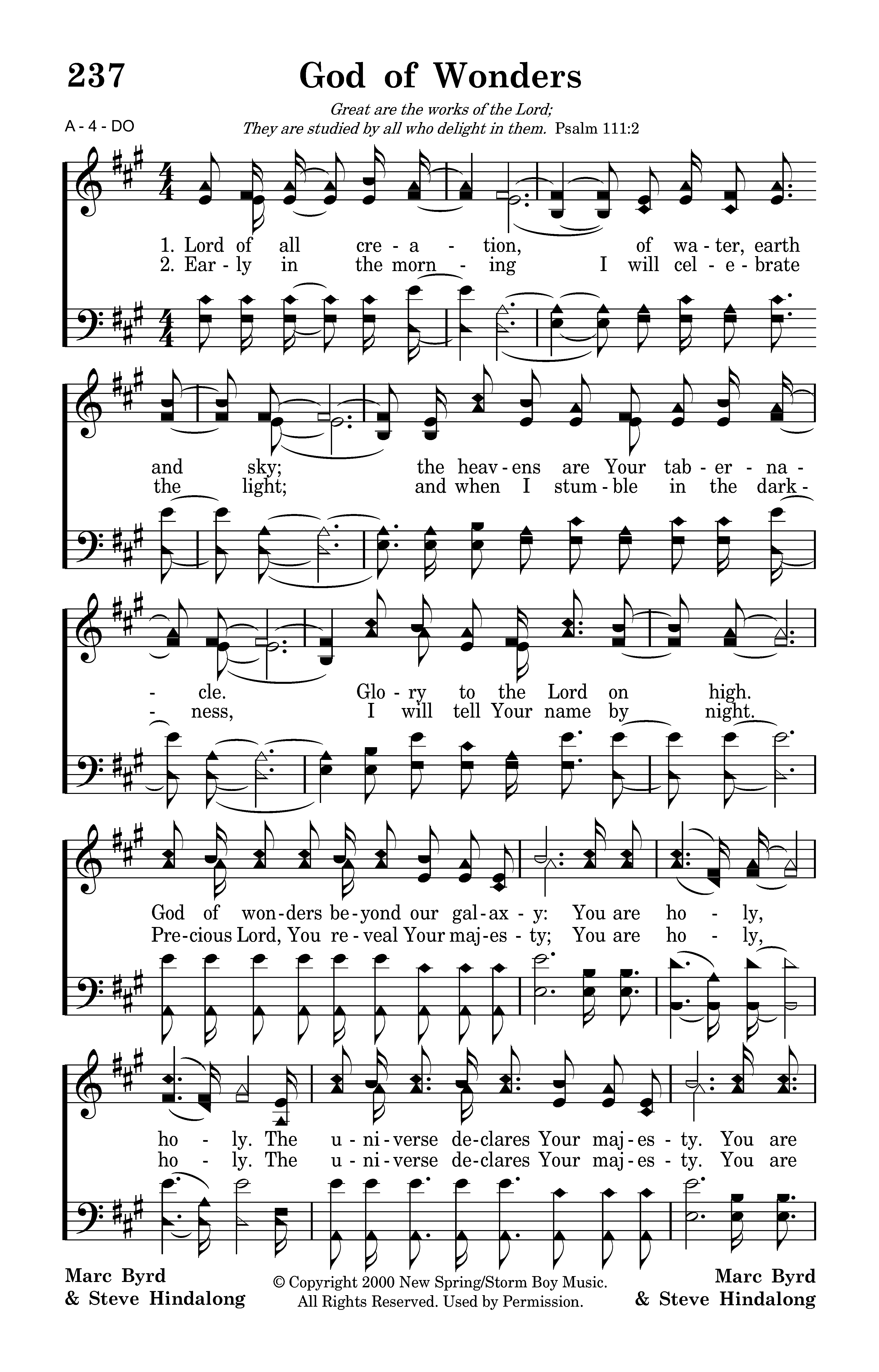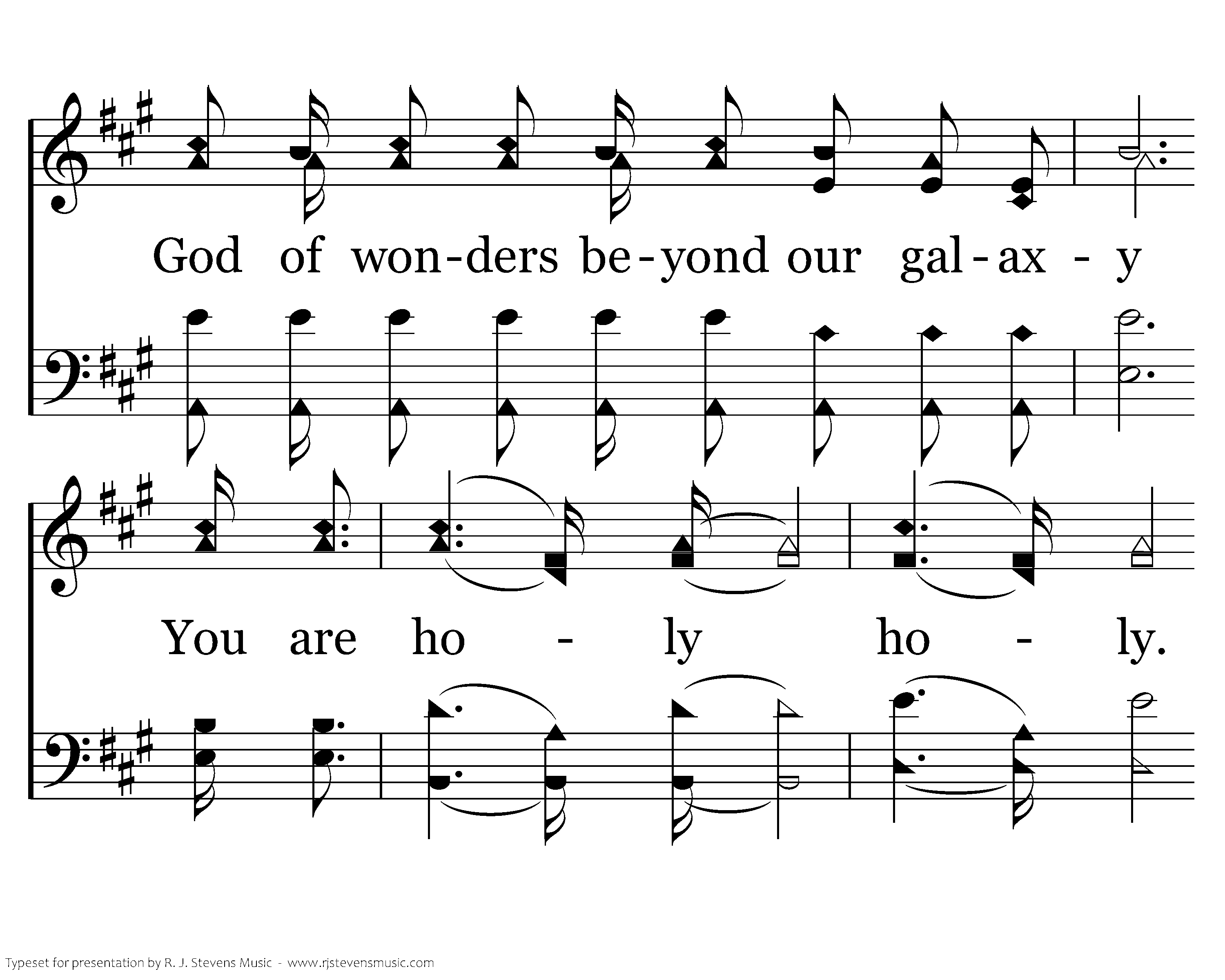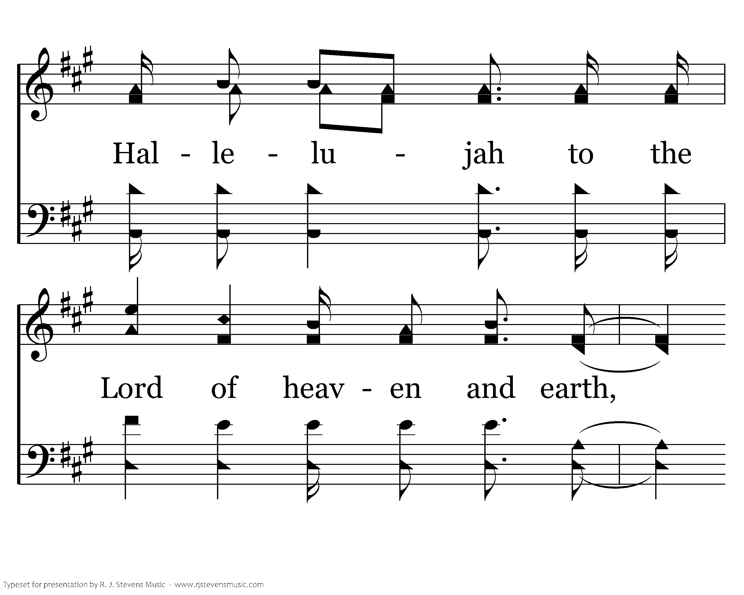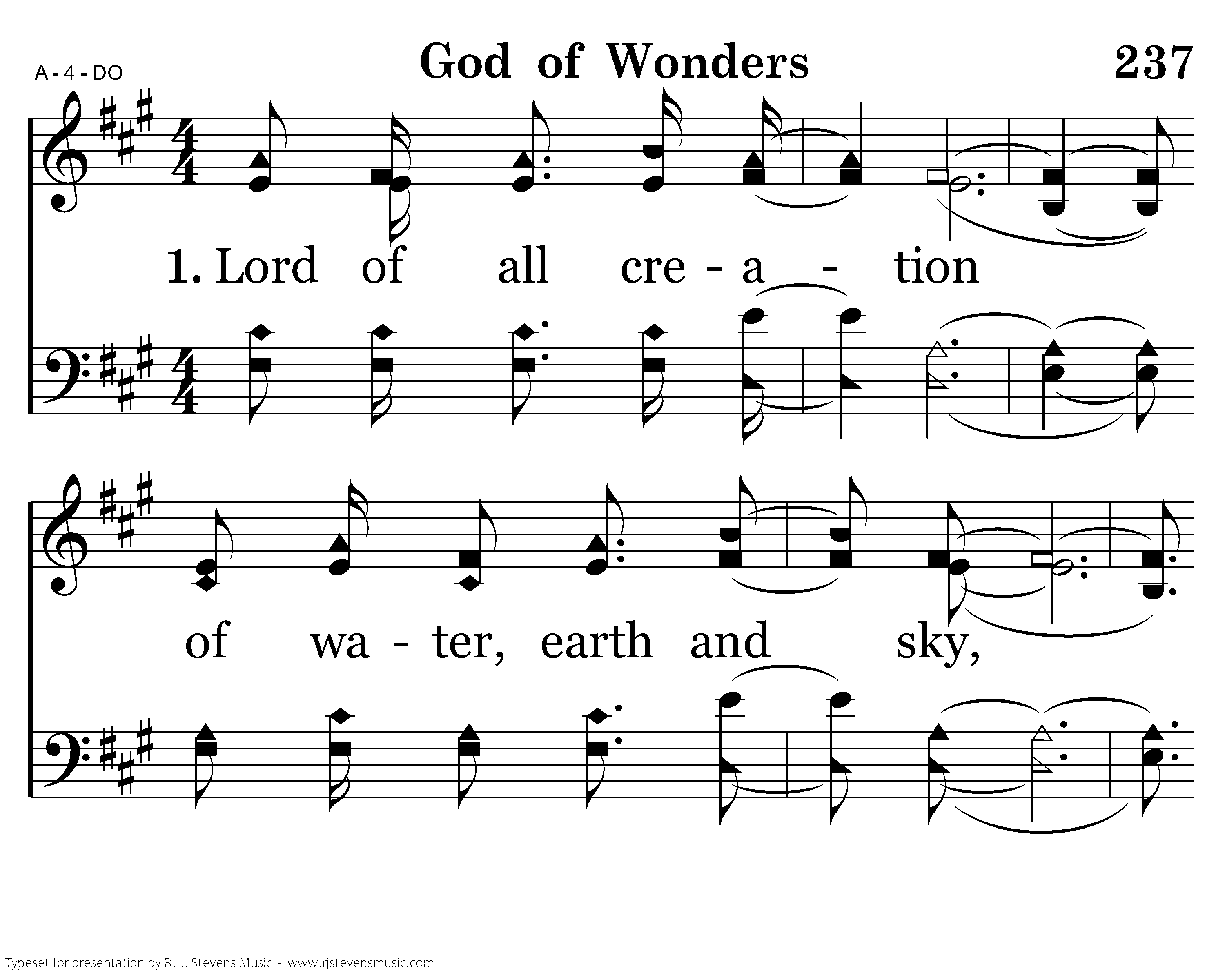 Lord of all creation, of water, earth and sky; the heavens are Your tabernacle. Glory to the Lord on high. God of wonders beyond our galaxy: You are holy, holy. The universe declares Your majesty. You are holy, holy. Lord of heaven and earth; Lord of heaven and earth; Lord of heaven and earth; Lord of heaven and earth; Lord of heaven and earth; Hallelujah to the Lord of heaven and earth, Hallelujah to the Lord of heaven and earth! Hallelujah to the Lord of heaven and earth!