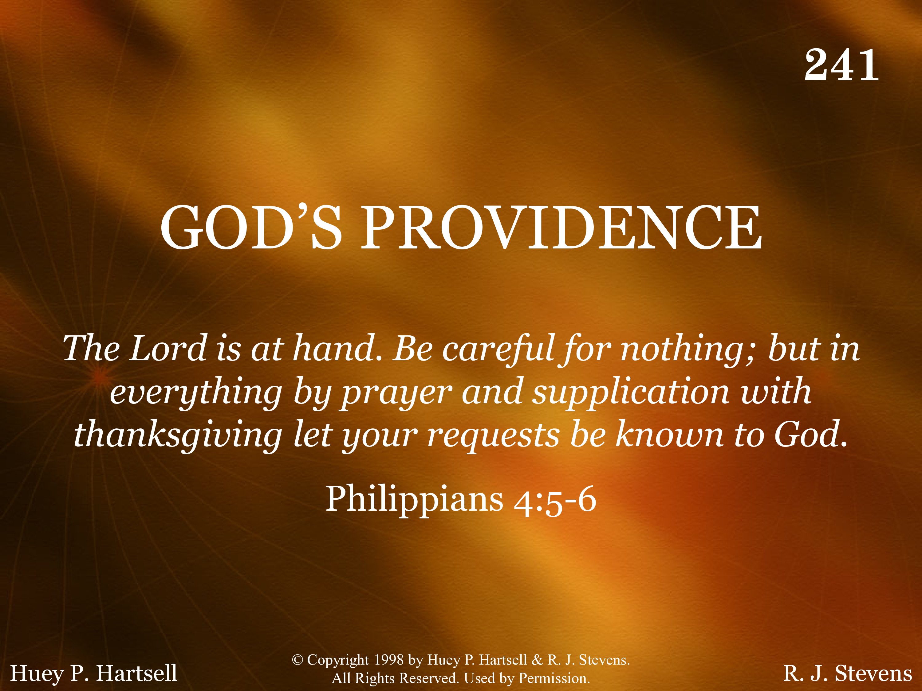 - Copyright © 1998 by Huey P. Hartsell & R. J. Stevens. All Rights Reserved. Used by Permission.
