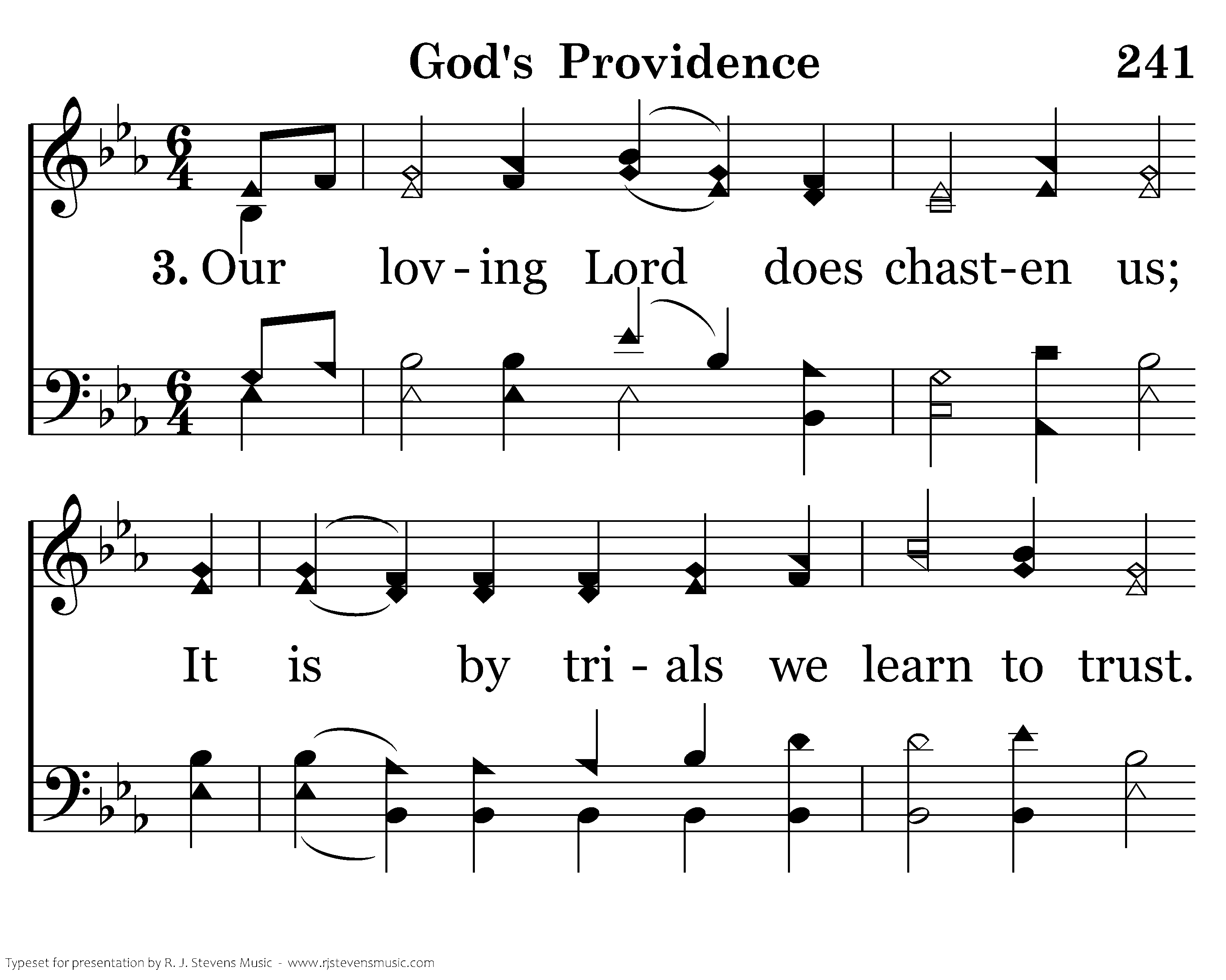 Our loving Lord does chasten us; it is by trials we learn to trust. Then humble hearts this praise will swell: our gracious God does all things well.