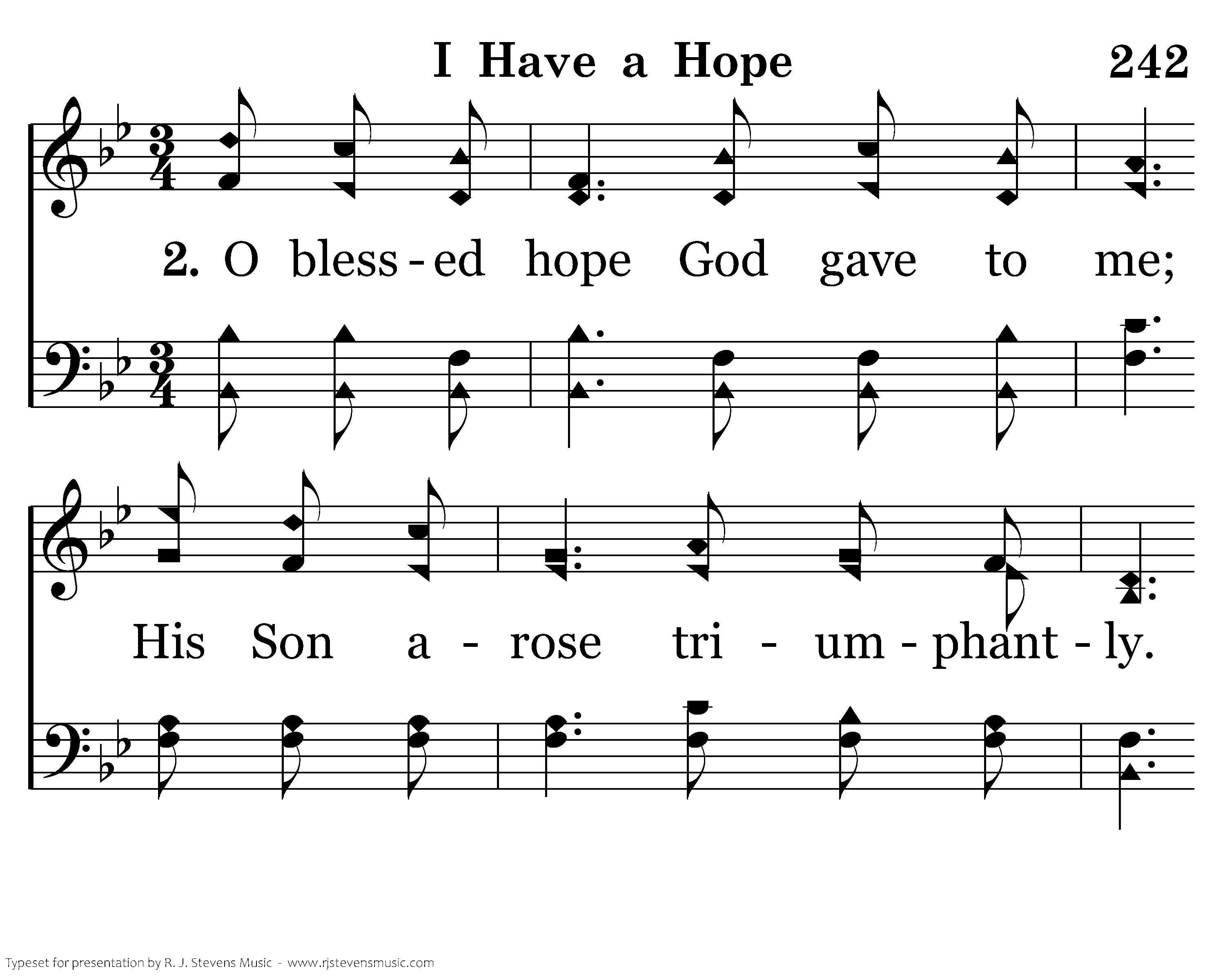 O blessed hope God gave to me; His Son arose triumphantly. I have His word to guide me on until one day He calls me home.