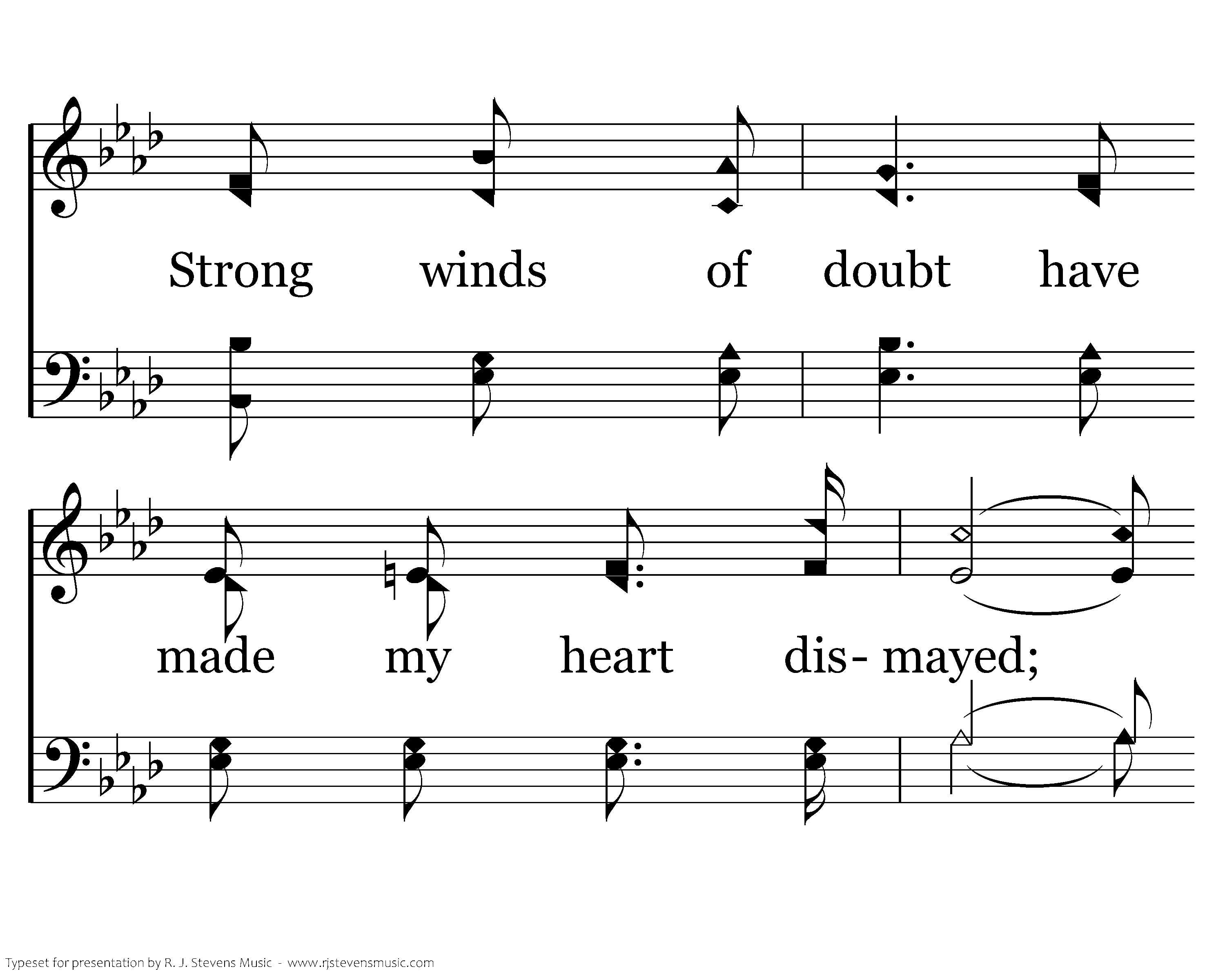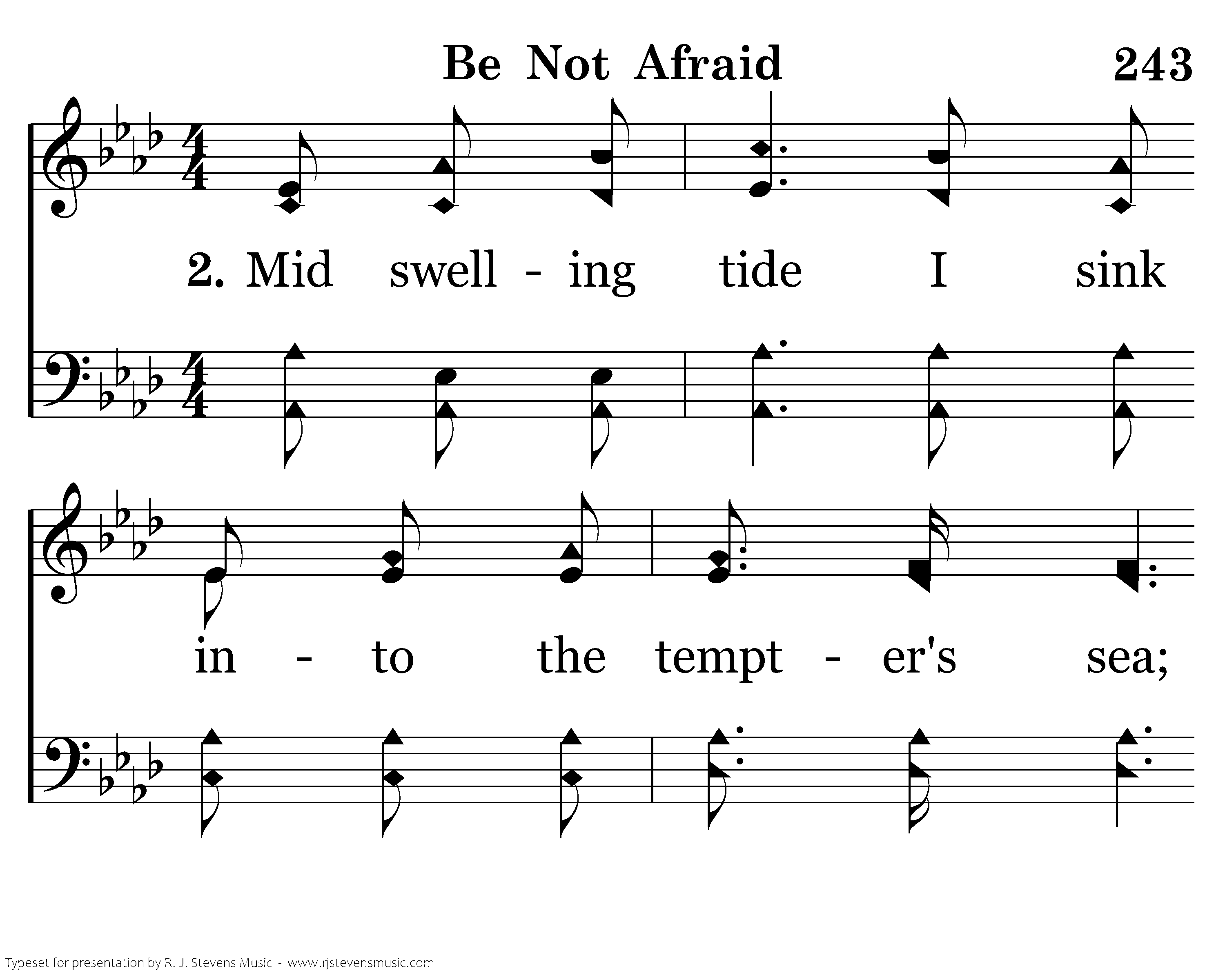 Mid swelling tide I sink into the tempter's sea; Strong winds of doubt have made my heart dismayed; With patient care His words remind me tenderly, Increase thy faith and "do not be afraid."
