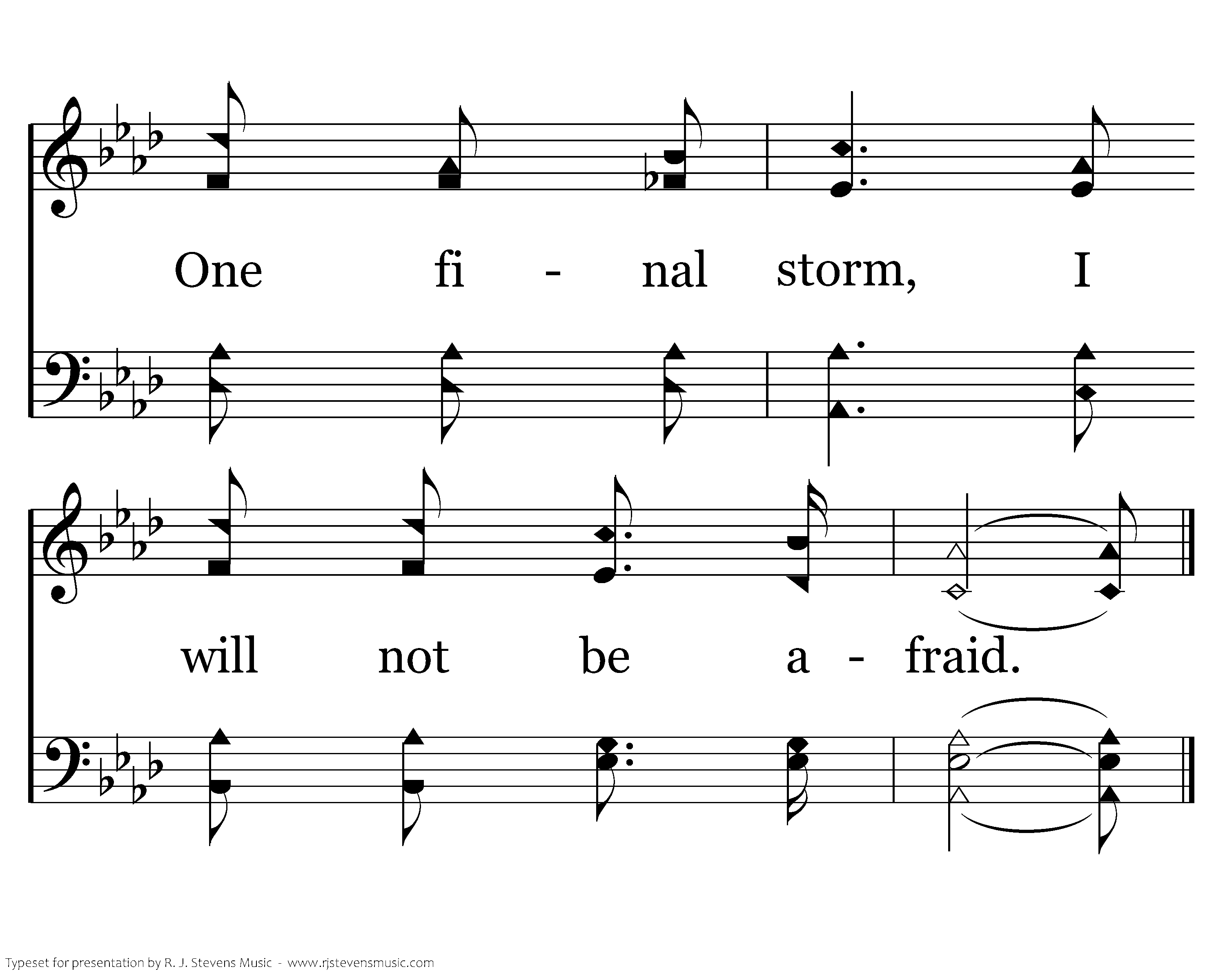 From angry waves His words of life have set me free; A heav'nly hope, A peaceful calm has made. O'er depths of death His arm will safely carry me; One final storm, I will not be afraid.