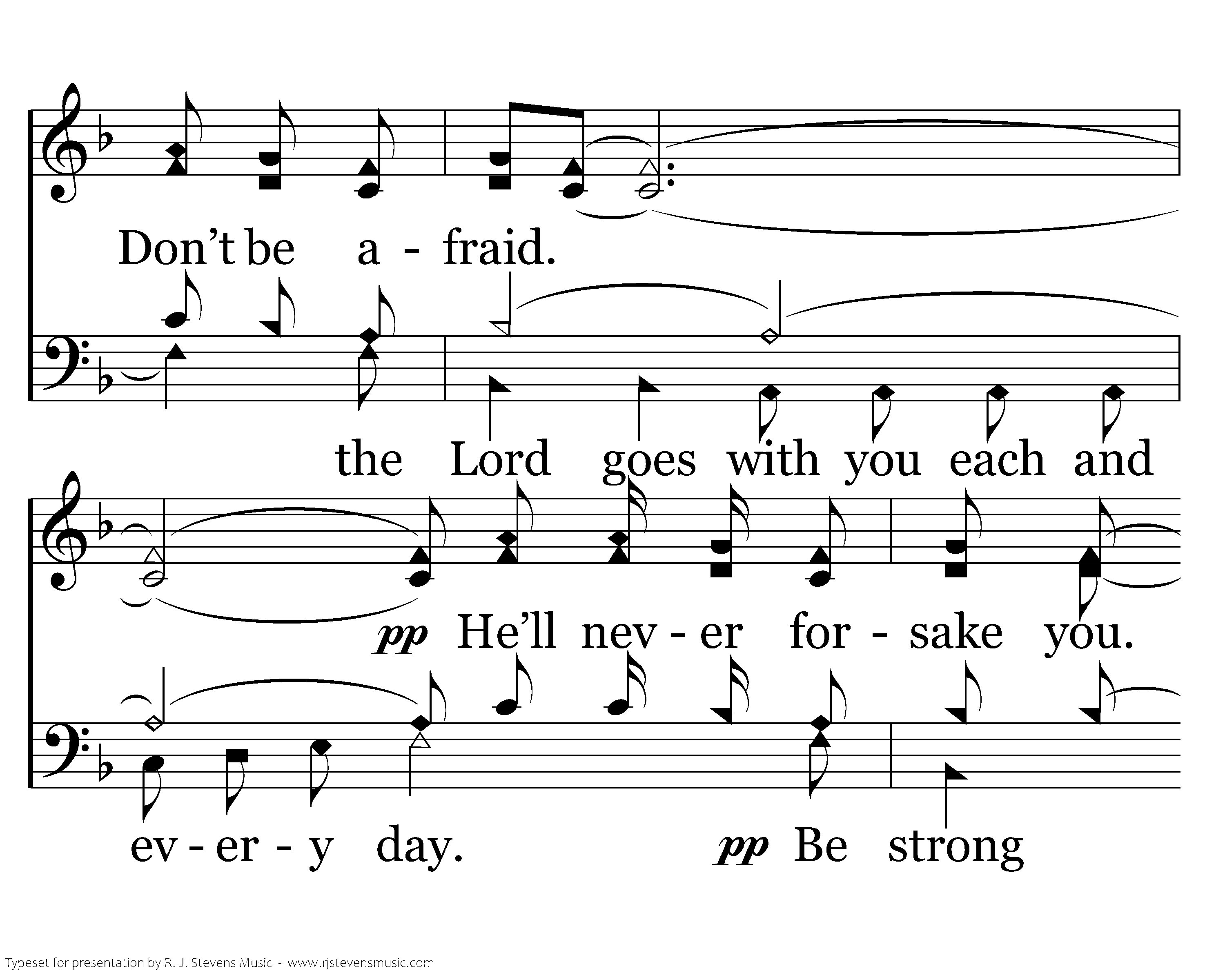 Be strong and courageous and do not be afraid. The Lord goes with you each and every day. He’ll never forsake you. don’t be afraid.