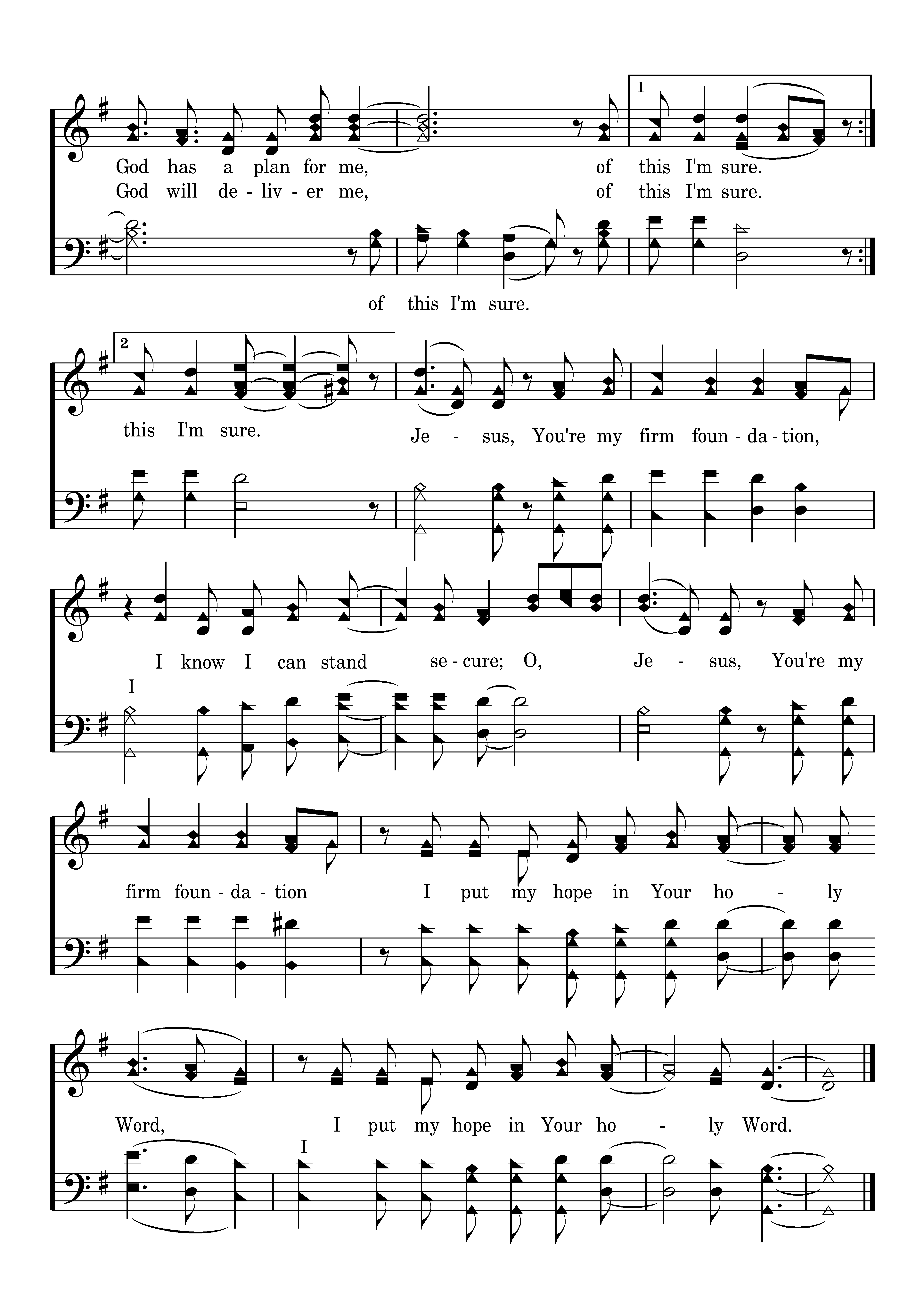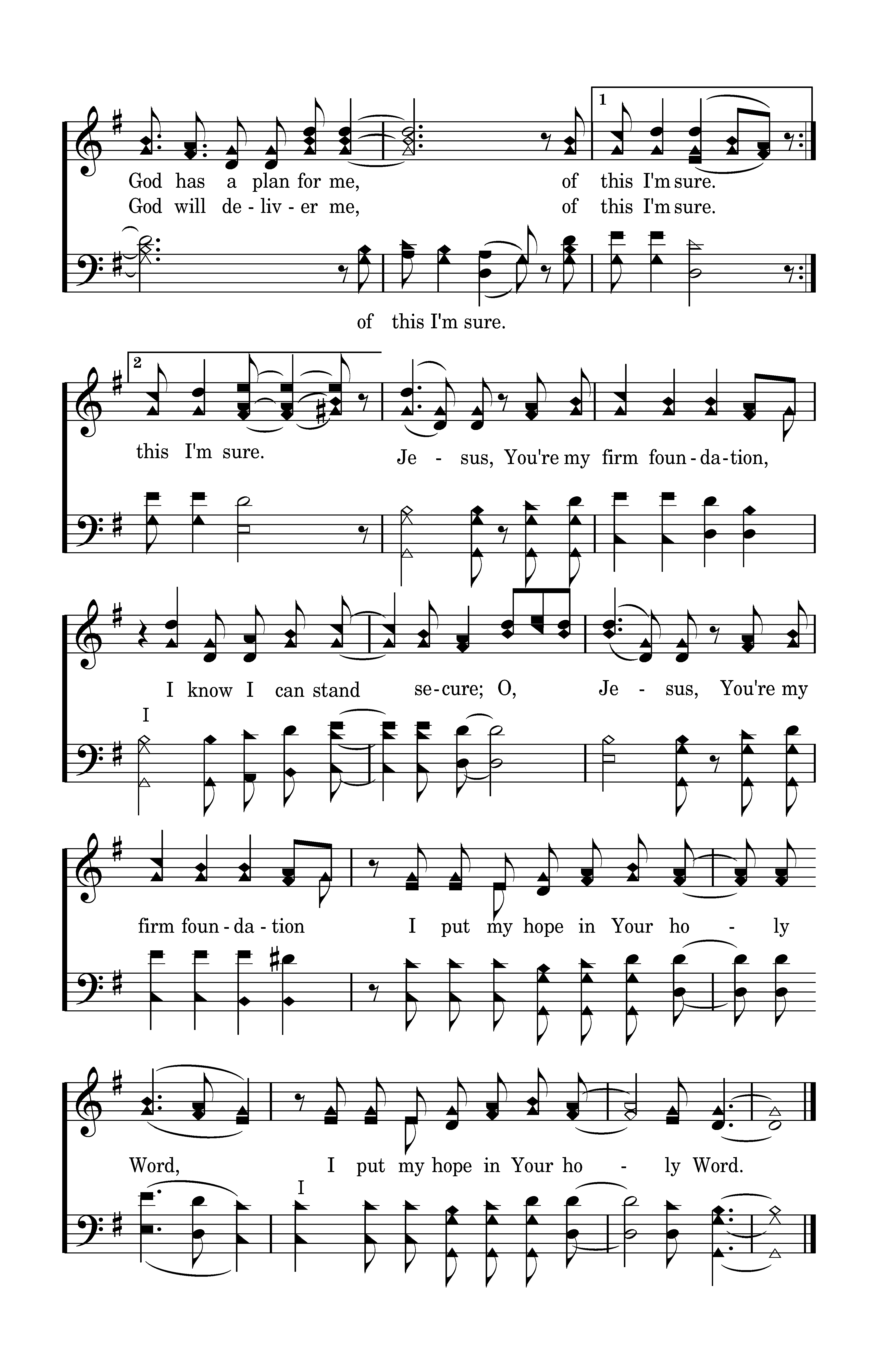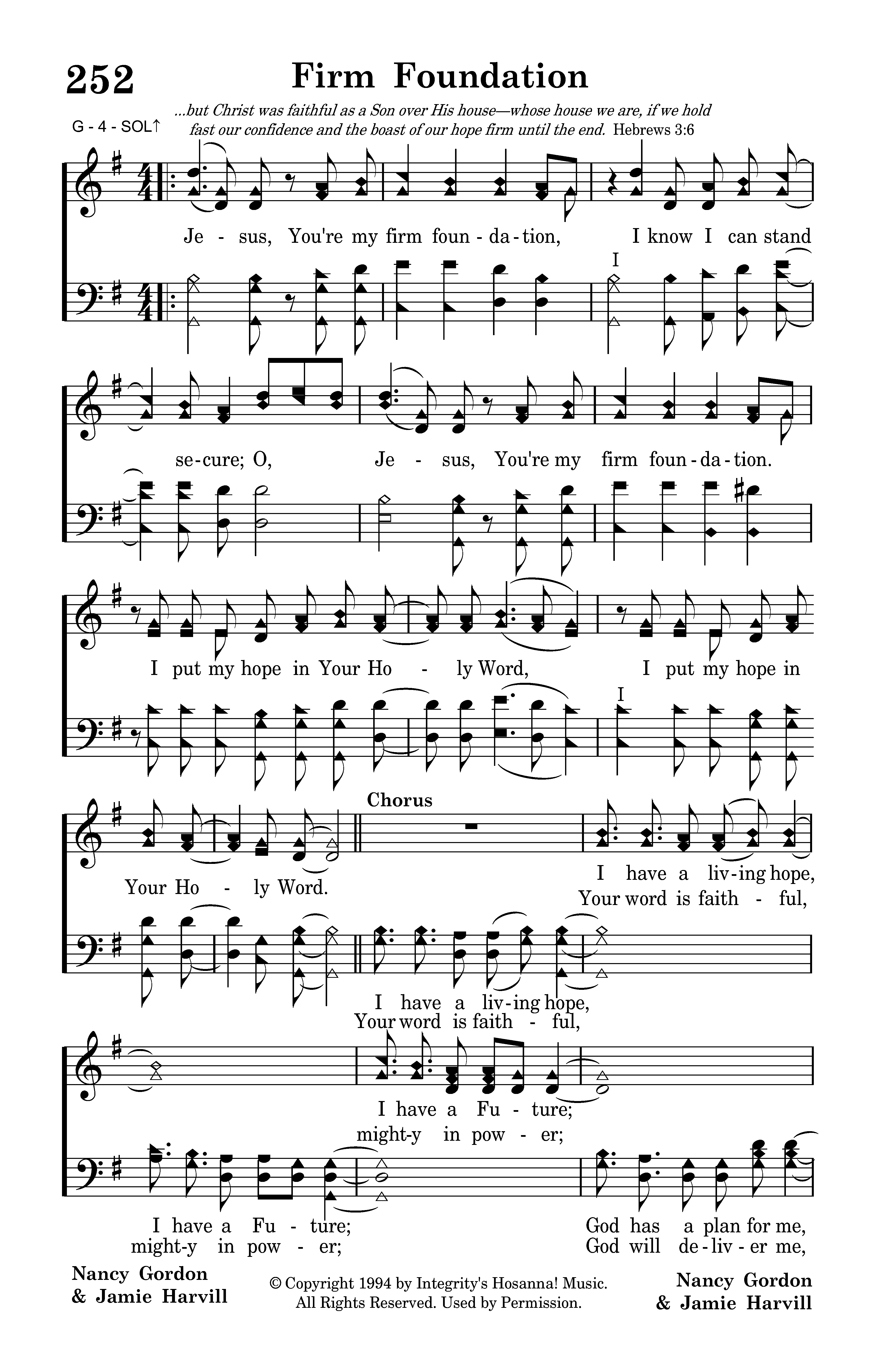 Jesus, You're my firm foundation, I know I can stand secure; Jesus, You're my firm foundation I put my hope in Your holy Word, I put my hope in Your holy Word. I have a living hope, I have a Future; God has a plan for me, of this I'm sure. Your word is faithful, mighty in power; God will deliver me, of this I'm sure. I have a living hope, I have a Future; God has a plan for me, of this I'm sure.