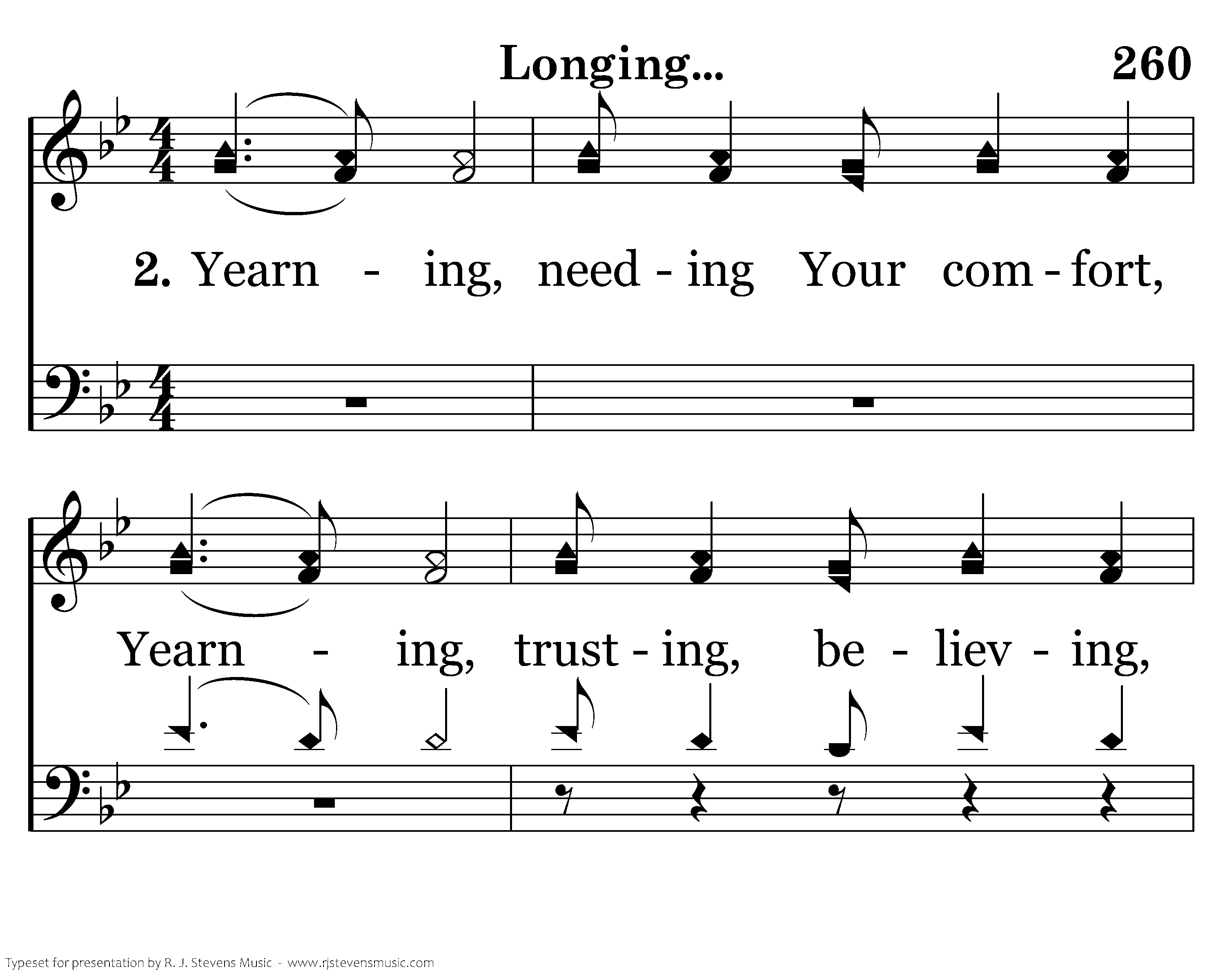 Yearning, needing Your comfort, Yearning, trusting, believing, Yearning, soon to be safe in Your embrace.
