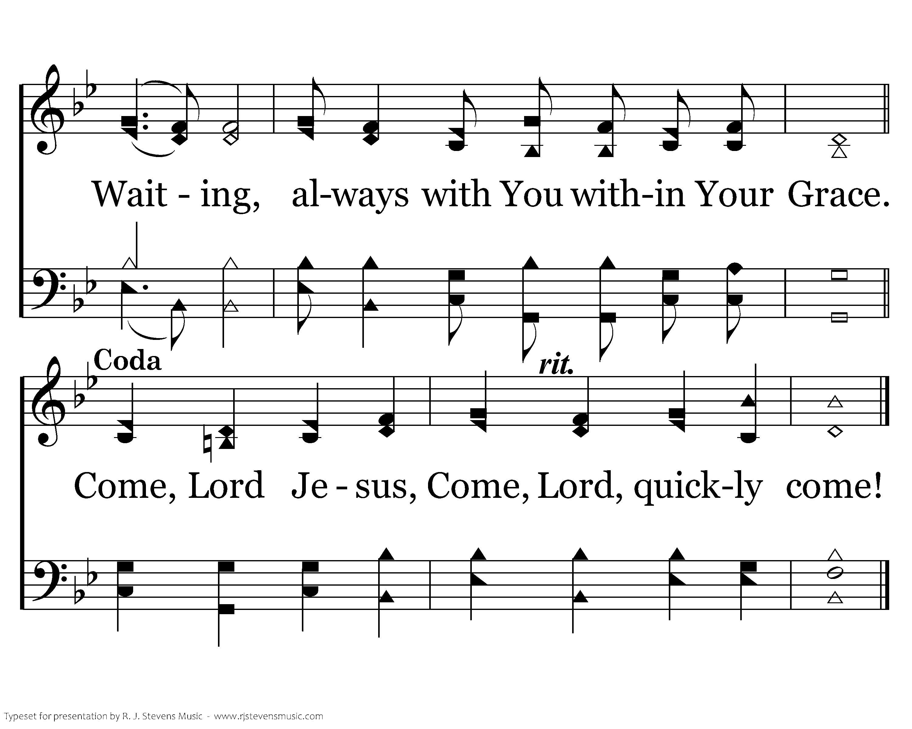Waiting, ready to rise up, Waiting, anxiously watching, Waiting, always with You within Your grace. Come, Lord Jesus, Come, Lord, quickly come.