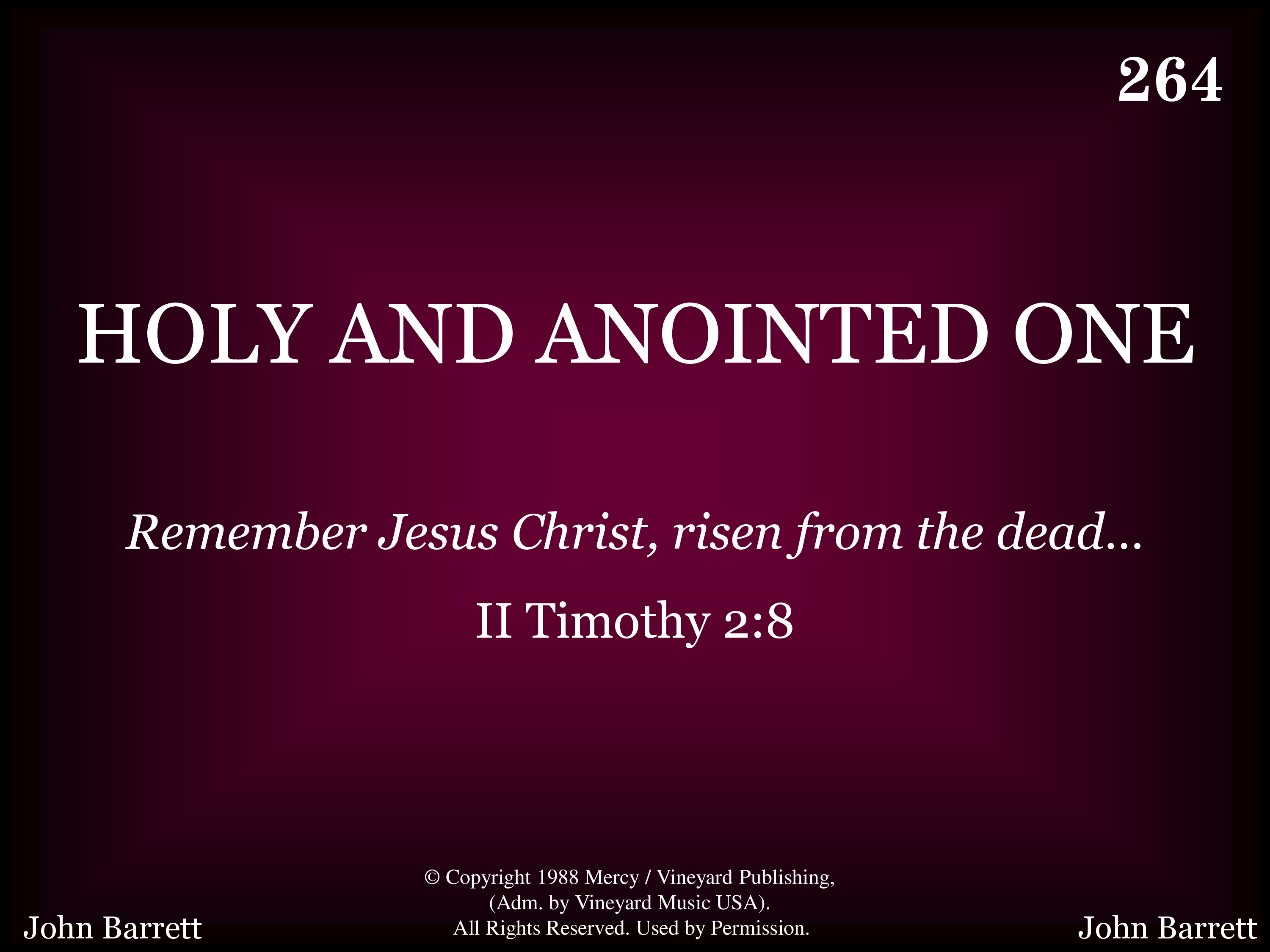 - Copyright © 1988 by Mercy / Vineyard Publishing. (Admin. by Integrity Music.) All Rights Reserved. Used by Permission.