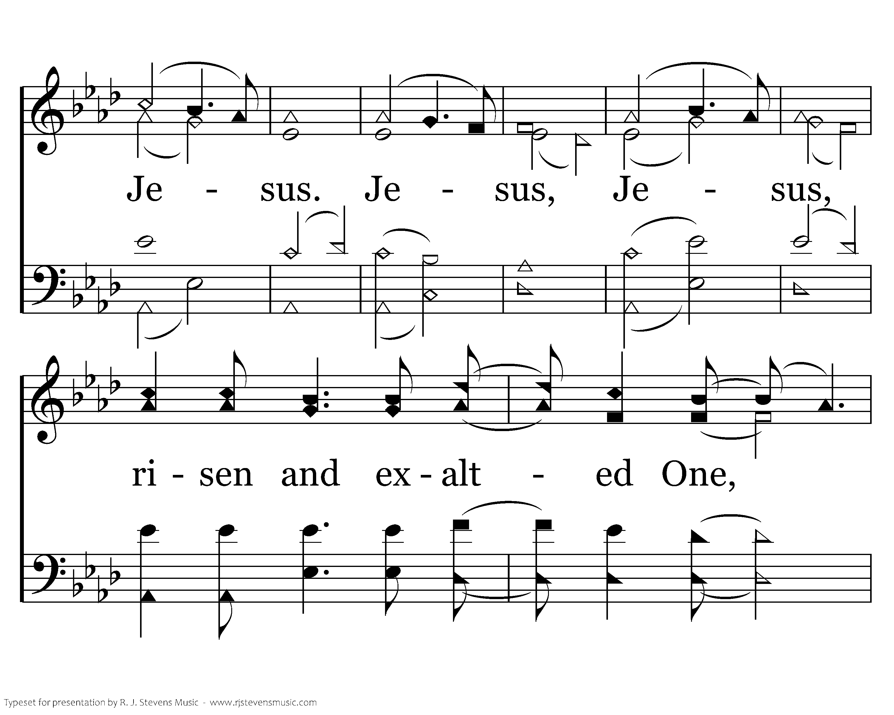 Jesus, Jesus, risen and exalted One, Jesus Your name is like honey on my lips, Your spirit like water to my soul. Your word is a lamp unto my feet. Jesus, I love You. I love You.
