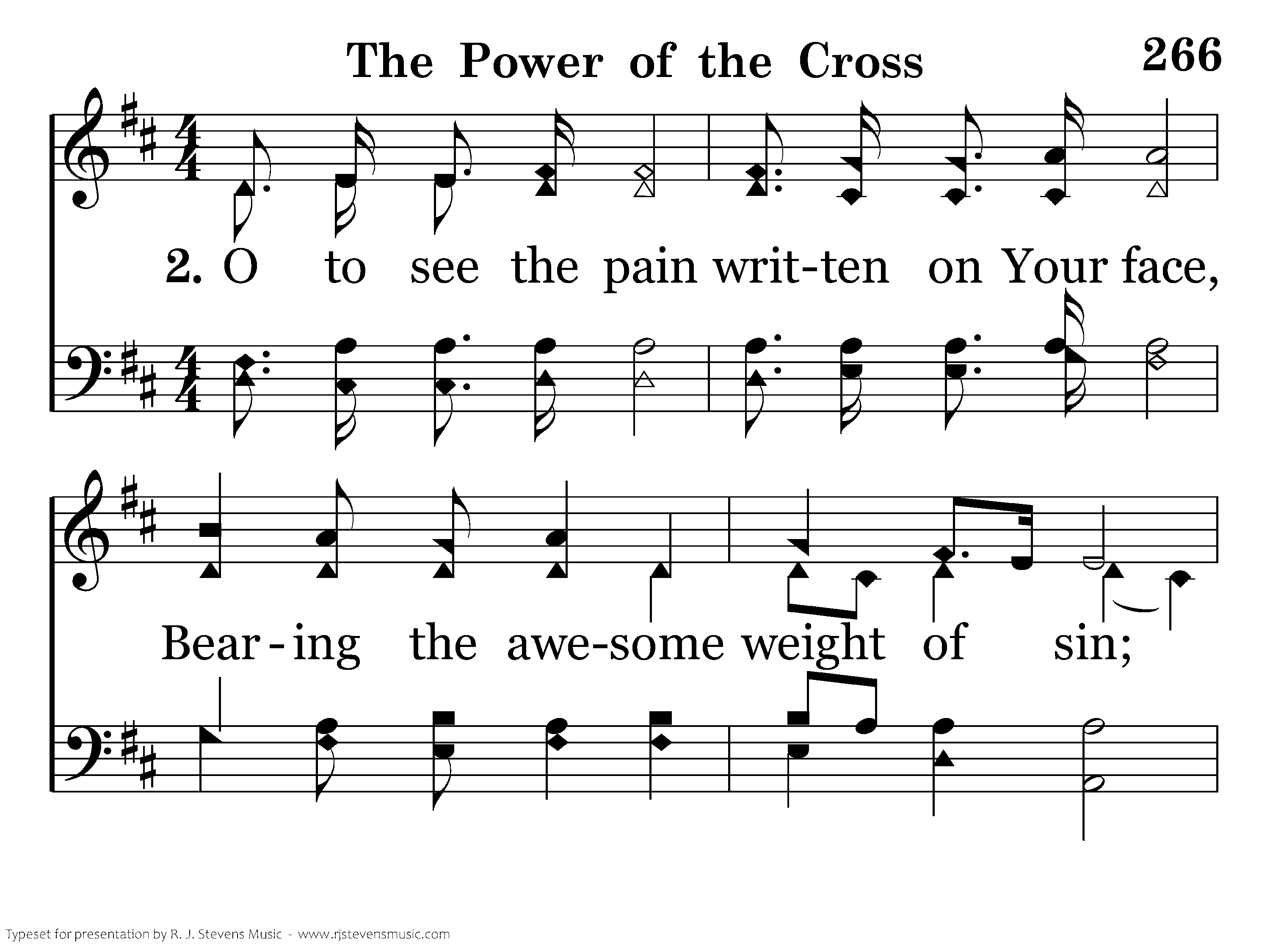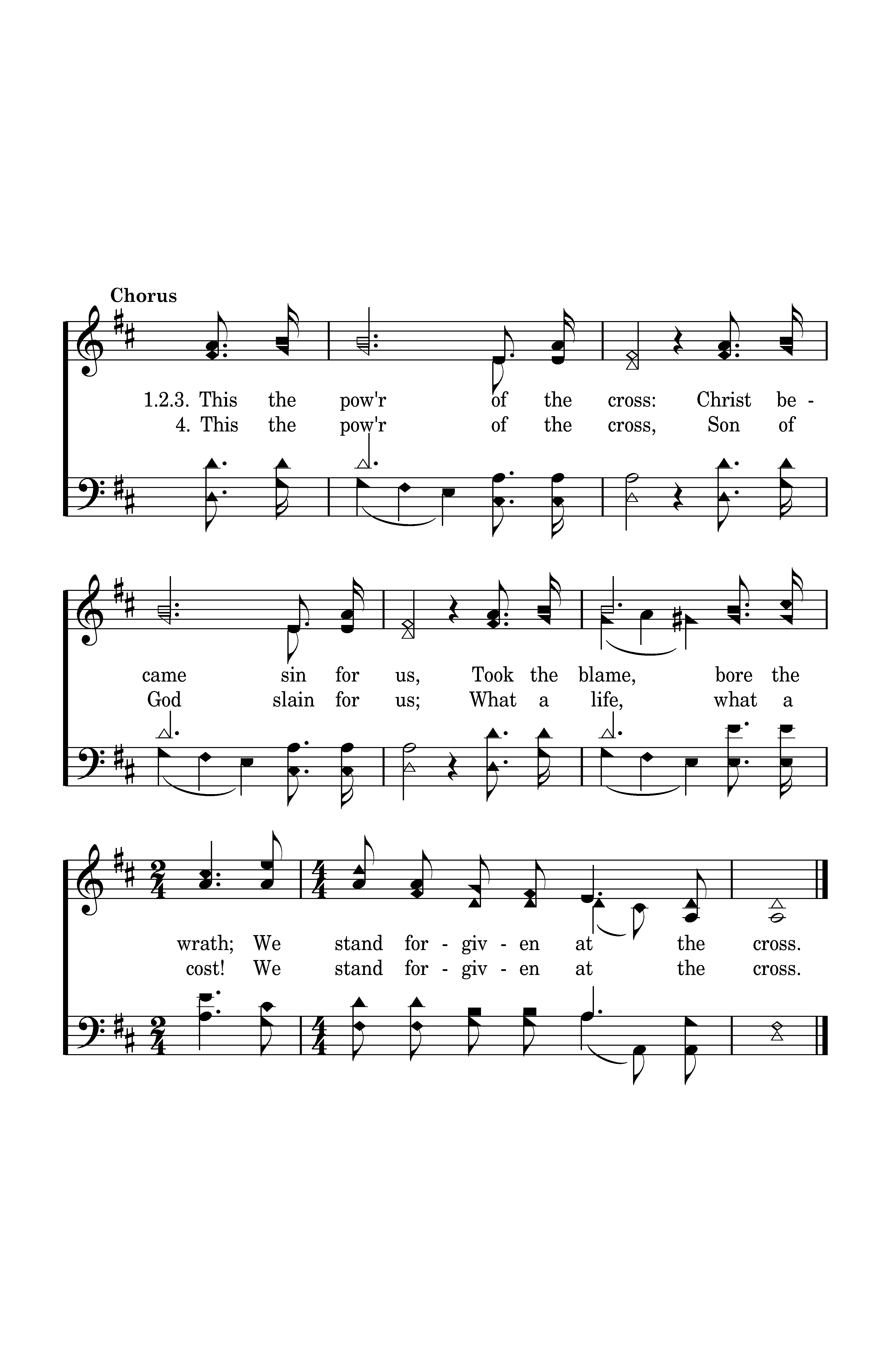 O to see the pain written on Your face, Bearing the awesome weight of sin; Ev'ry bitter tho't, ev'ry evil deed Crowning Your bloodstained brow. This the pow'r of the cross: Christ became sin for us, Took the blame, bore the wrath; We stand forgiven at the cross.