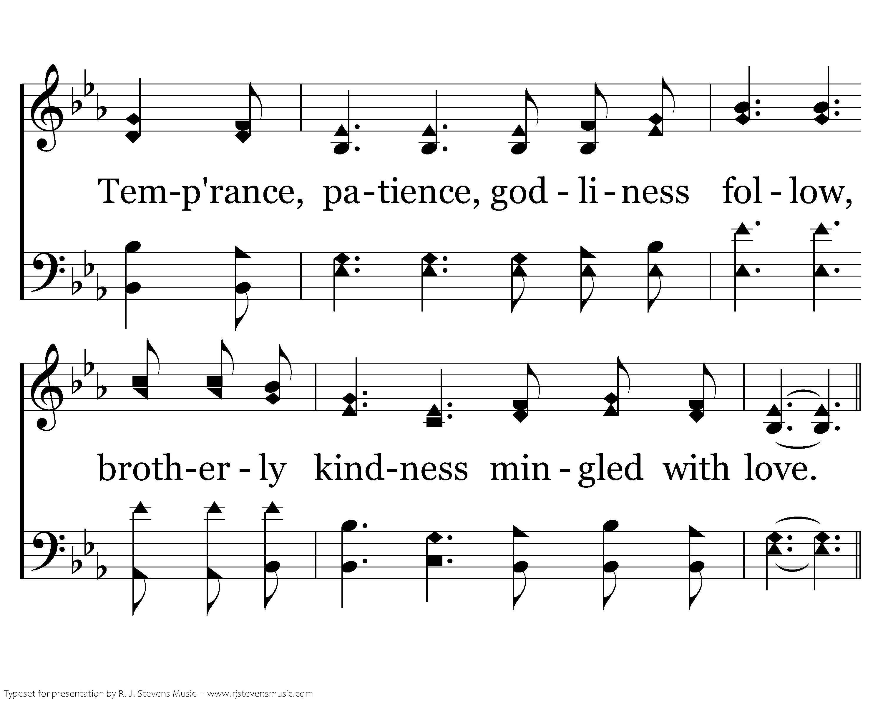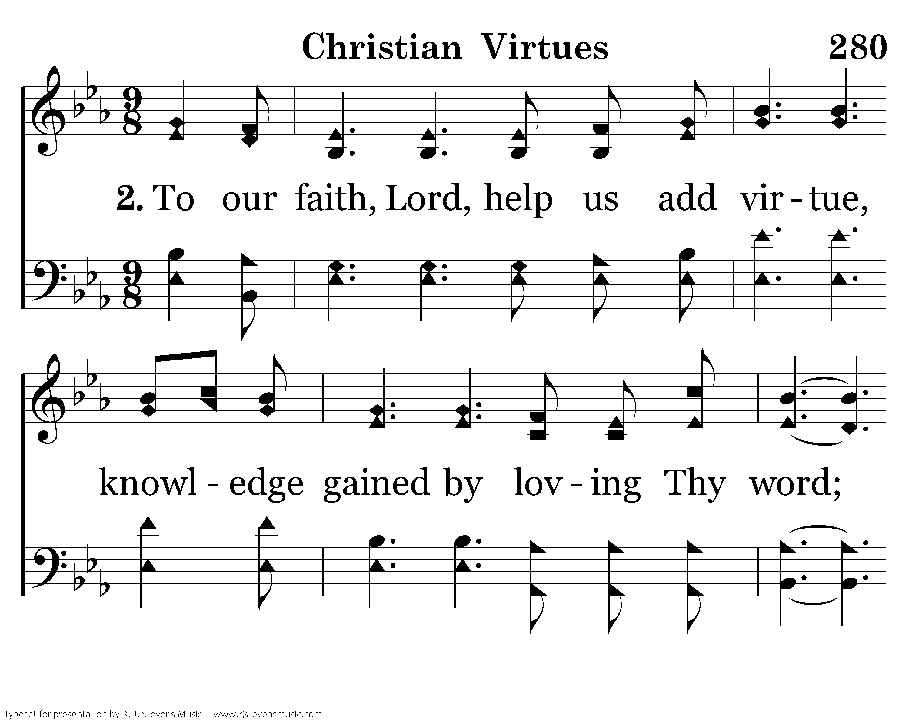 To our faith, Lord, help us add virtue, knowledge gained by loving Thy word; Temp'rance, patience, godliness follow, brotherly kindness mingled with love. Help us, Father, ever grow stronger.