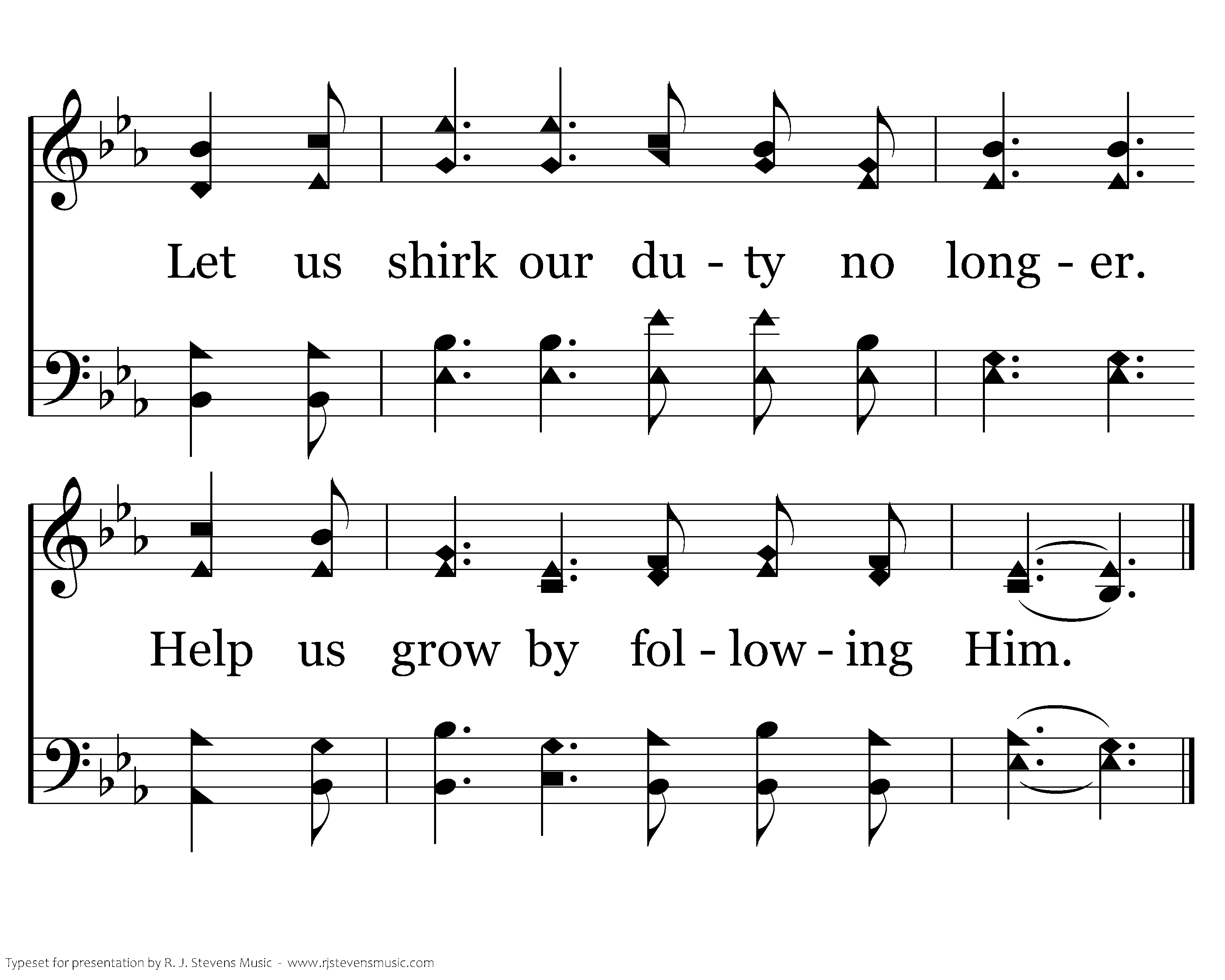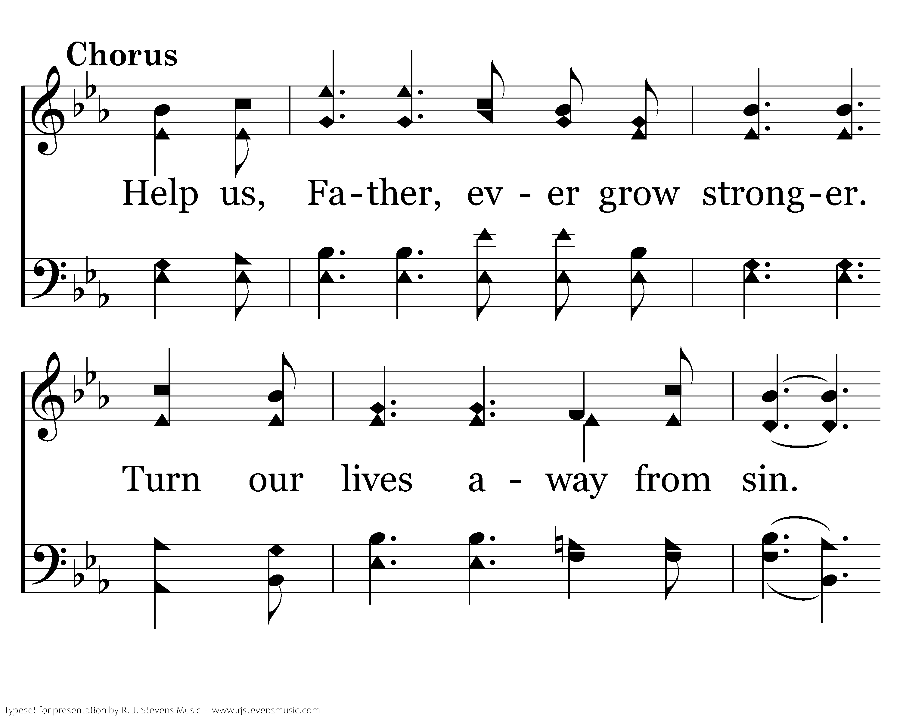 Help us, Father, ever grow stronger. Turn our lives away from sin. Let us shirk our duty no longer. Help us grow by following Him.