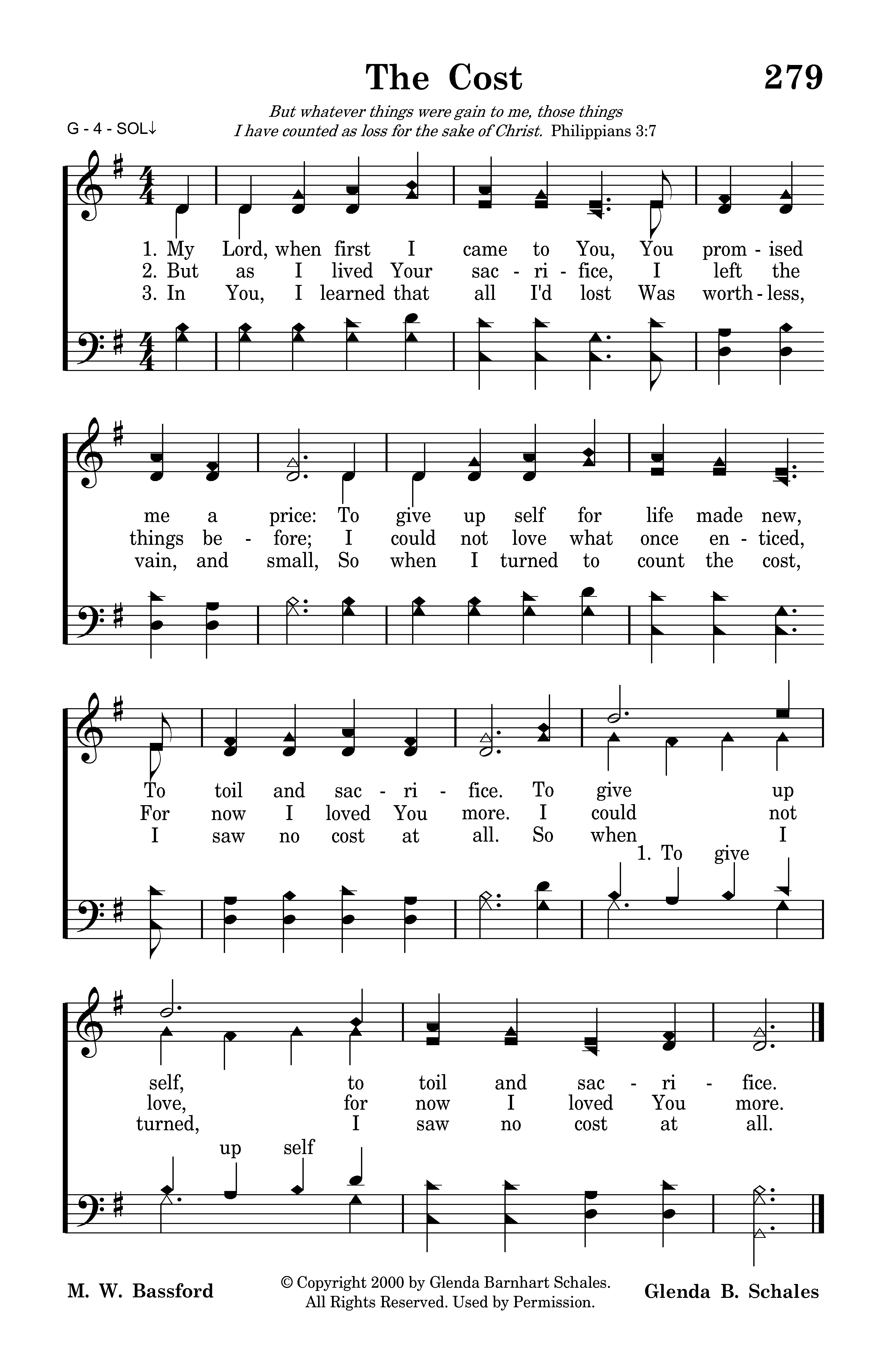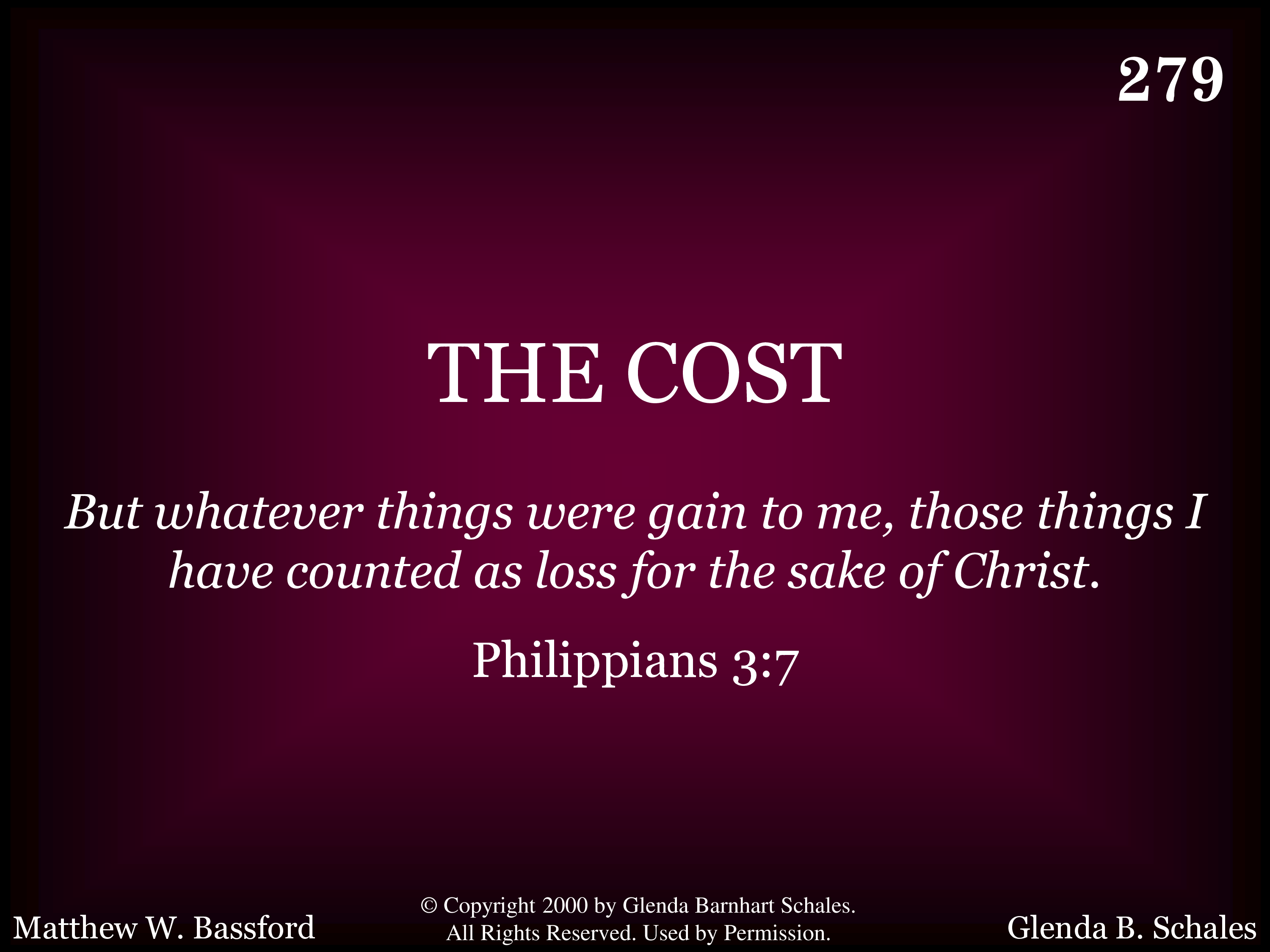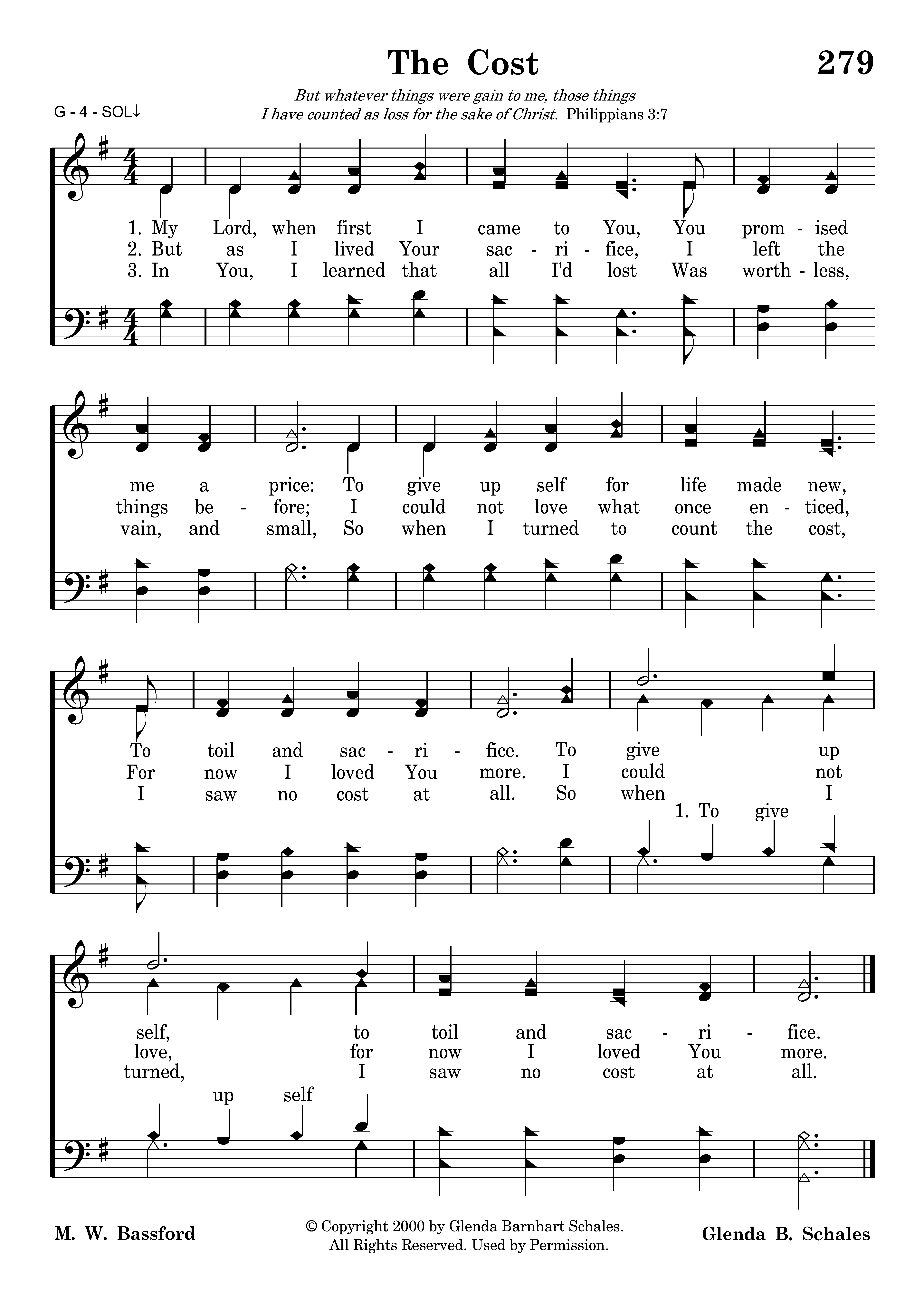In You, I learned that all I'd lost Was worthless, vain, and small, So when I turned to count the cost, I saw no cost at all. So when I turned, I saw no cost at all.