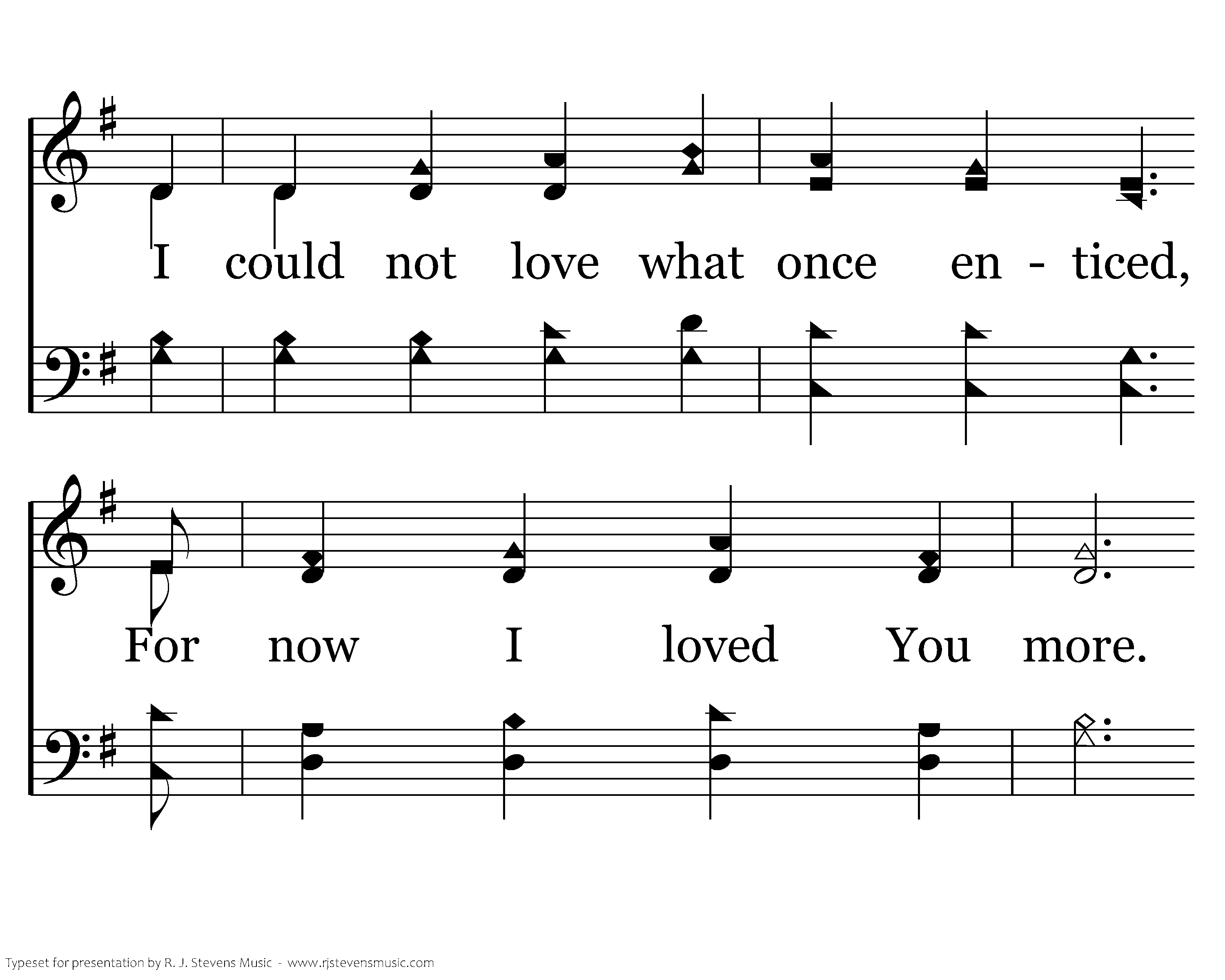 But as I lived Your sacrifice, I left the things before; I could not love what once enticed, For now I loved You more. I could not love, for now I loved You more.