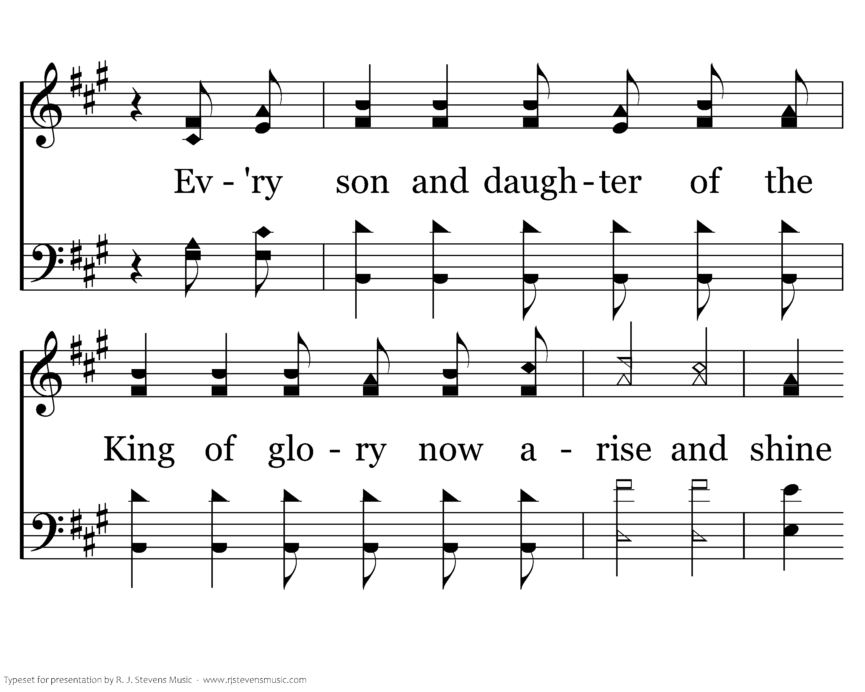 In the beginning God created, and for His pleasure all creation sings. Ev'ry son and daughter of the King of glory now arise and shine. Ev'ry son and daughter of the King of glory now arise and shine shine as we declare: