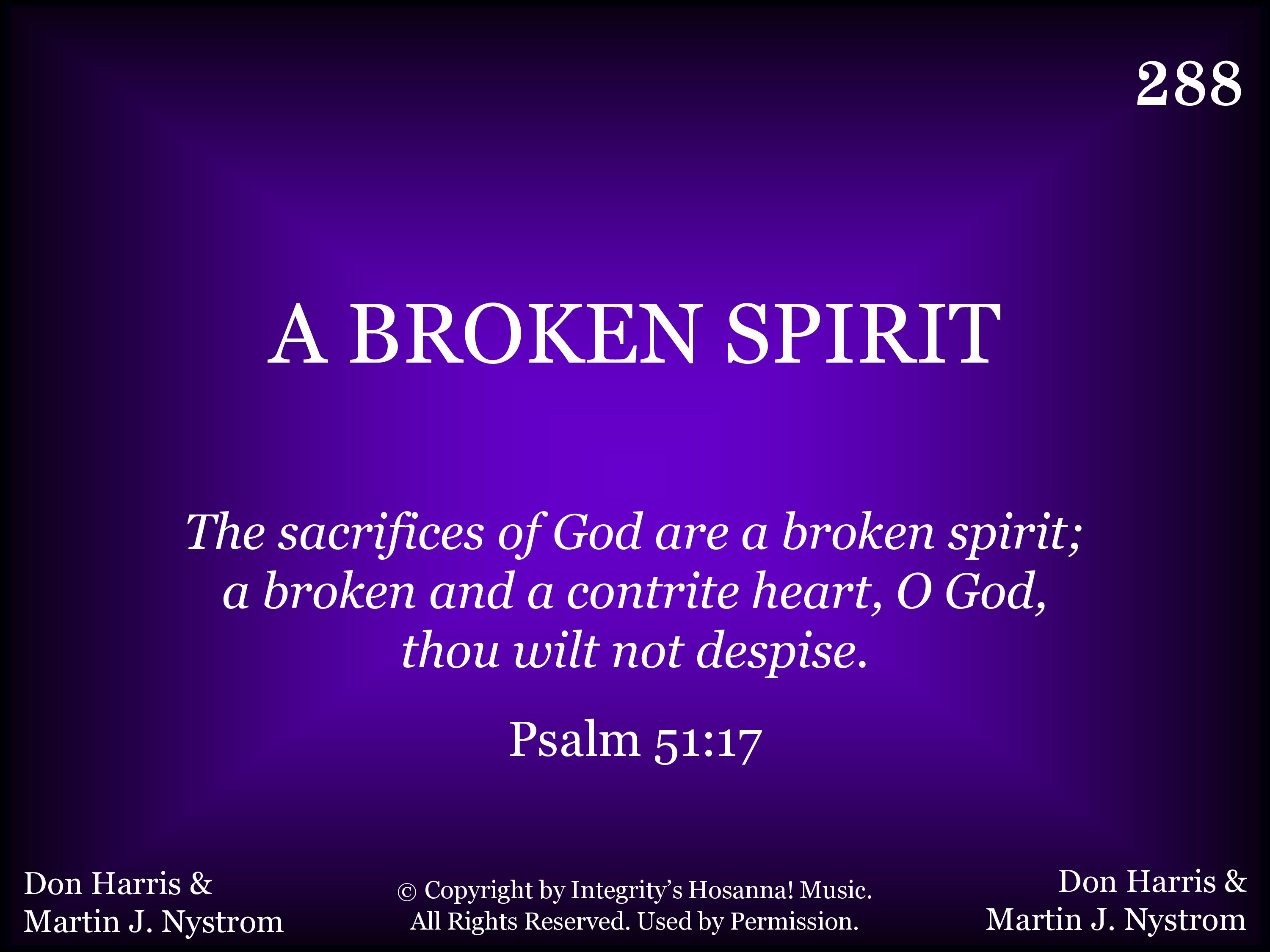 - Copyright © 1993 by Integrity's Hosanna! Music. (Admin. by Integrity Music.) All Rights Reserved. Used by Permission.