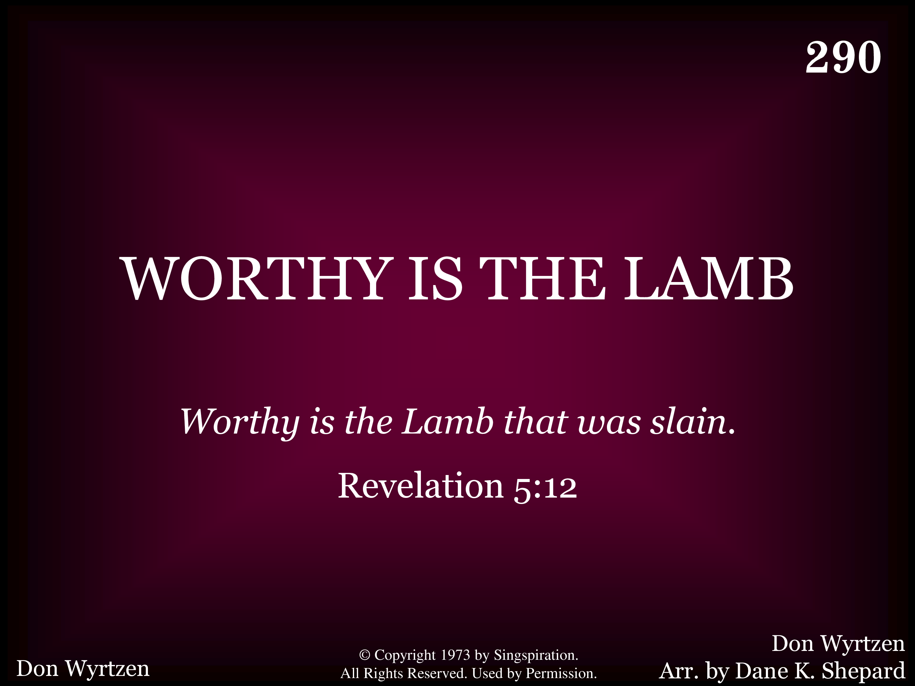 - Copyright © 1973 by Don Wyrtzen Music. (Admin. by Don Wyrtzen Music, LLC.) All Rights Reserved. Used by Permission.