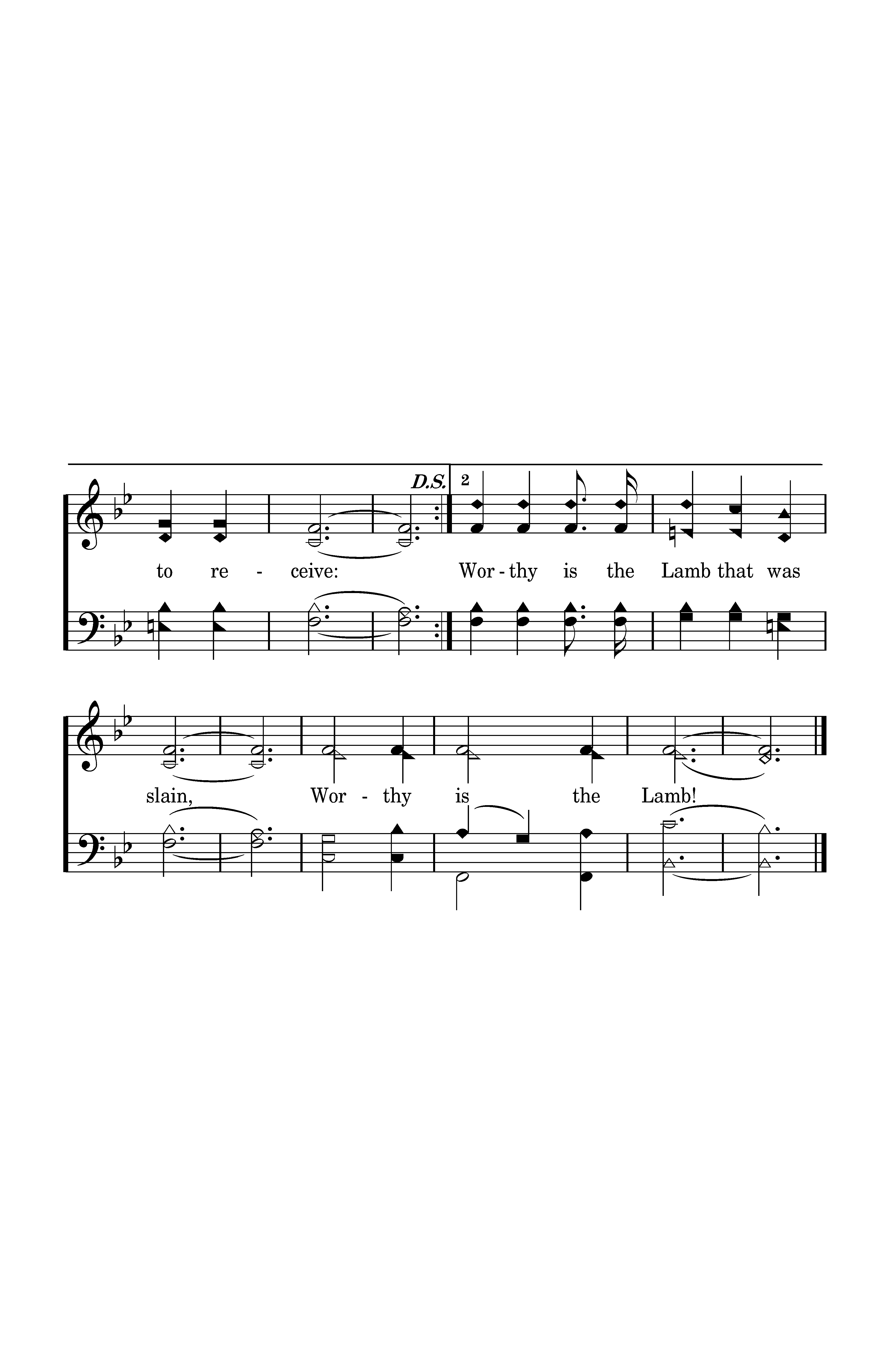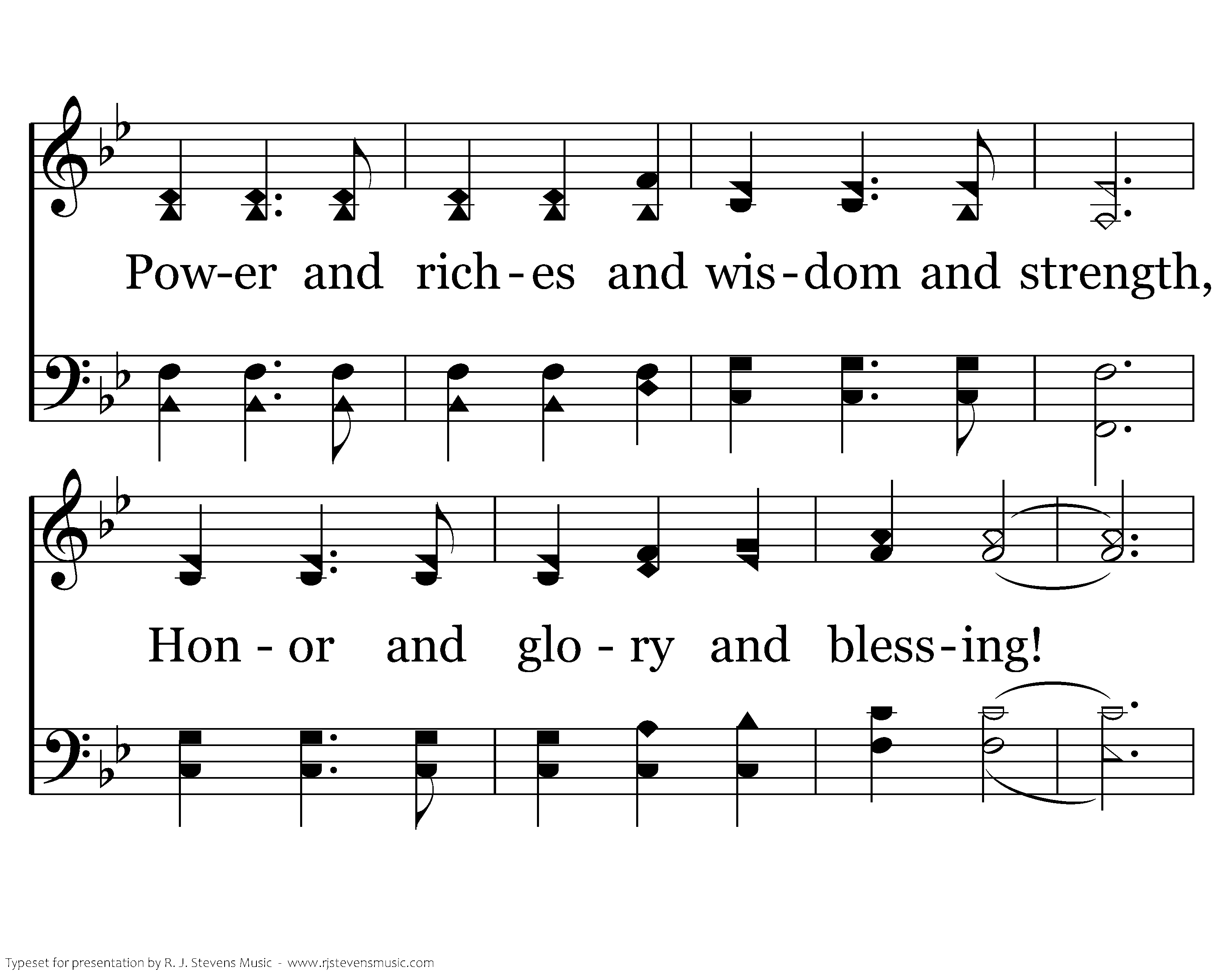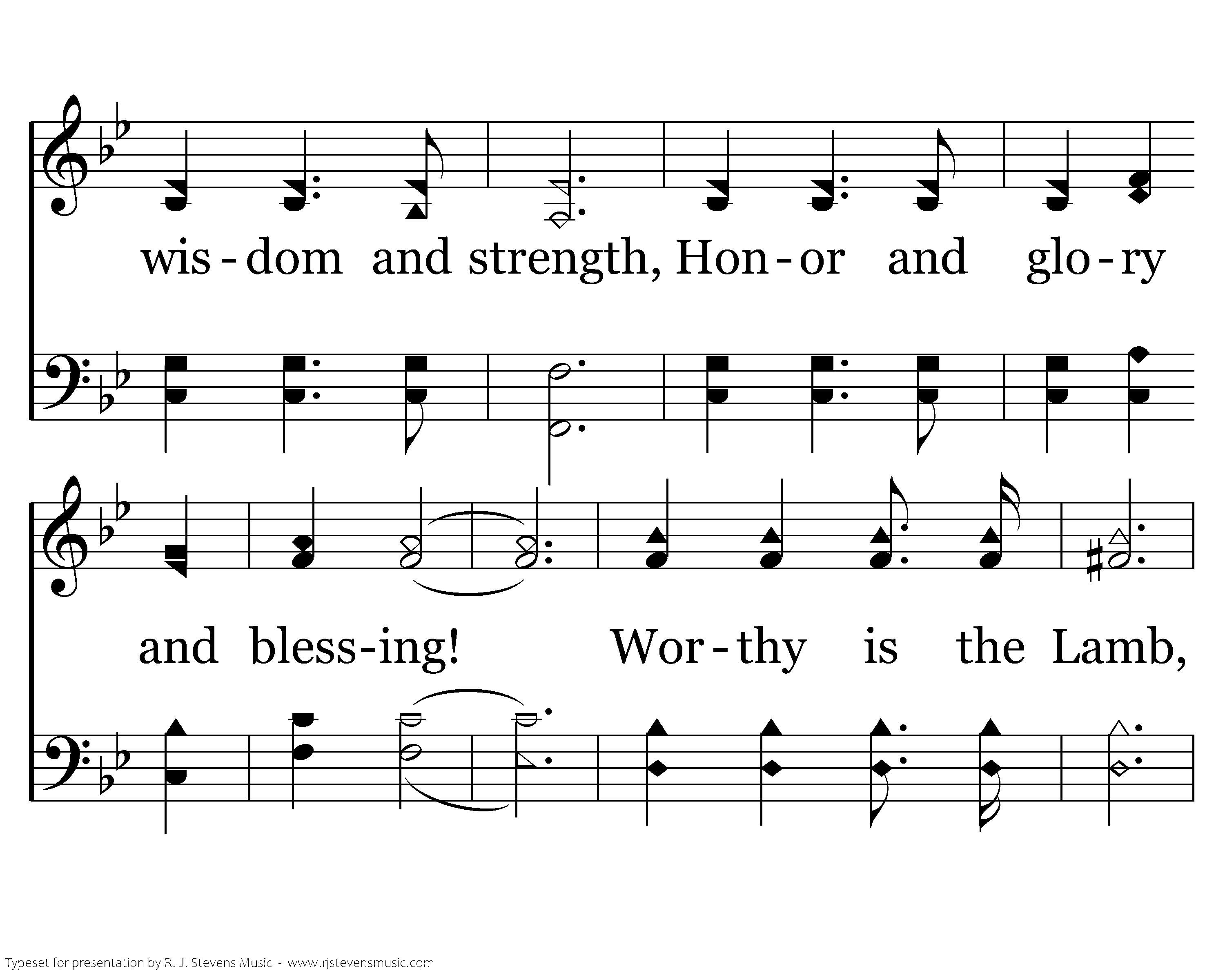 Worthy is the Lamb that was slain, Worthy is the Lamb that was slain, Worthy is the Lamb that was slain, to receive: Power and riches and wisdom and strength, Honor and glory and blessing! Worthy is the Lamb, Worthy is the Lamb, Worthy is the Lamb that was slain, to receive: Worthy is the Lamb that was slain, Worthy is the Lamb!