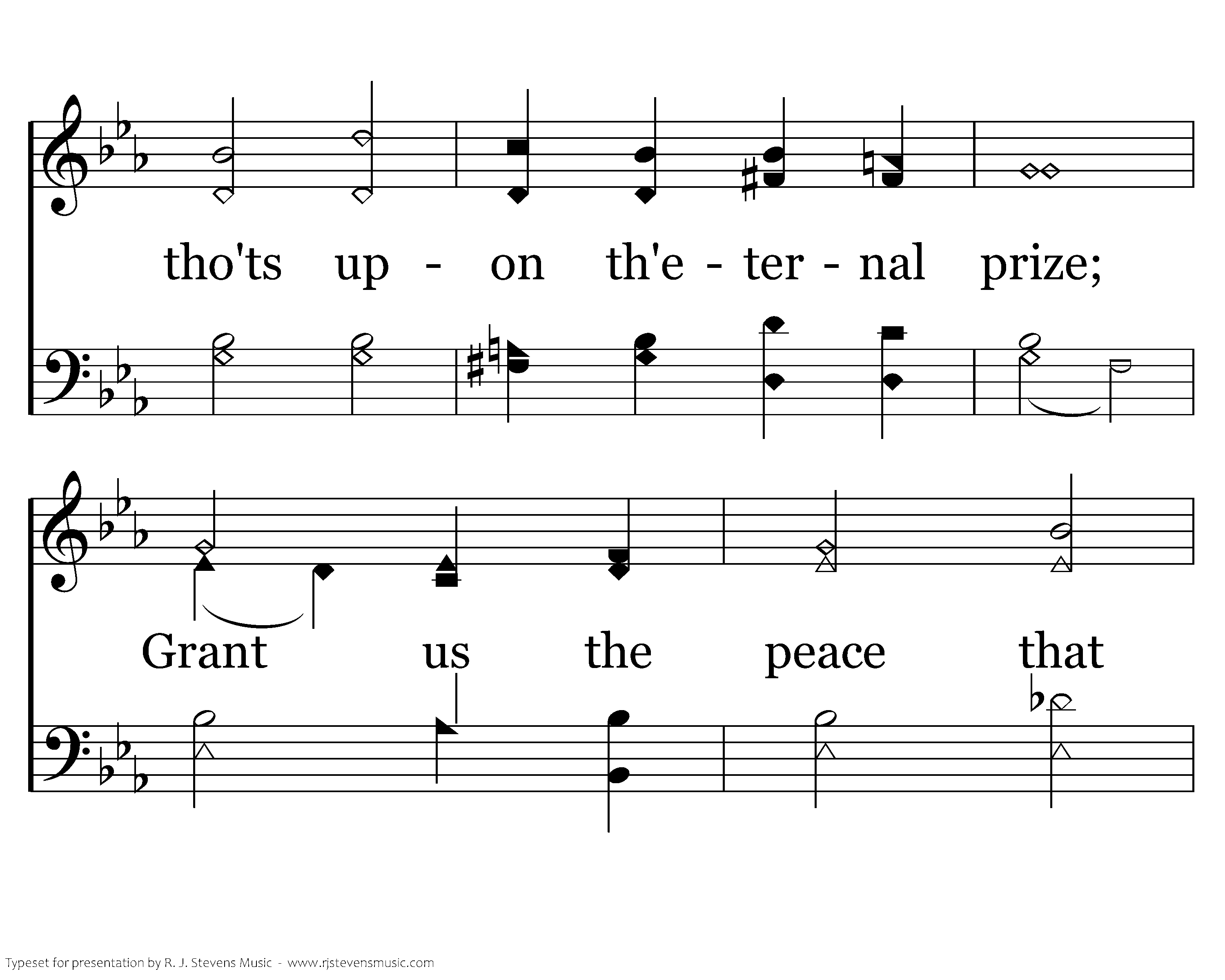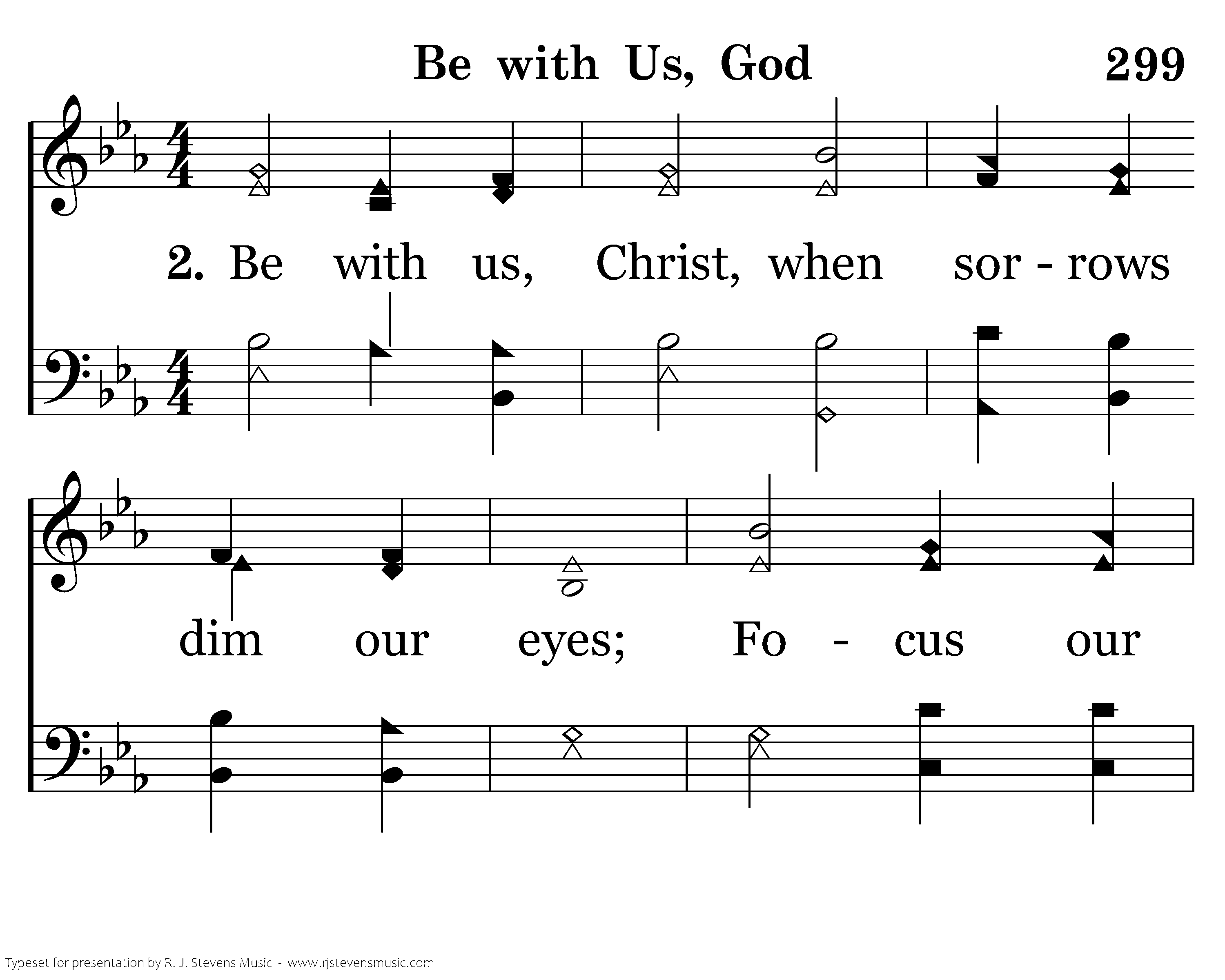 Be with us, Christ, when sorrows dim our eyes; Focus our tho'ts upon th'eternal prize; Grant us the peace that Thou alone canst give; And in Thy presence may we ever live.