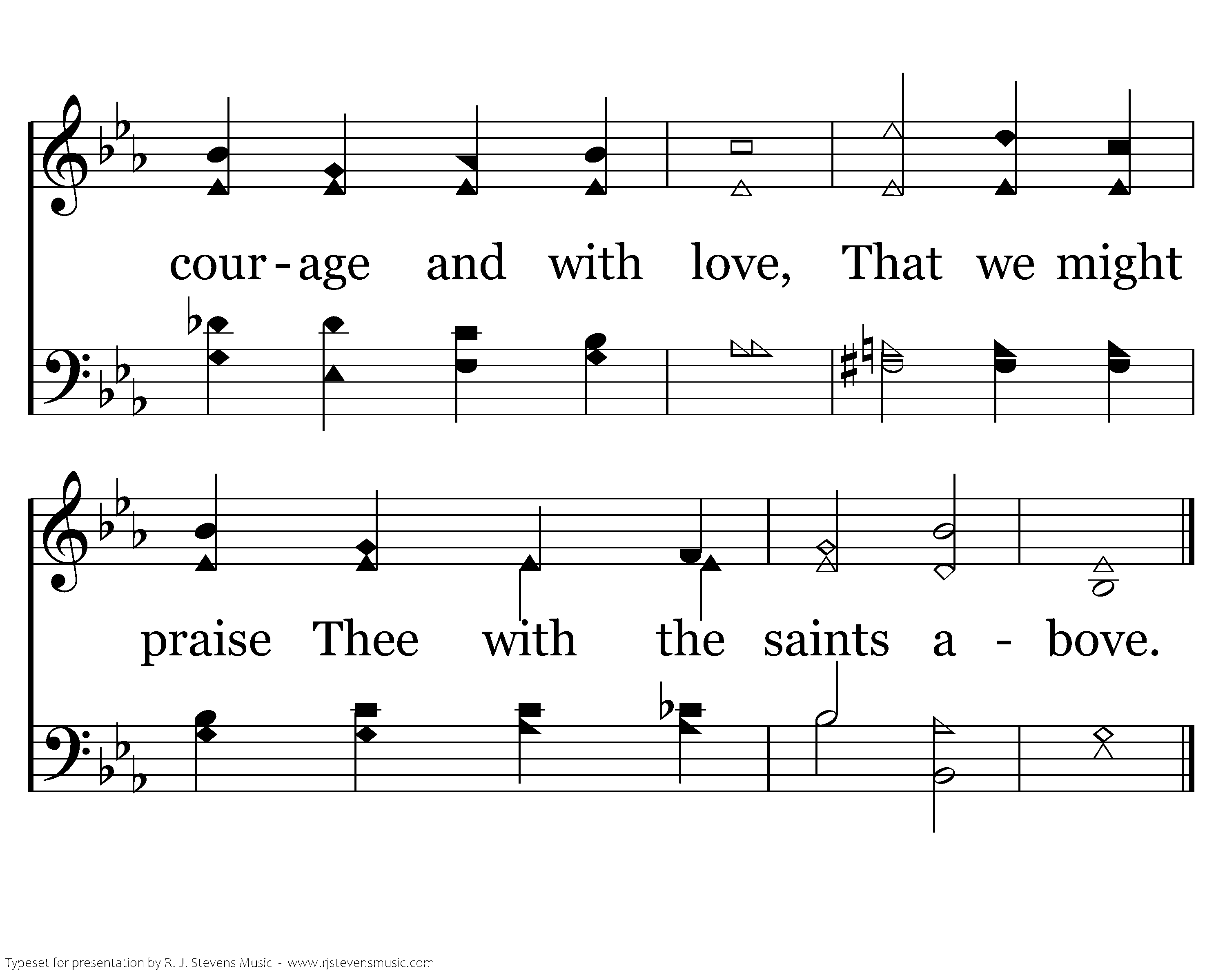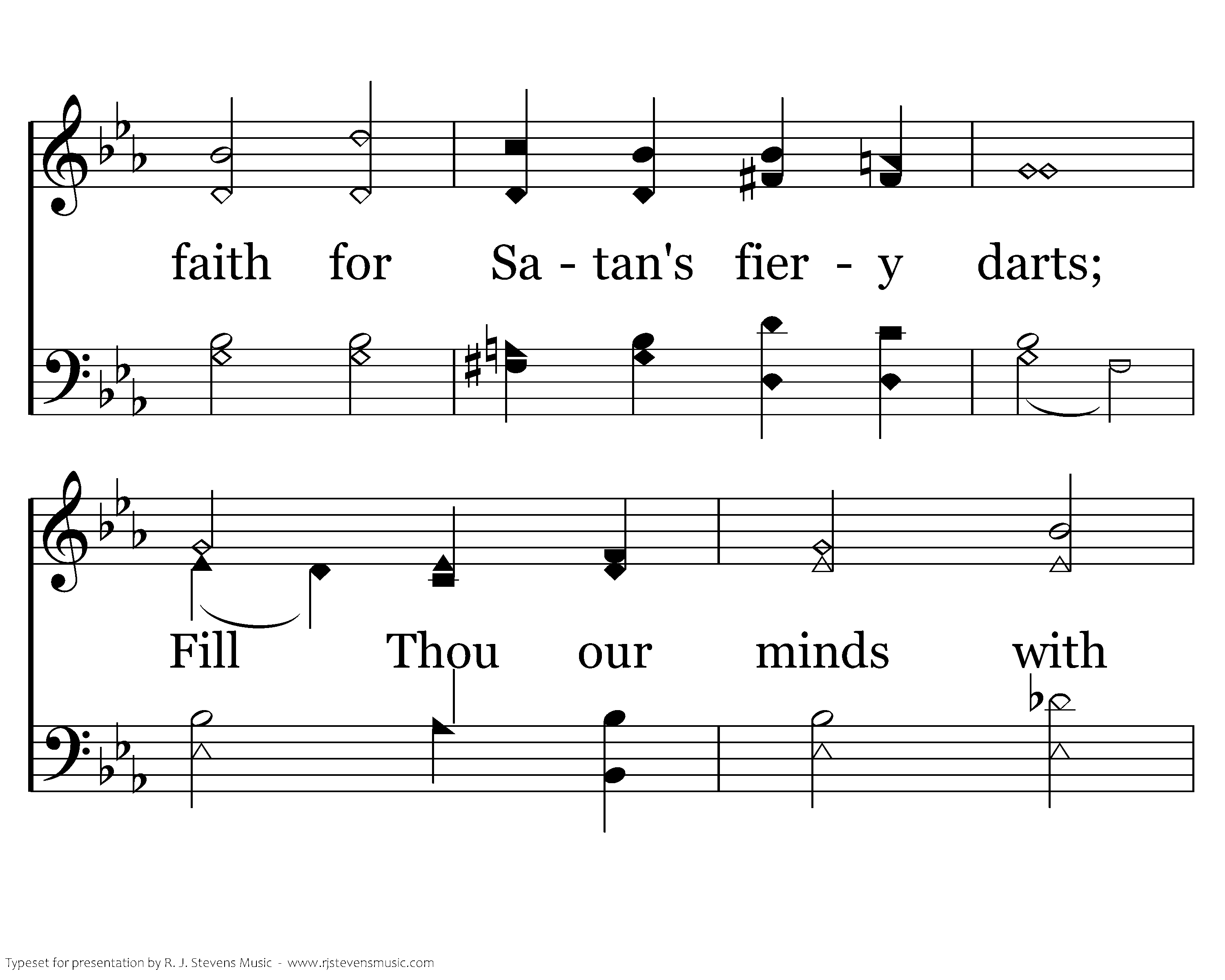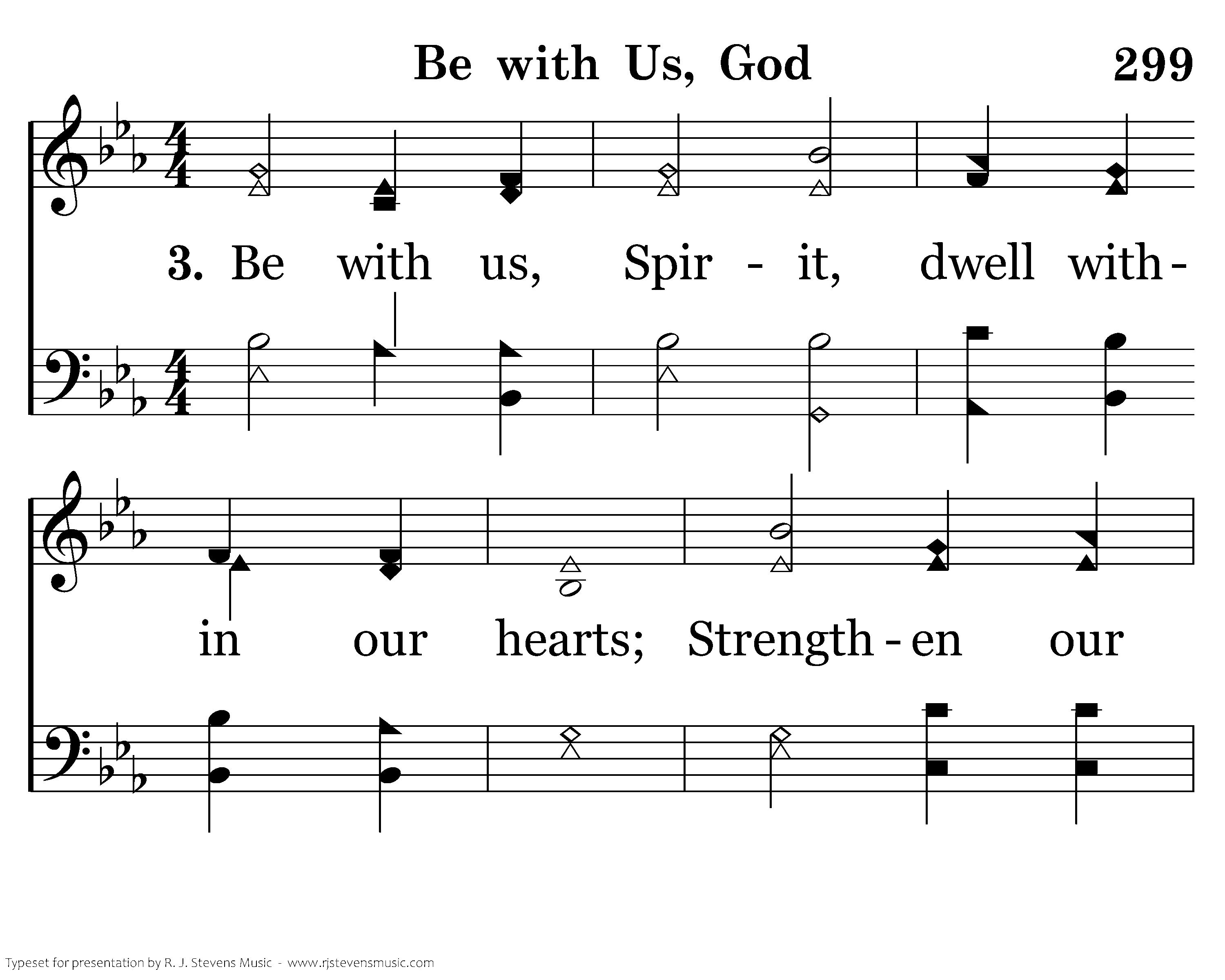 Be with us, Spirit, dwell within our hearts; Strengthen our faith for Satan's fiery darts; Fill Thou our minds with courage and with love, That we might praise Thee with the saints above.