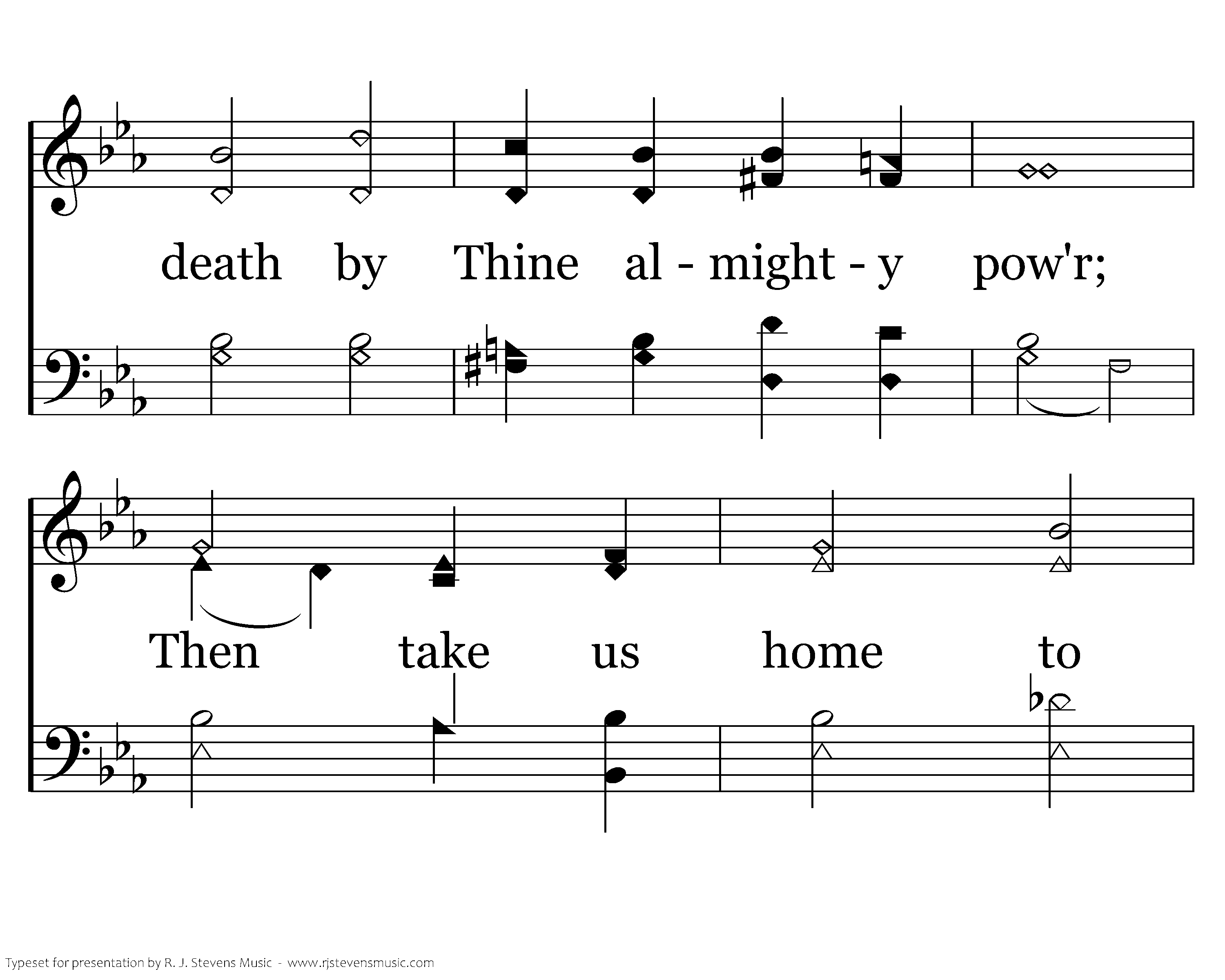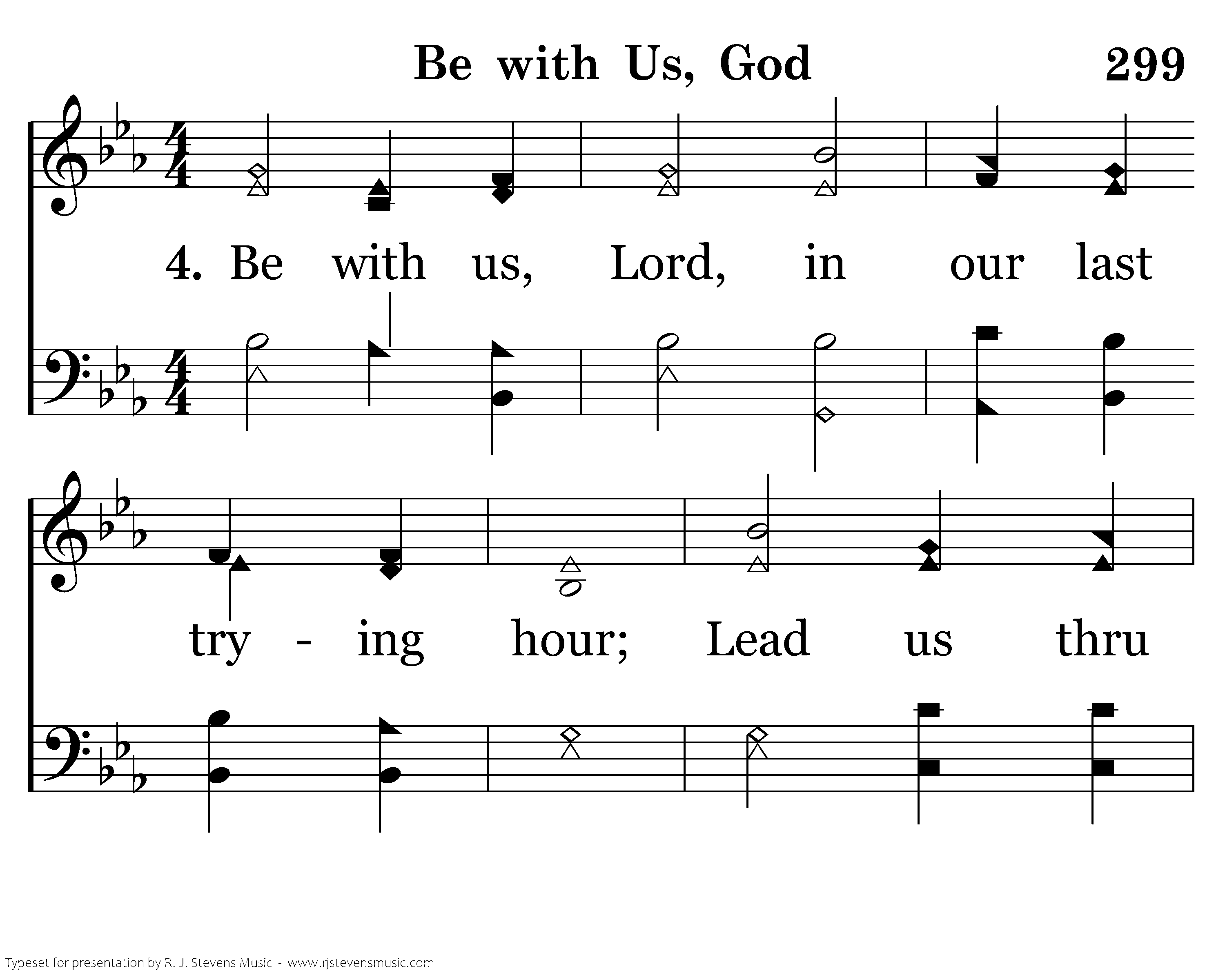 Be with us, Lord, in our last trying hour; Lead us thru death by Thine almight-y pow'r; Then take us home to Heaven's shining coast; Be with us, Father, Son, and Holy Ghost.