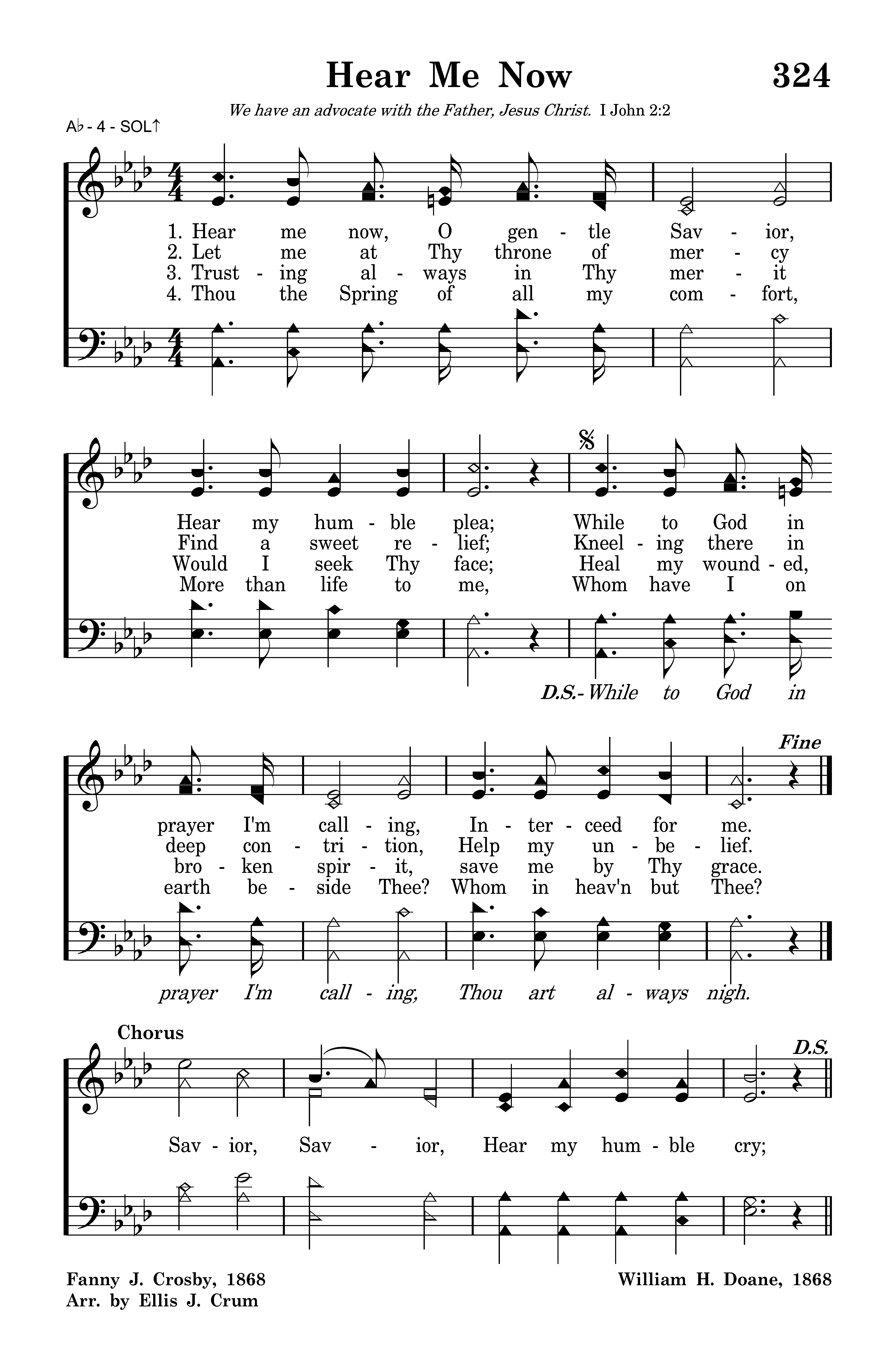 Savior, Savior, Hear my humble cry; While to God in pray'r I'm call-ing, Thou art always nigh.