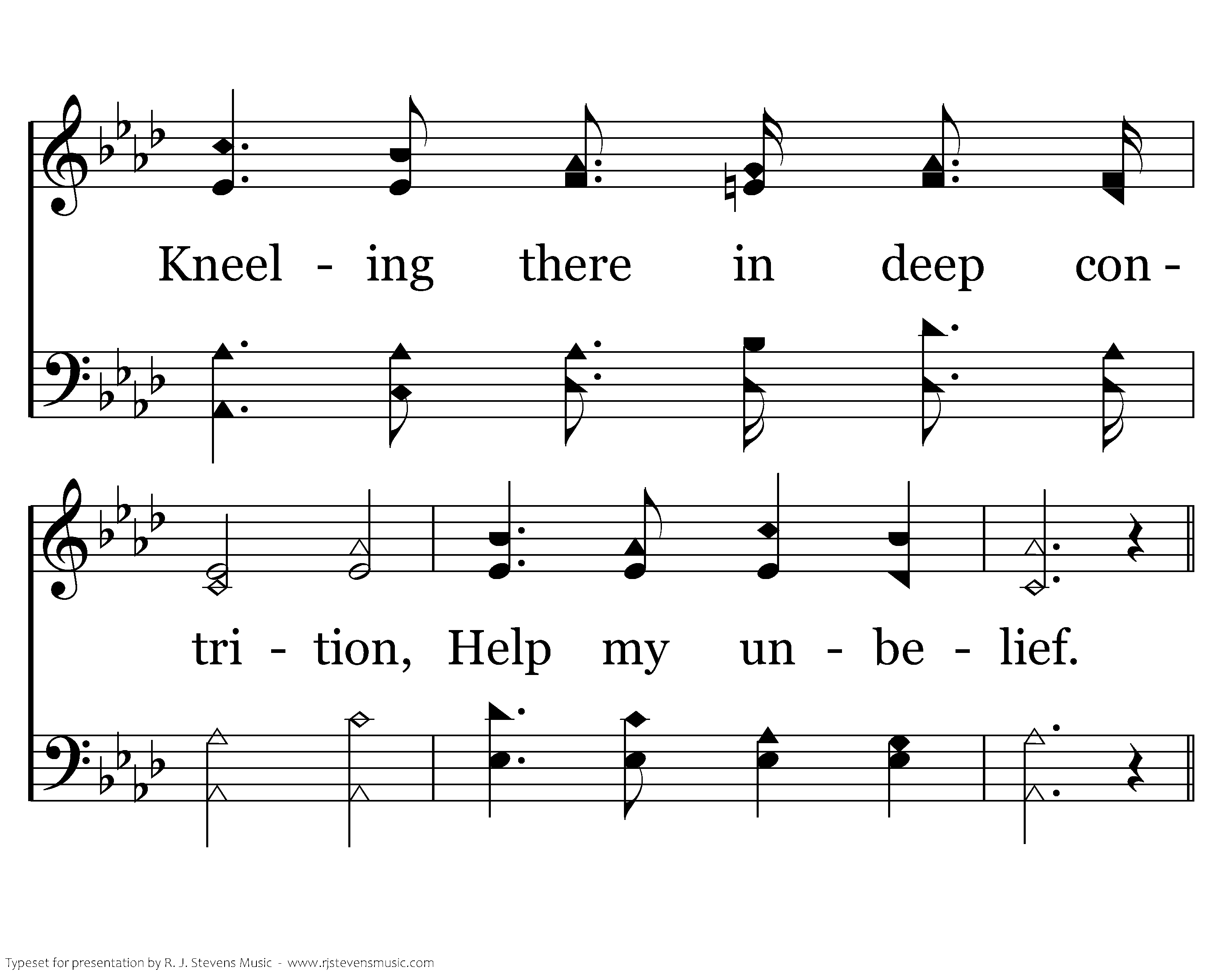 Let me at Thy throne of mercy Find a sweet relief; Kneeling there in deep contrition, Help my unbelief.