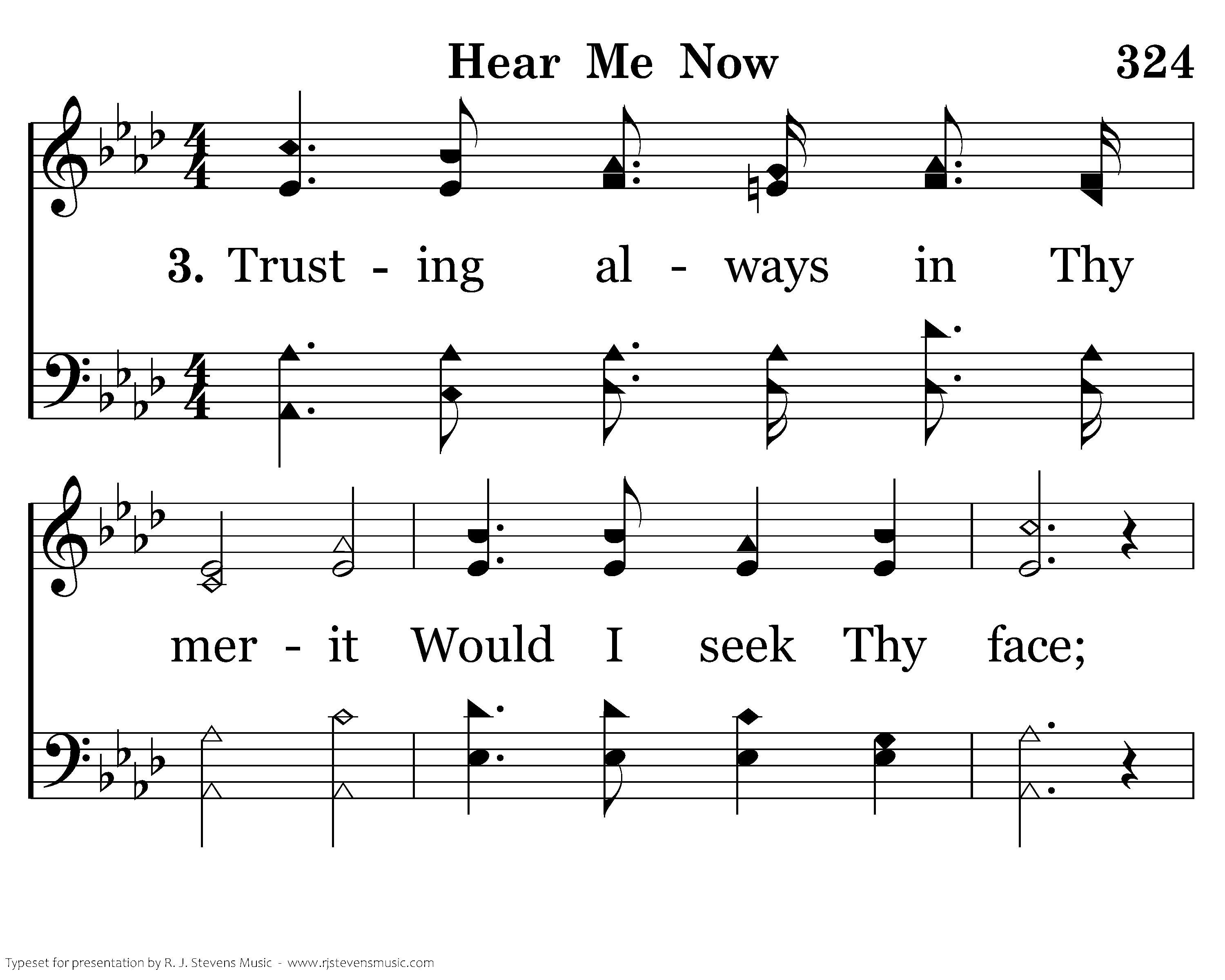 Trusting always in Thy merit Would I seek Thy face; Heal my wounded, broken spirit, save me by Thy grace.