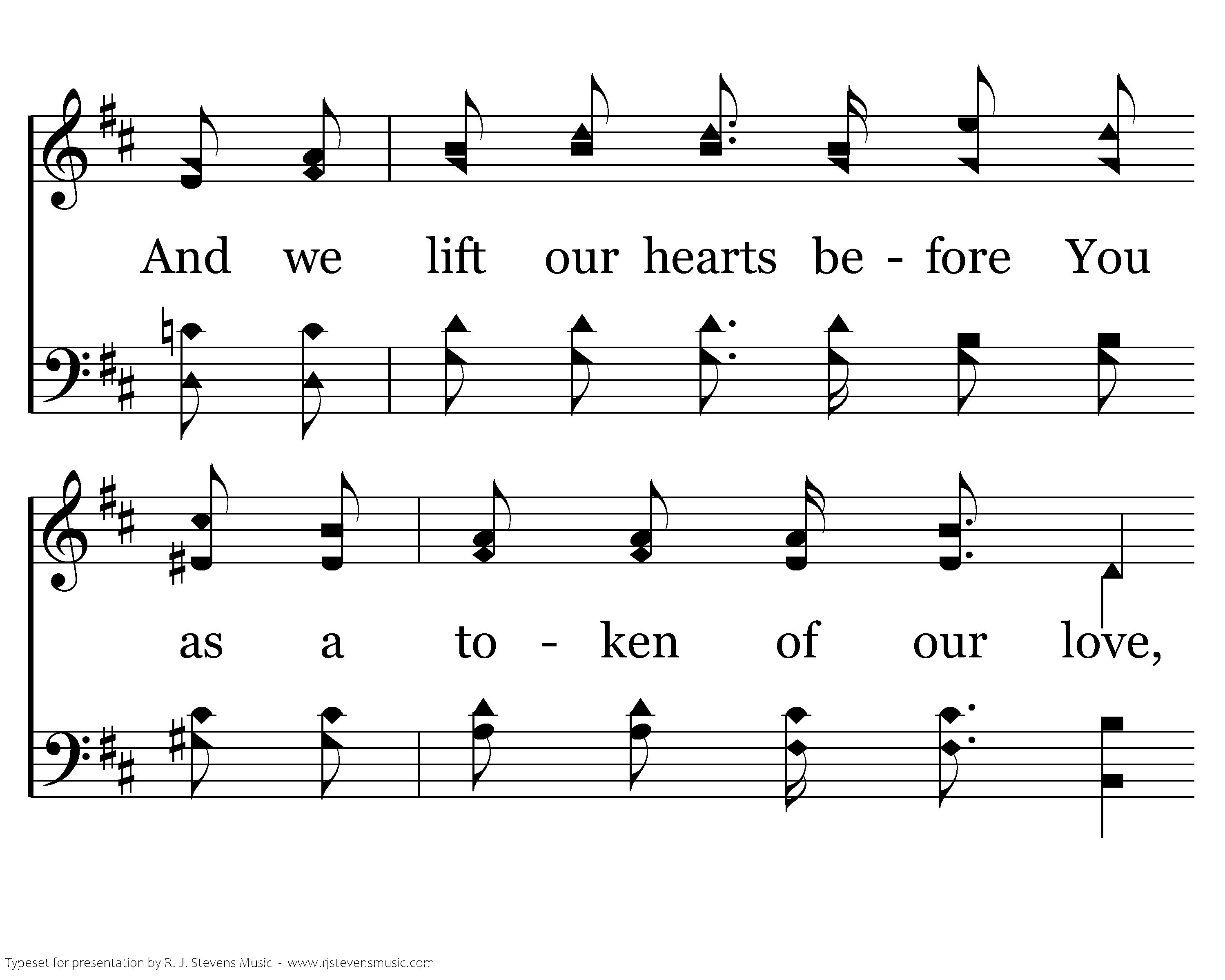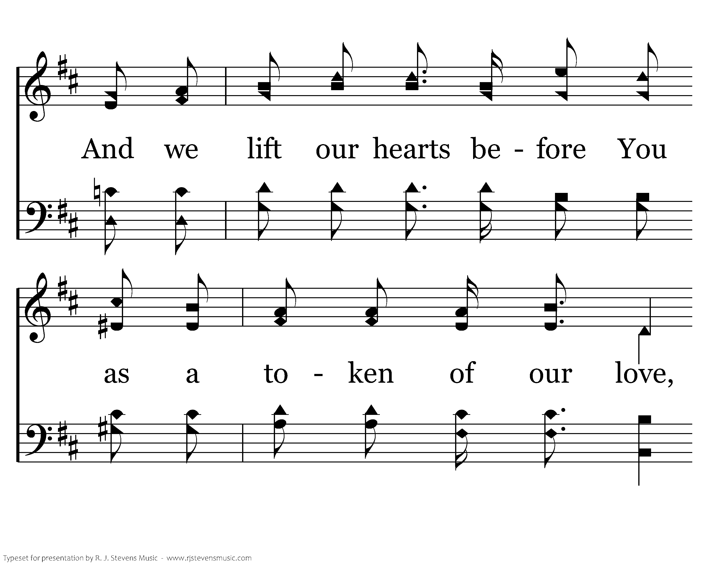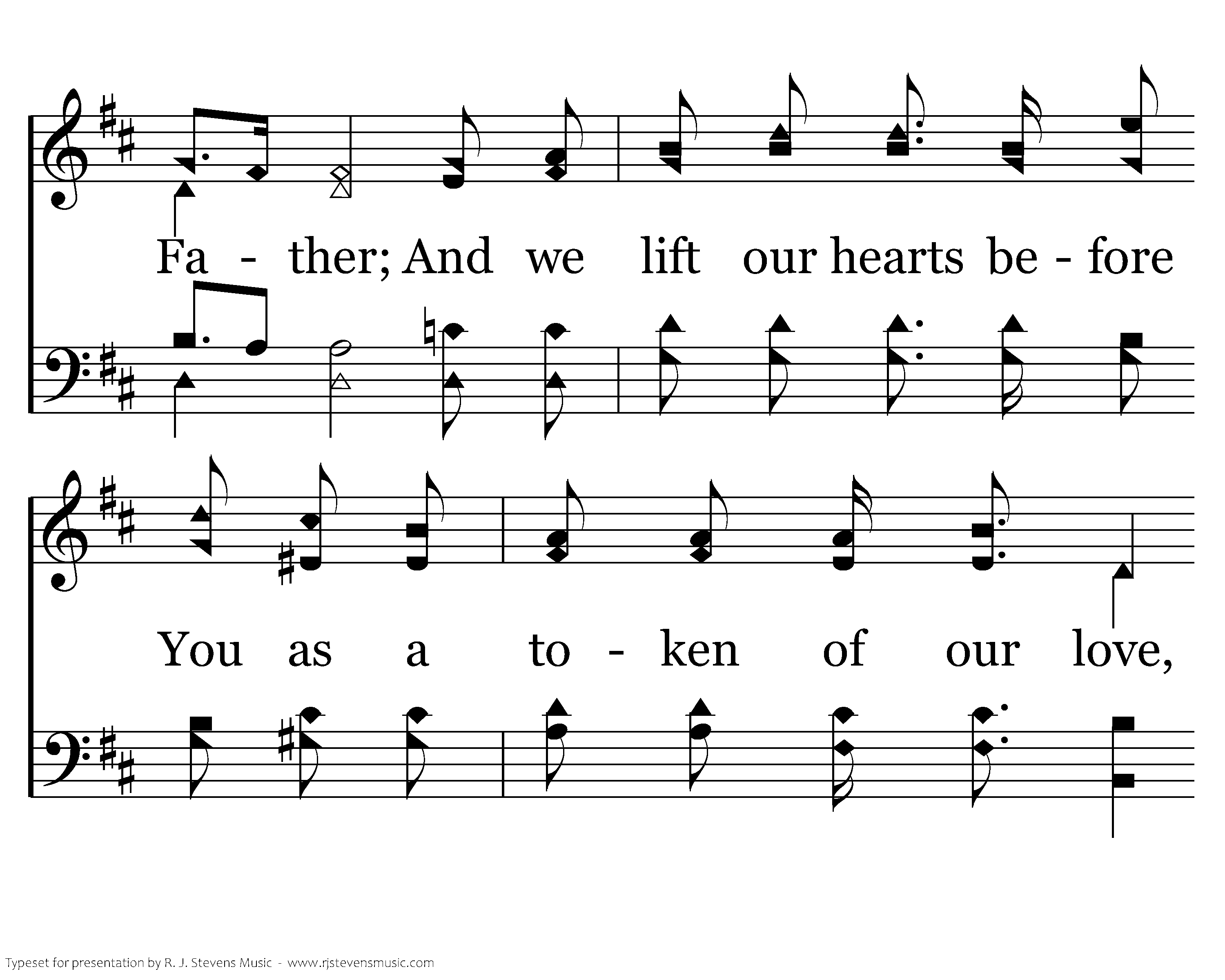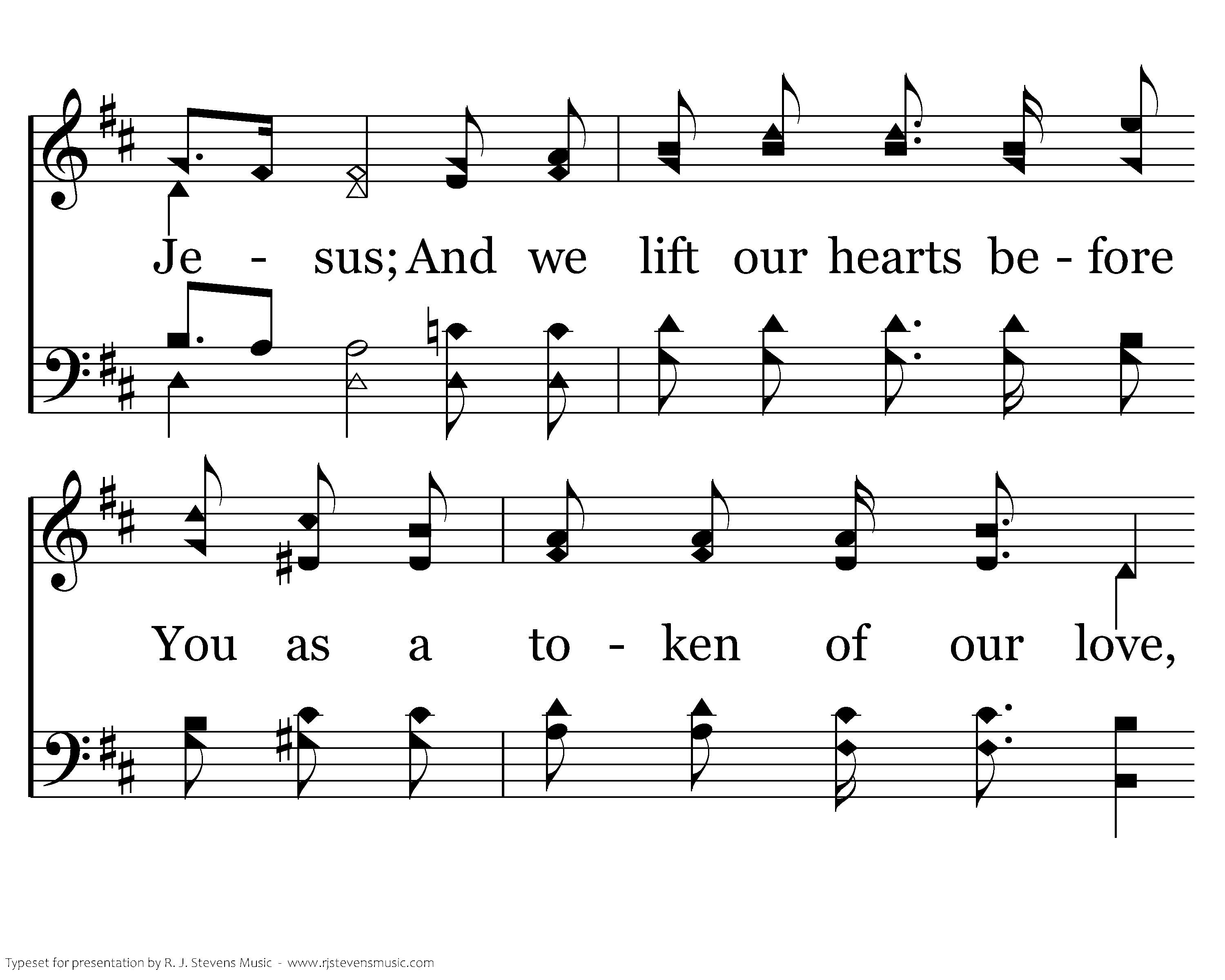 Hallelujah, Hallelujah, Hallelujah, Hallelujah; And we lift our hearts before You as a token of our love, Hallelujah, Hallelujah.