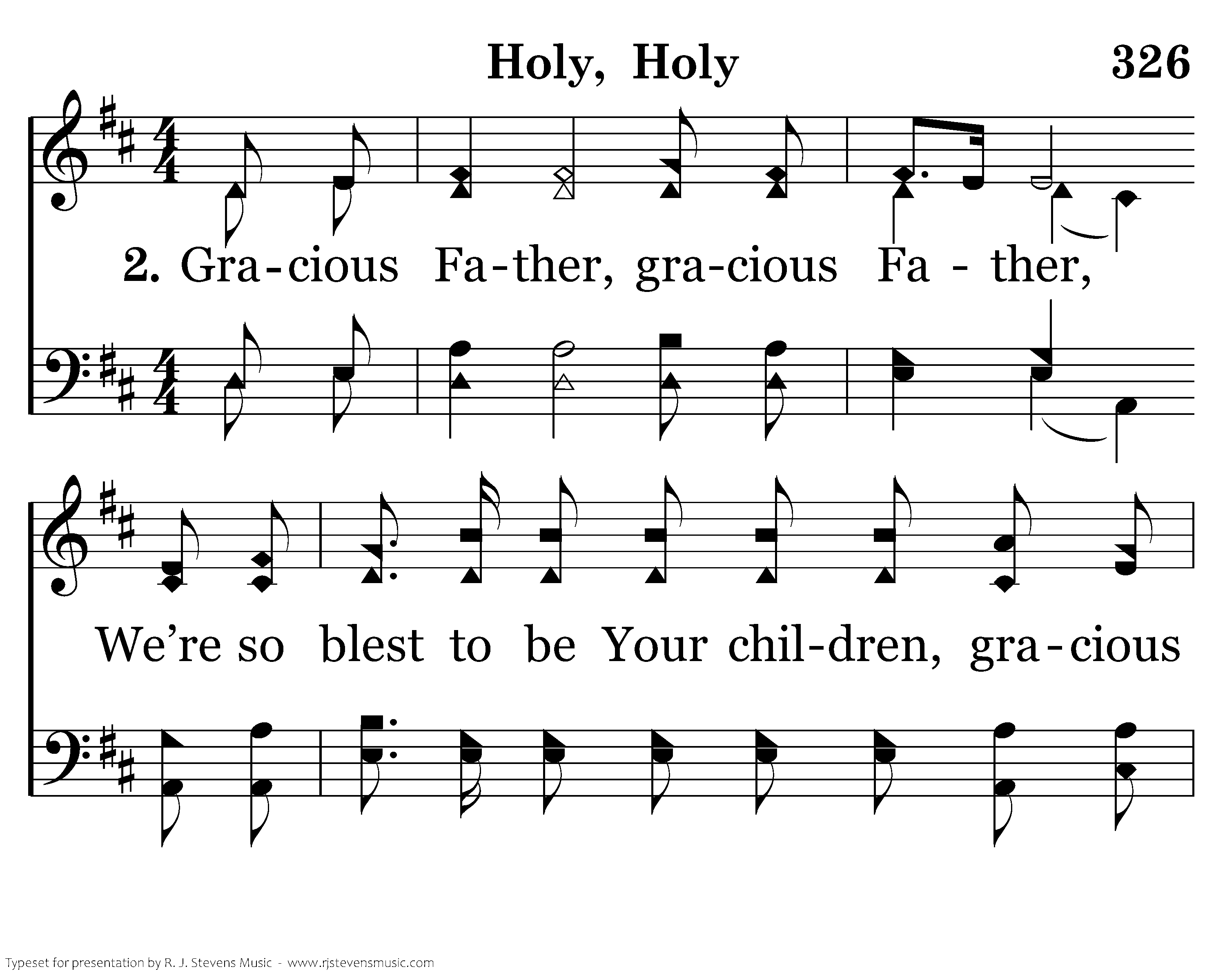 Gracious Father, gracious Father, We’re so blest to be Your children, gracious Father; And we lift our hearts before You as a token of our love, Gracious Father, gracious Father.