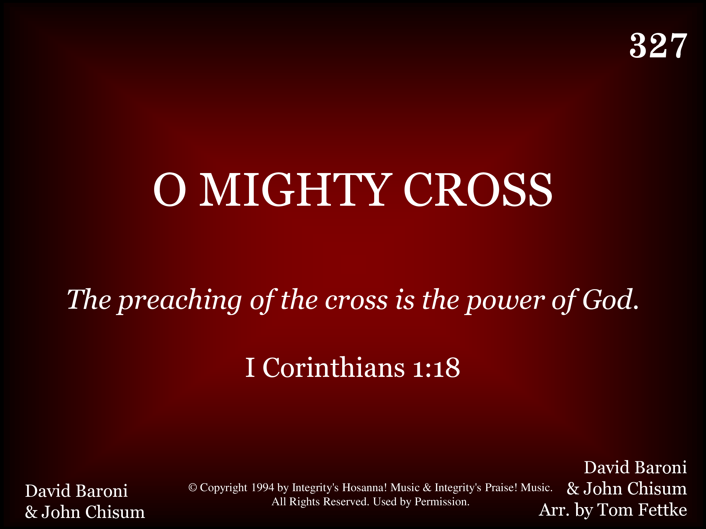 O mighty cross, Love lifted high, The Lord of life raised there to die;