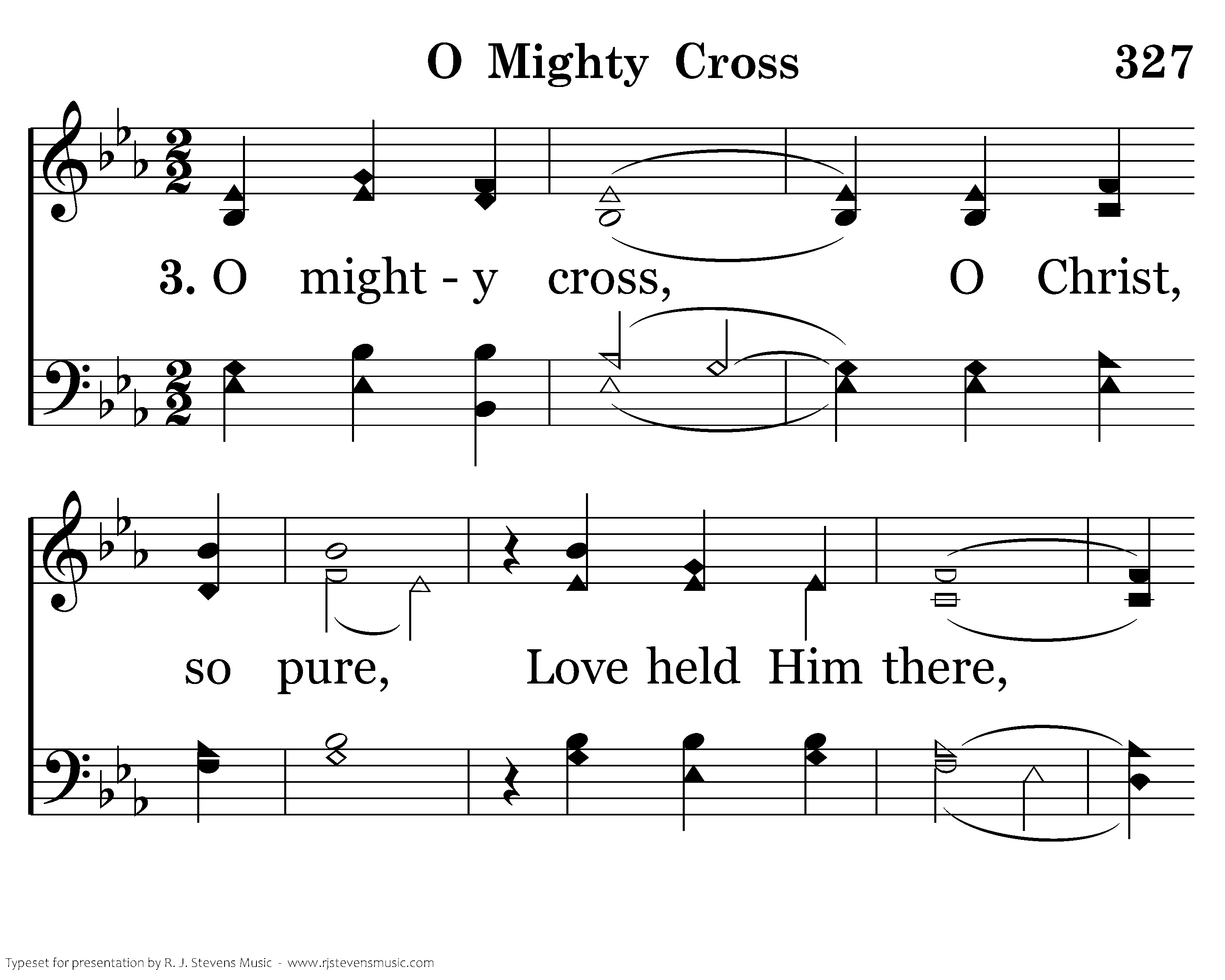 O mighty cross, O Christ, so pure, Love held Him there, such shame endured;