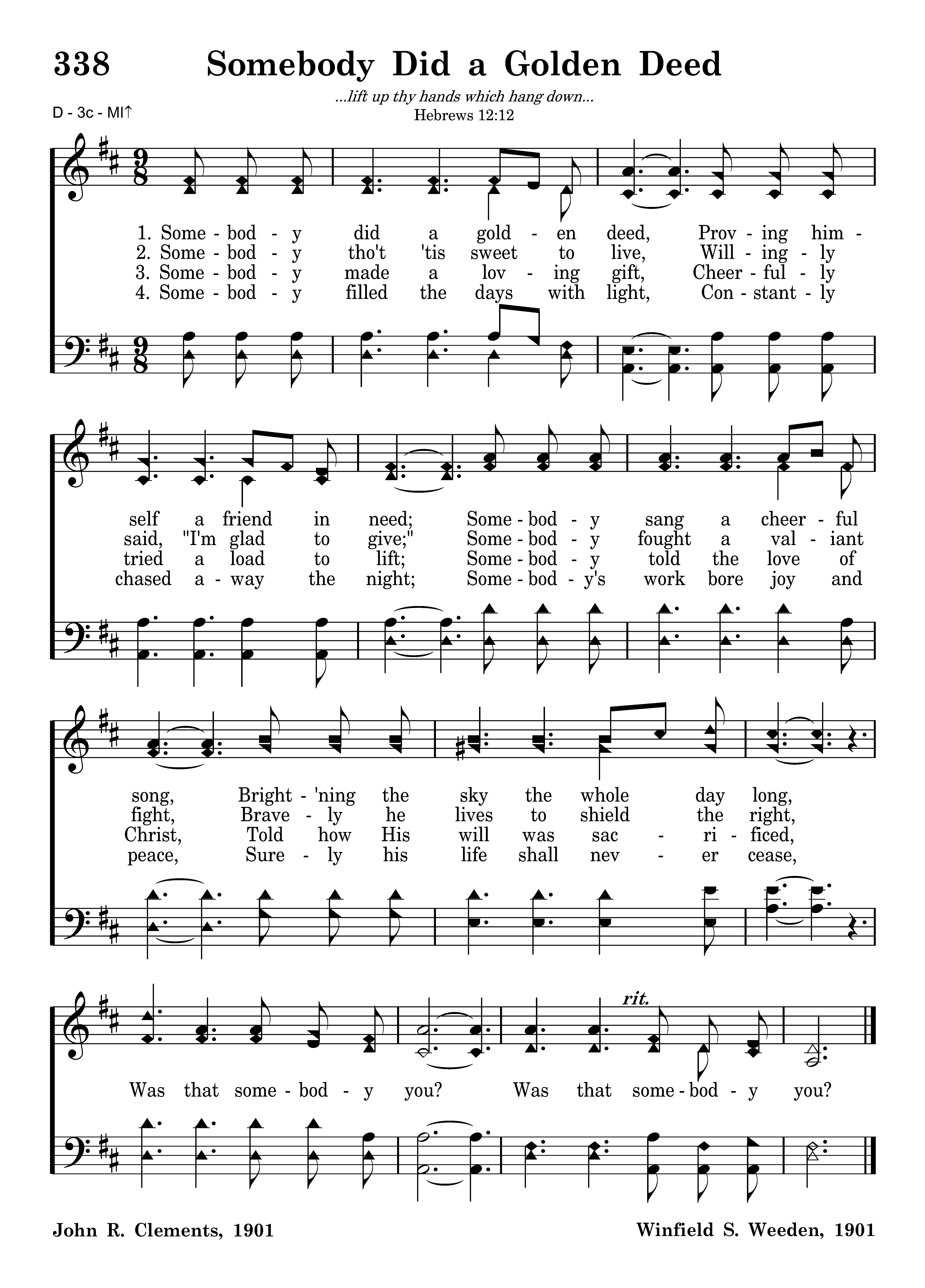 | Title | SOMEBODY DID A GOLDEN DEED |
